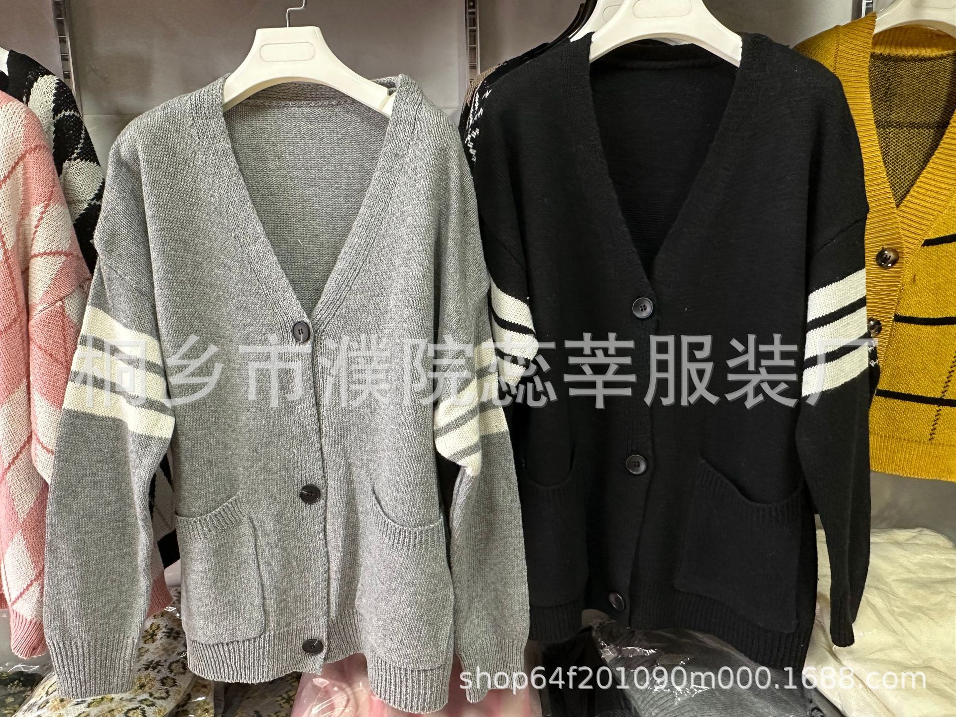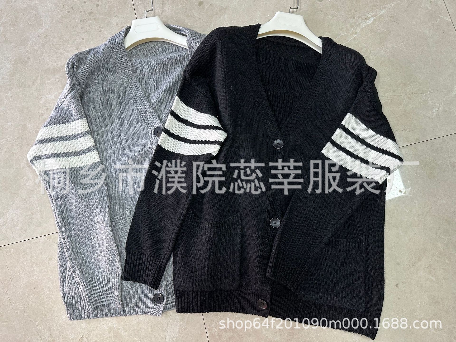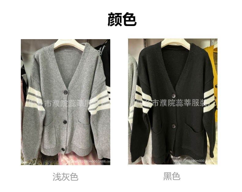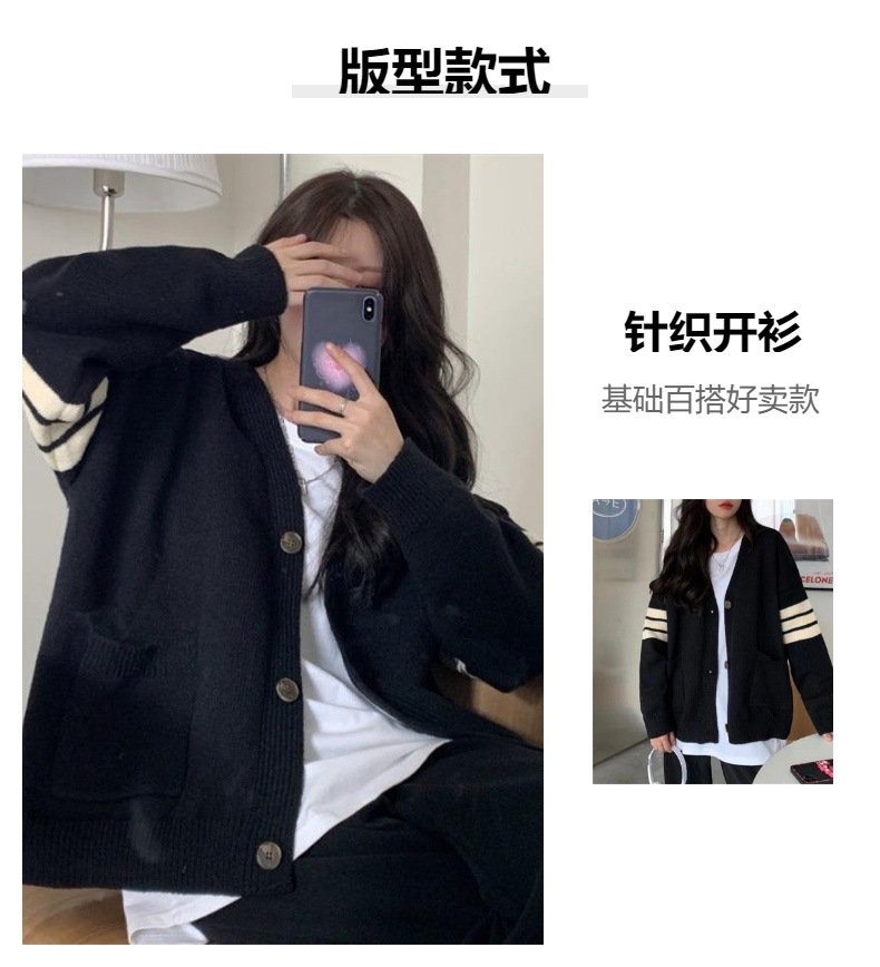 2023秋冬新款条纹开衫毛衣女外套韩版宽松学院风长袖针织衫上衣潮