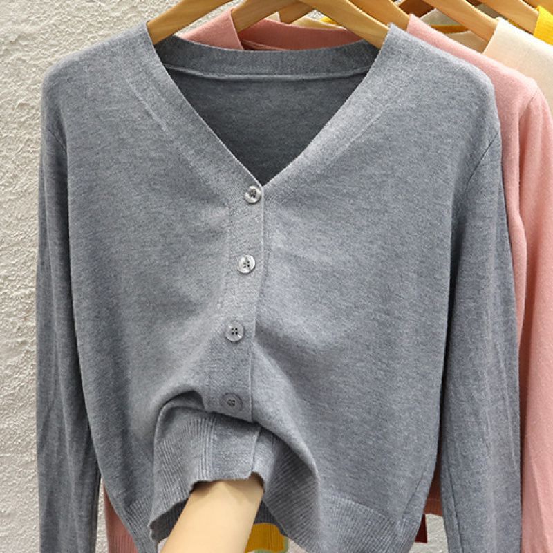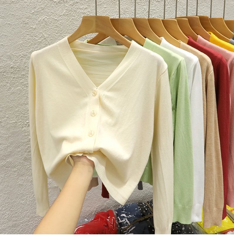 短款针织开衫外套女2024春秋新款外搭开衫毛衣长袖薄款打底衫上衣