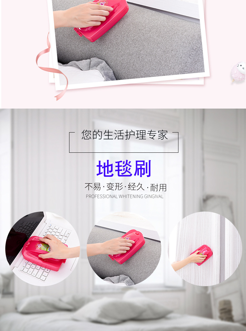 三排无柄糖果色家用清洁床刷 除尘刷地毯刷 家用扫床刷桌面粘毛滚