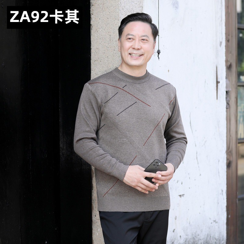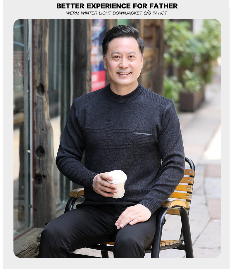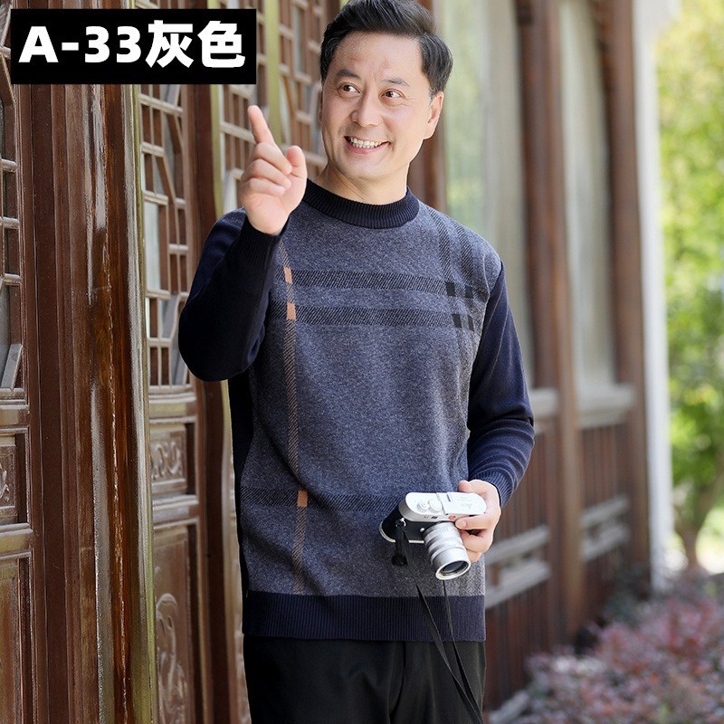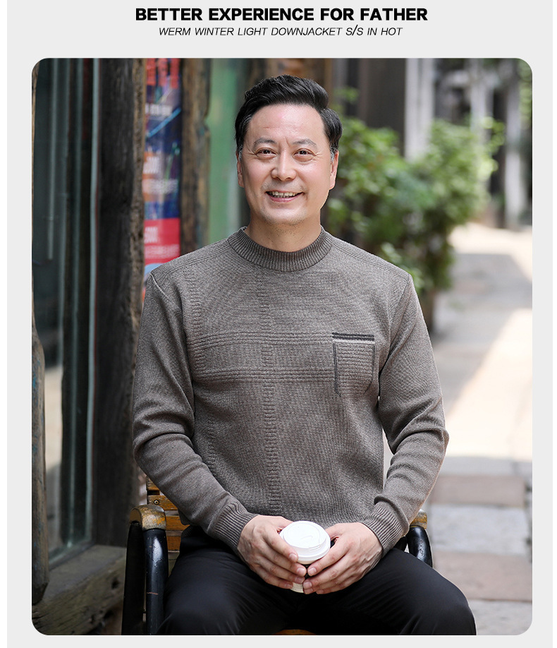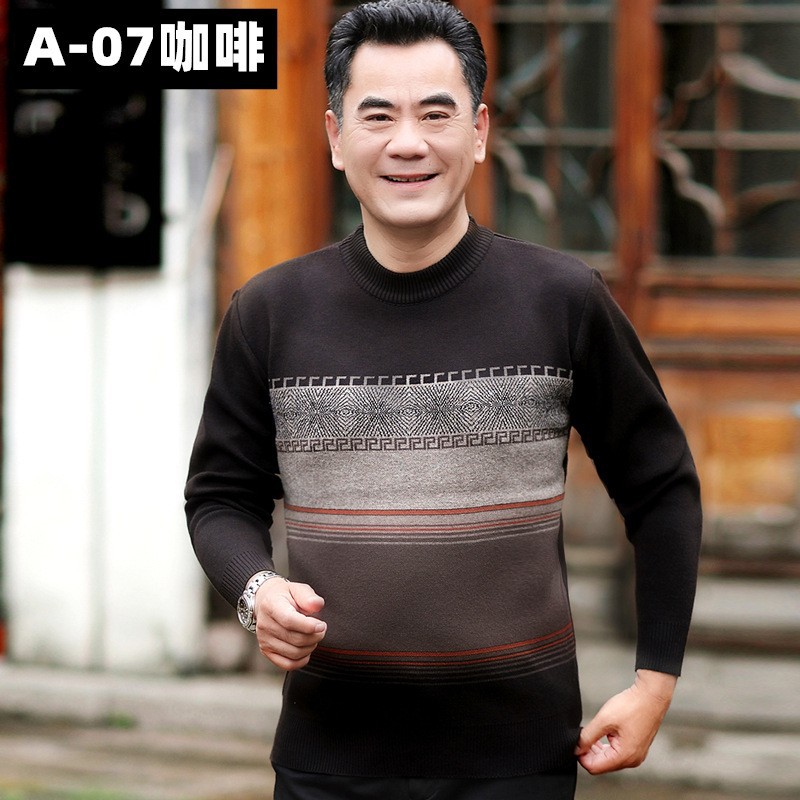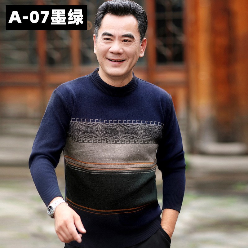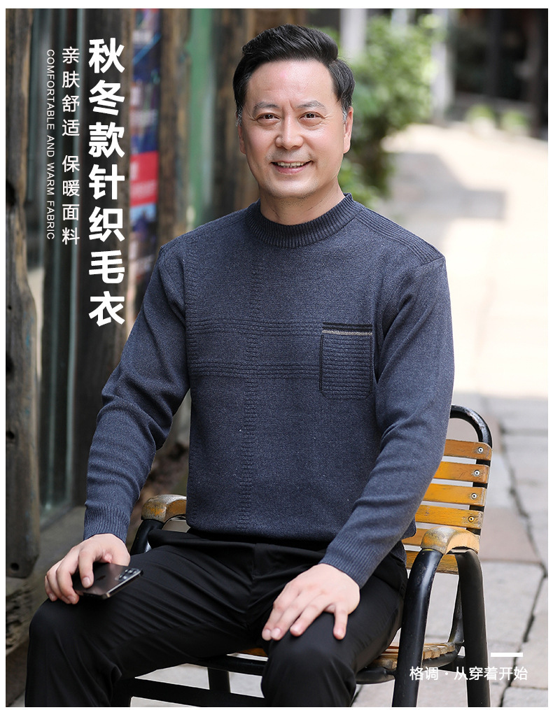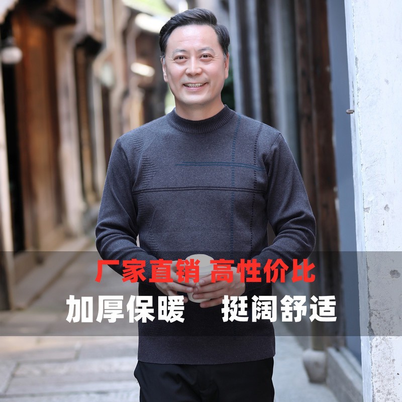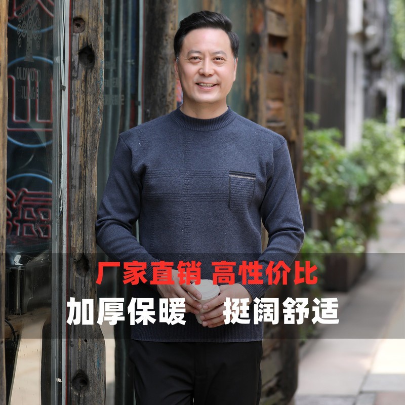 秋冬新款加厚中老年男式毛衣商务圆领百搭羊毛针织衫外贸地摊批发