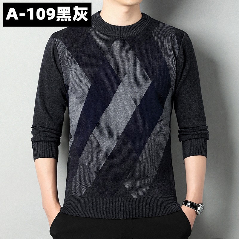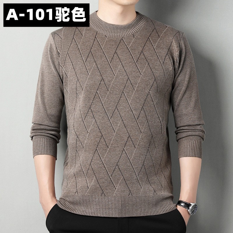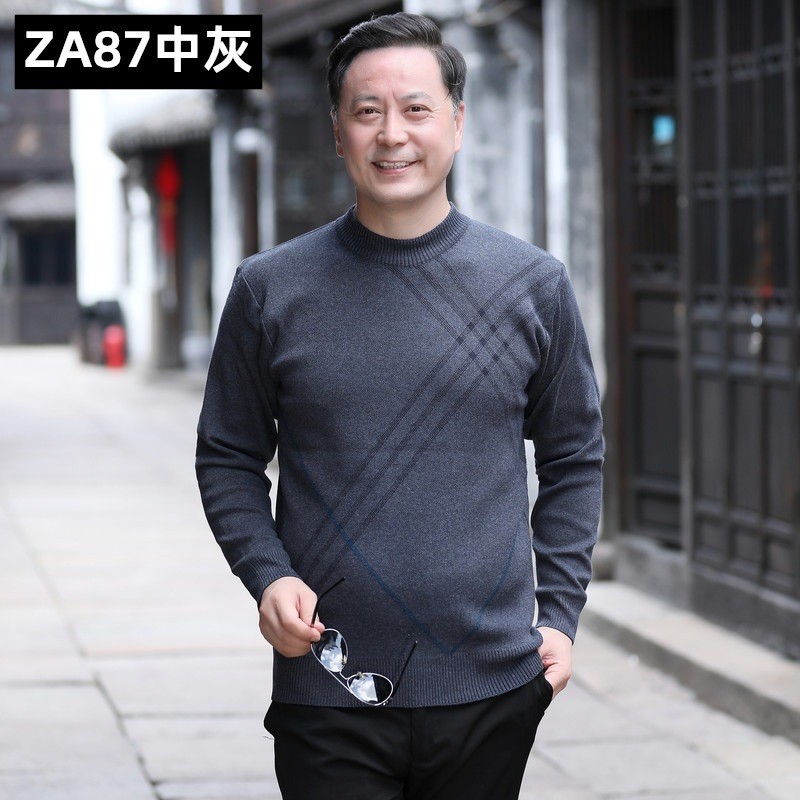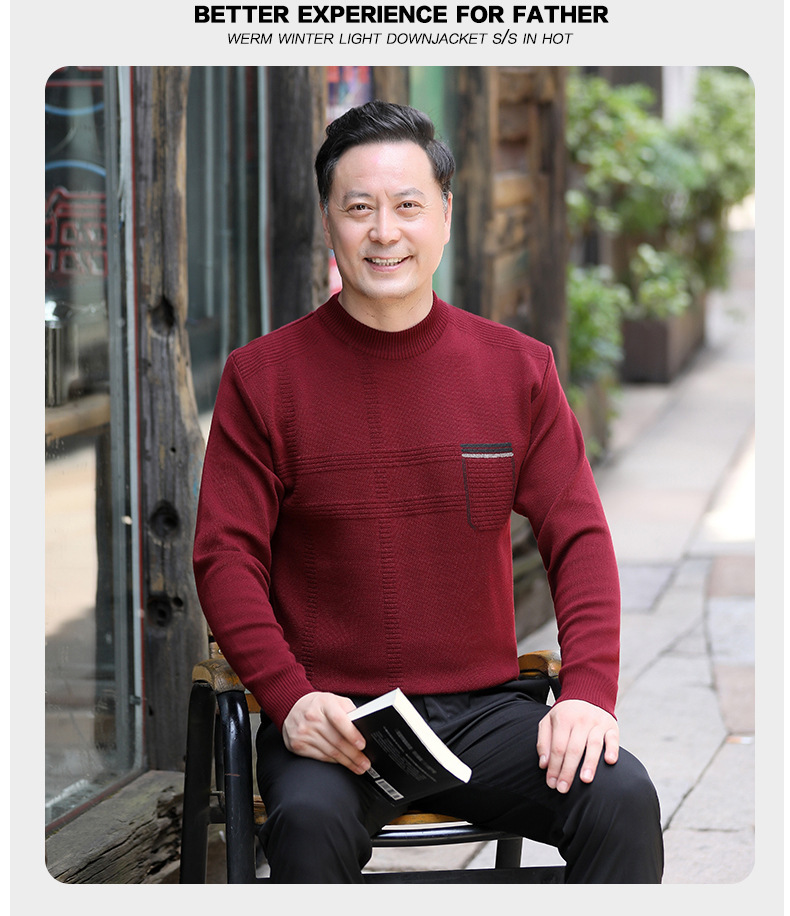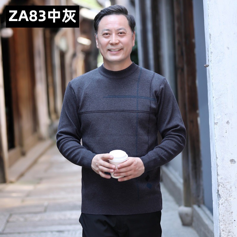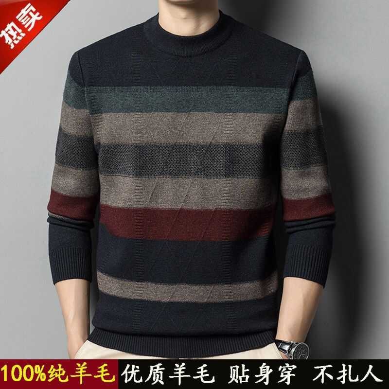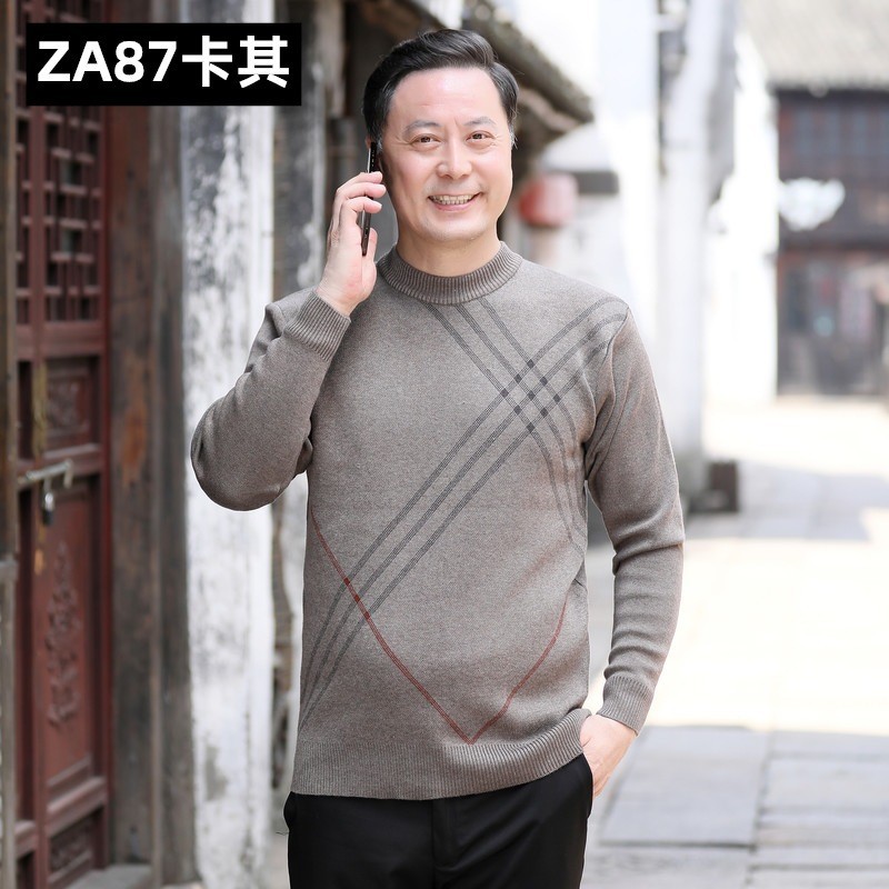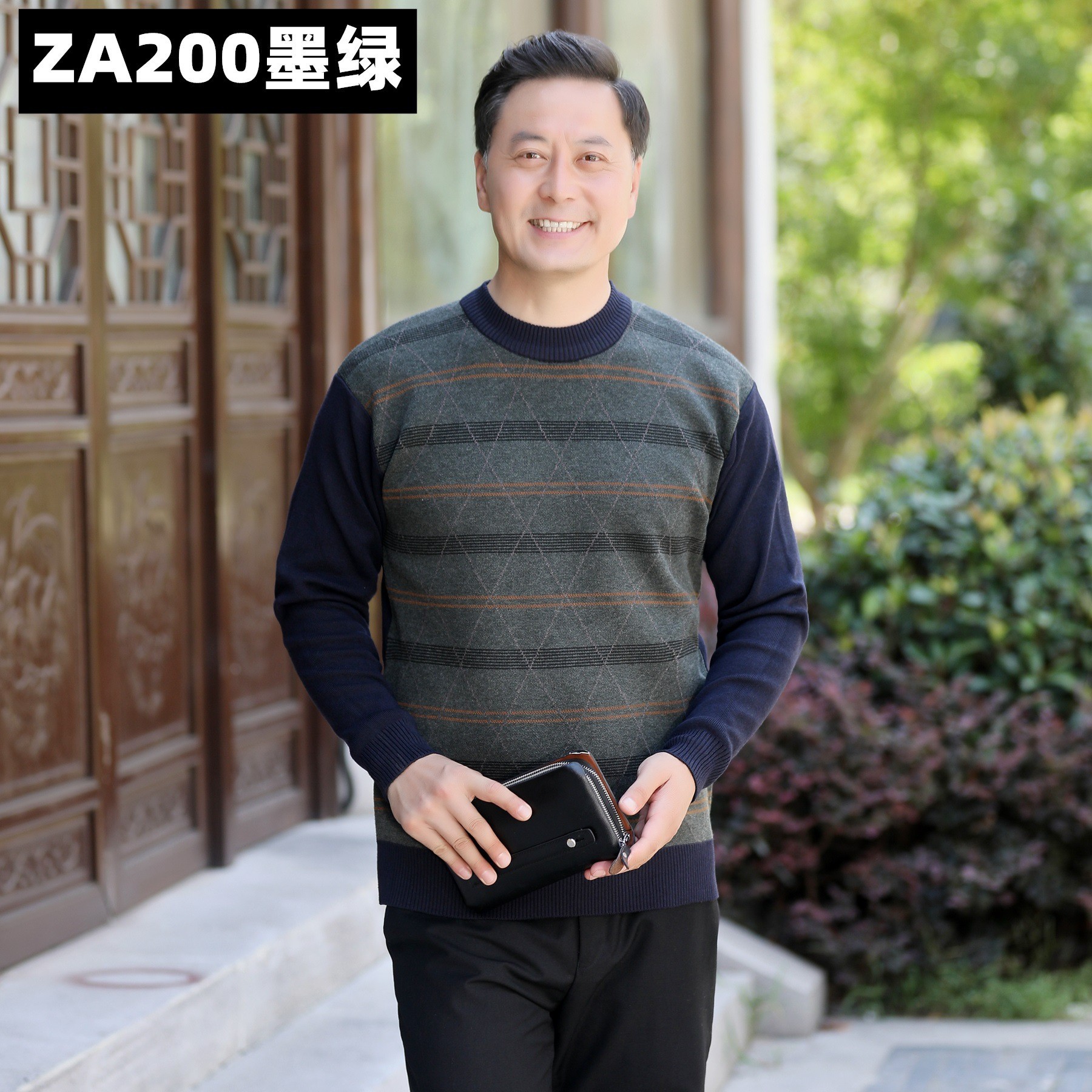 秋冬新款加厚中老年男式毛衣商务圆领百搭羊毛针织衫外贸地摊批发