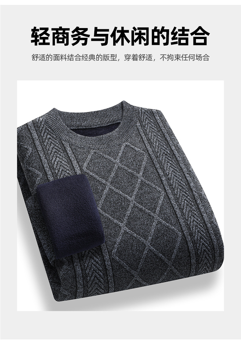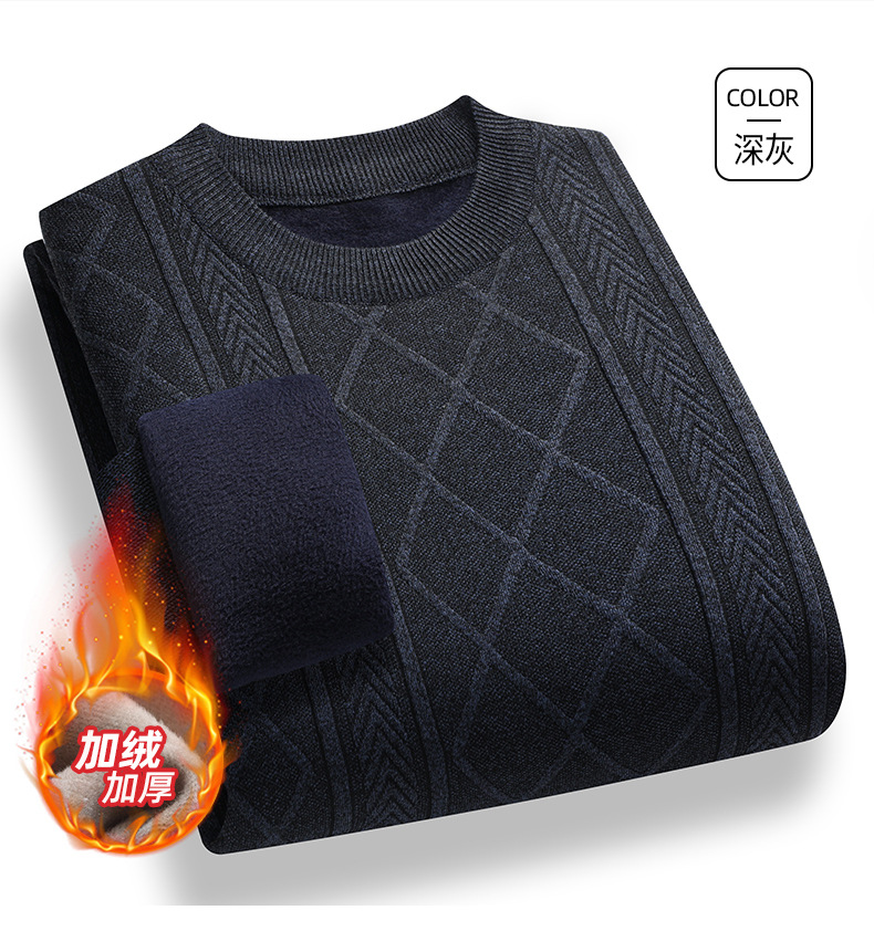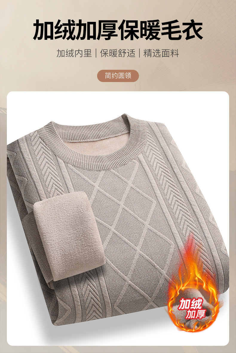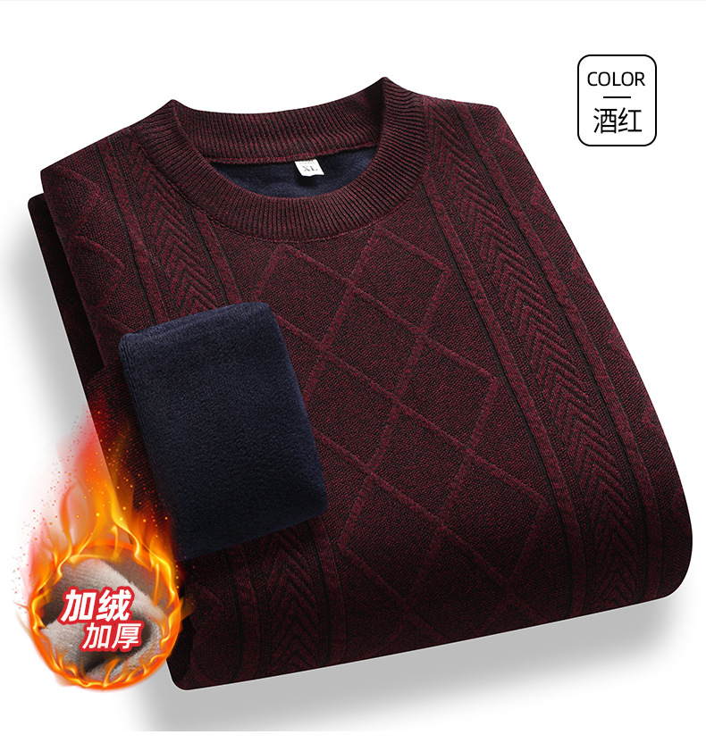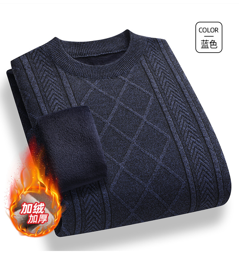 秋冬季中老年毛衣男士爸爸装加绒加厚圆领套头保暖上衣打底针织衫
