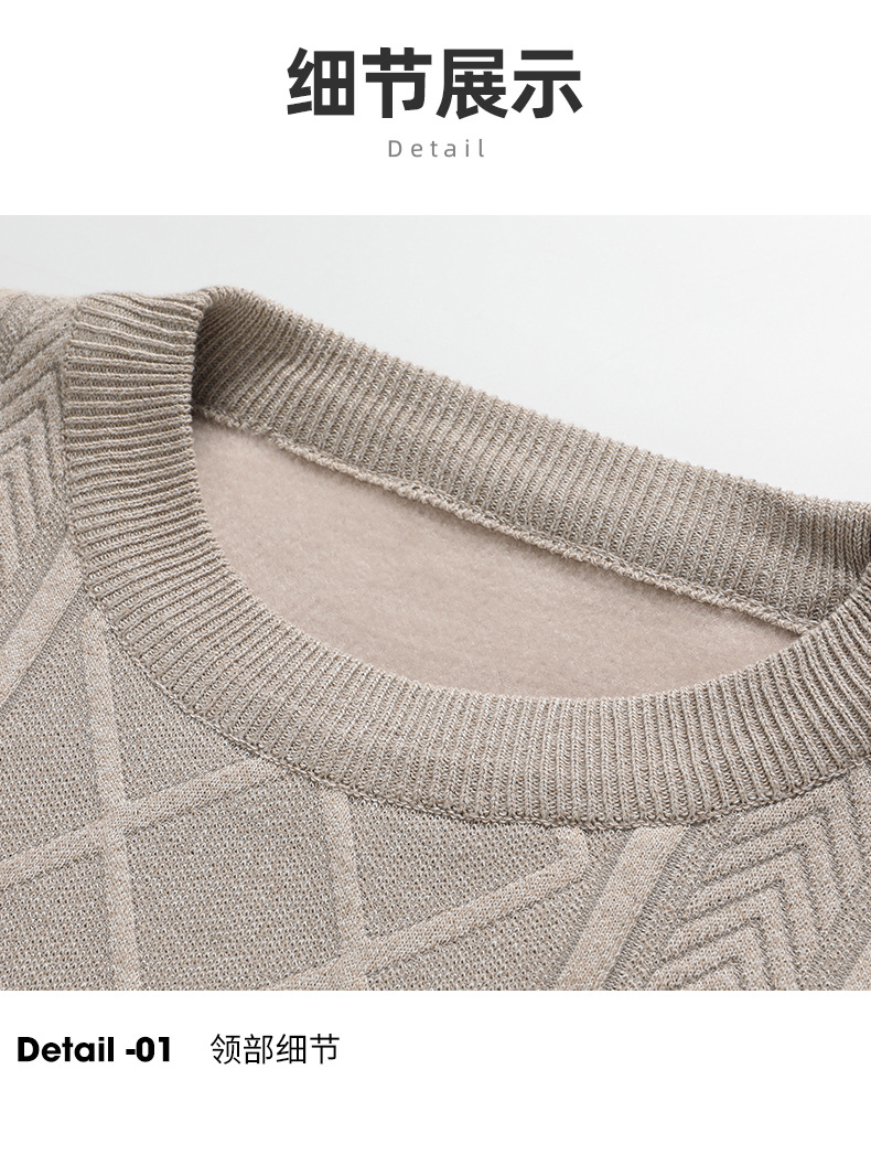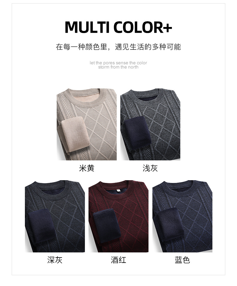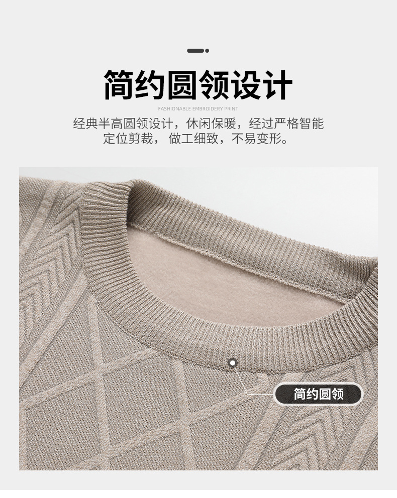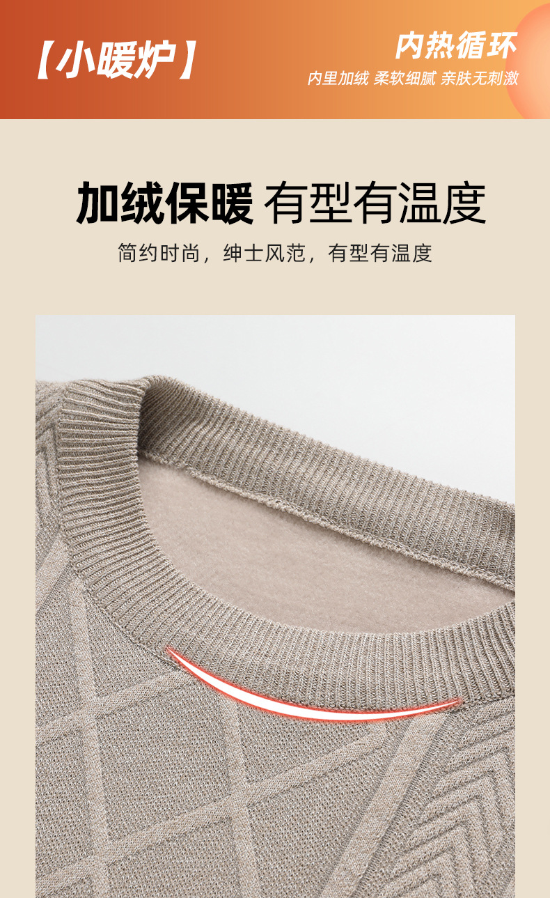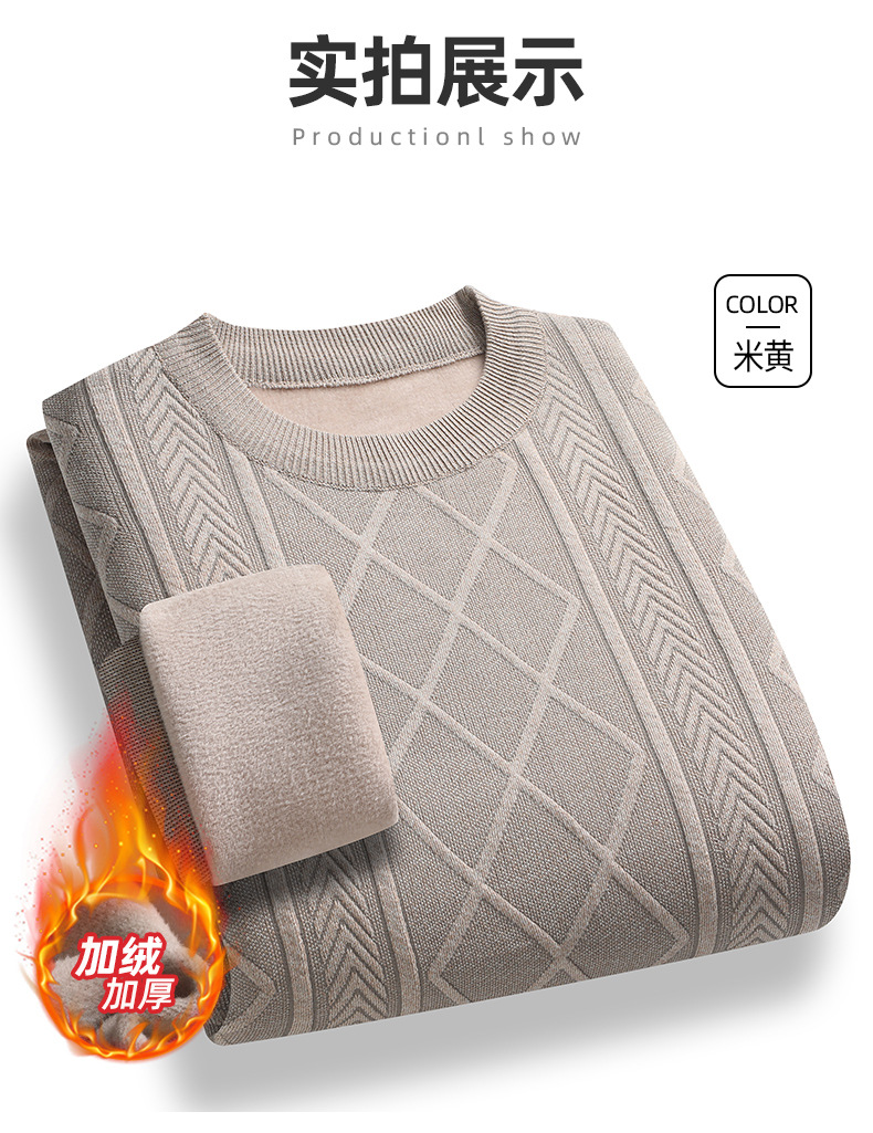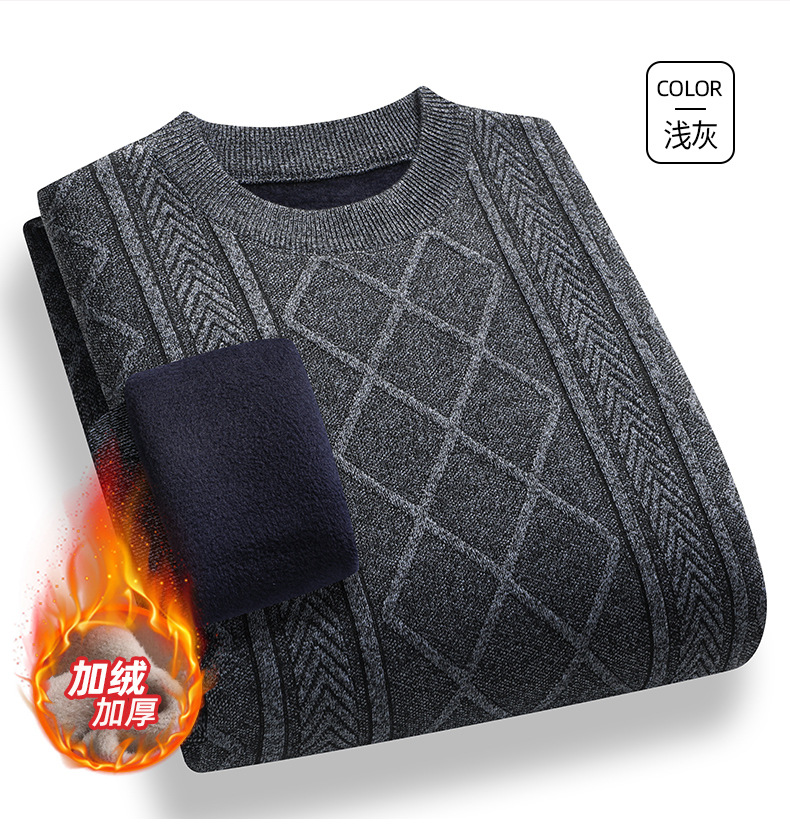 秋冬季中老年毛衣男士爸爸装加绒加厚圆领套头保暖上衣打底针织衫