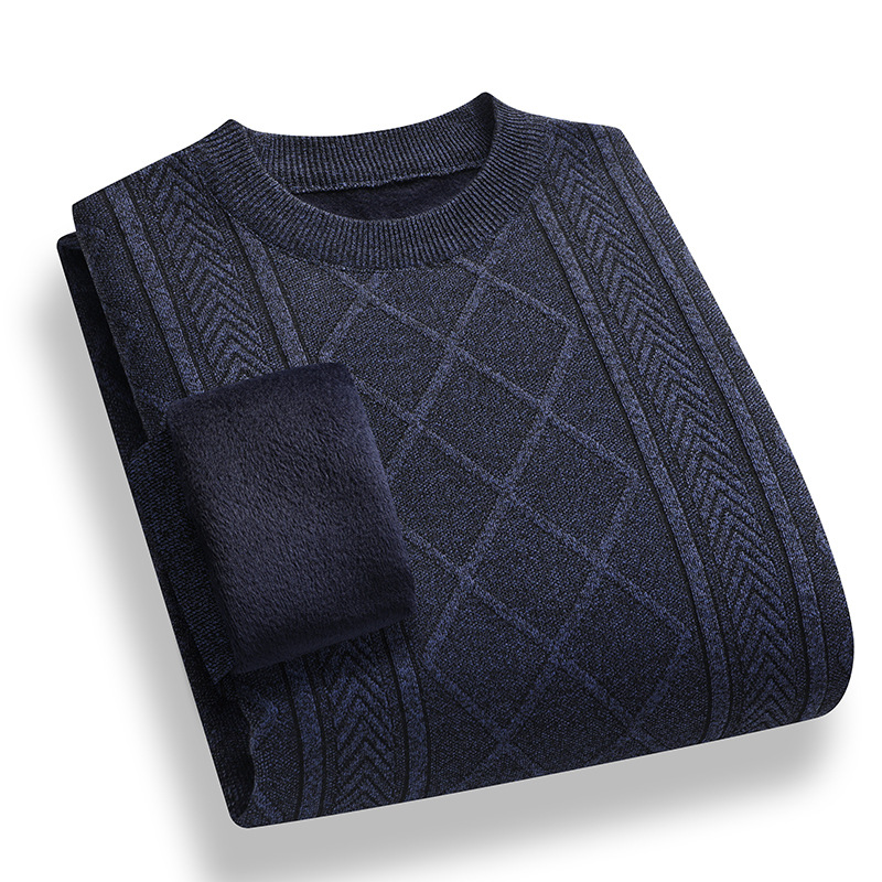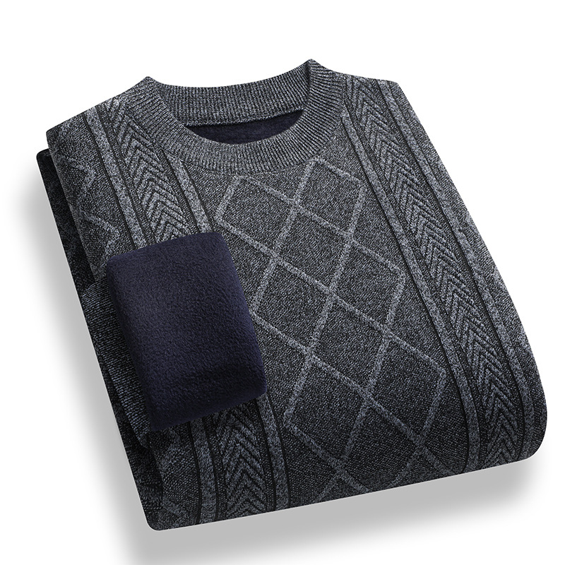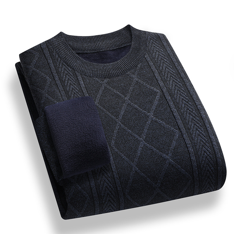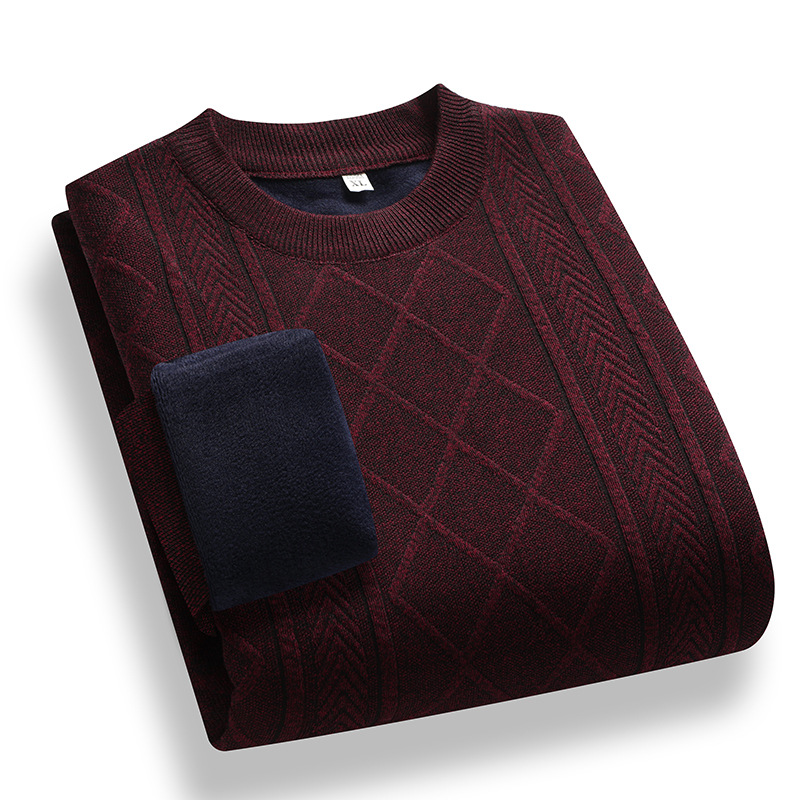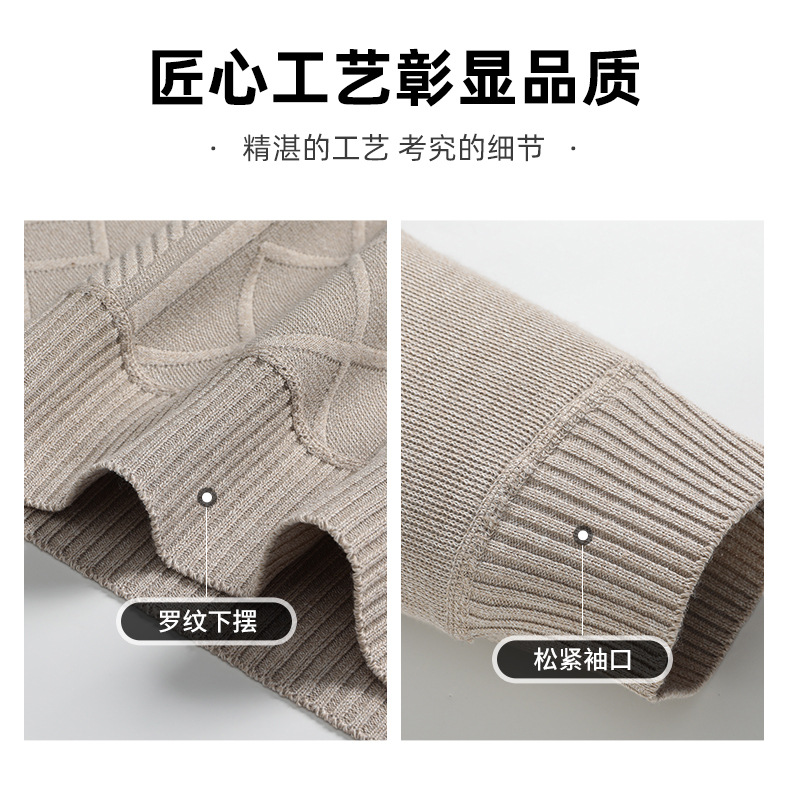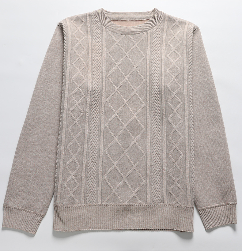 秋冬季中老年毛衣男士爸爸装加绒加厚圆领套头保暖上衣打底针织衫