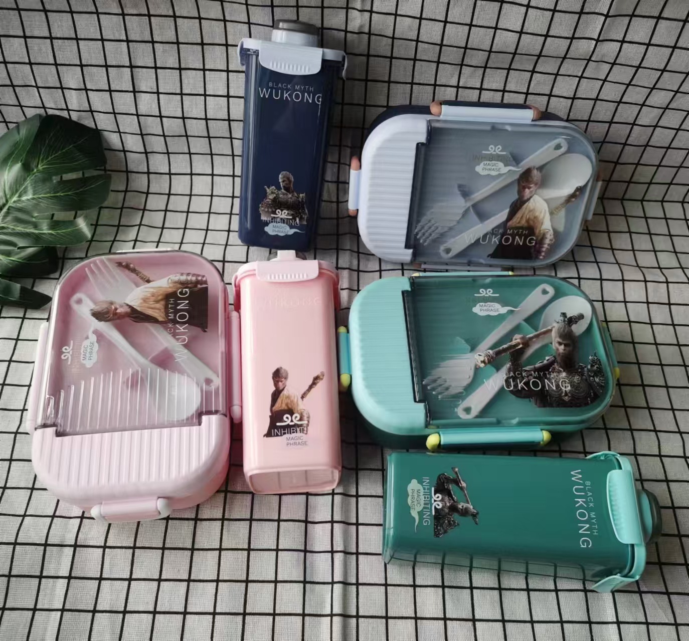 2024新款卡通水壶饭盒套装饭盒配水壶午餐盒卡通图图案