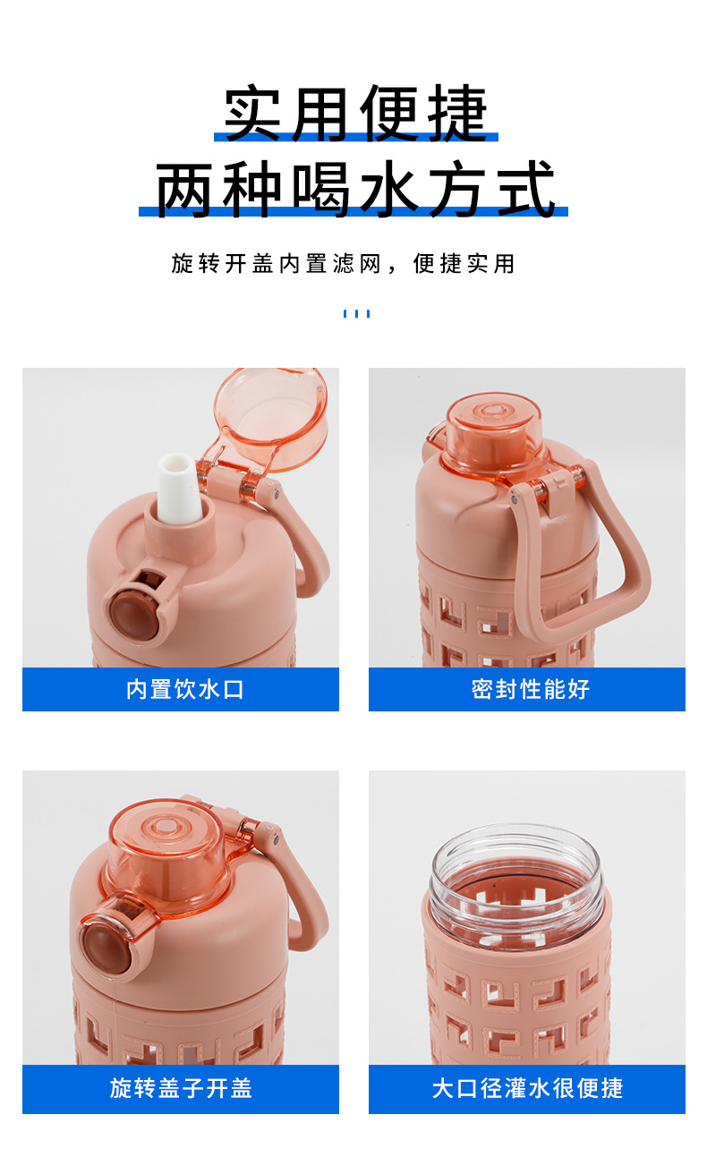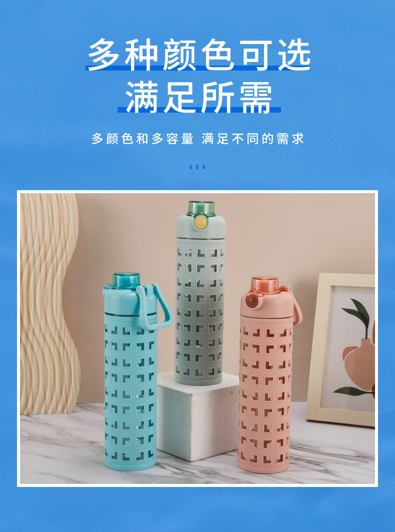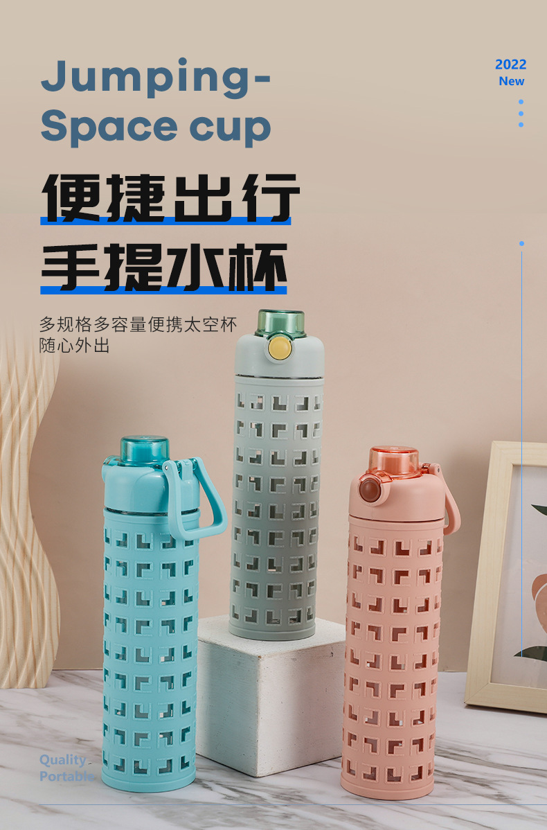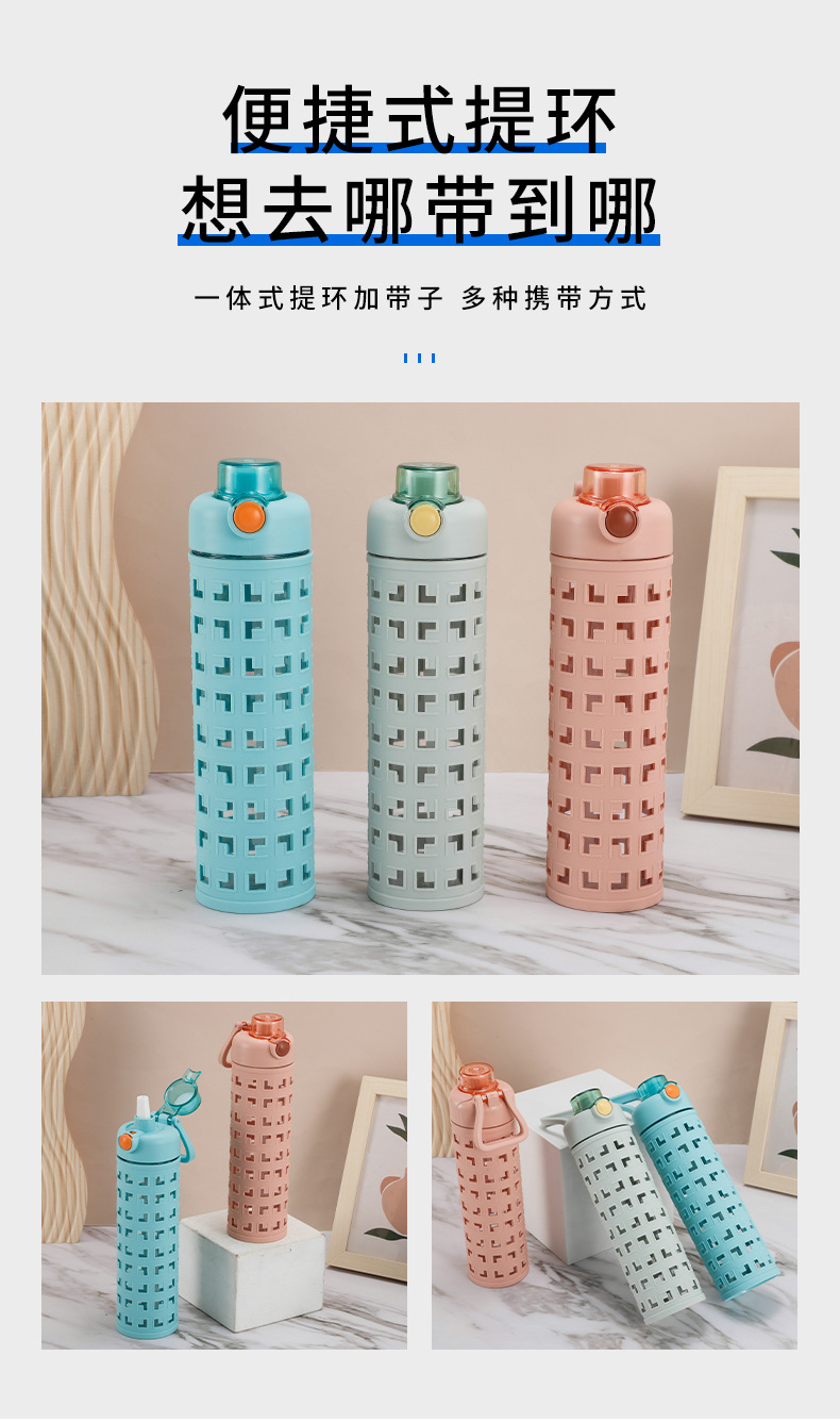 高温简约塑料杯弹盖吸管杯双层缕空便携水杯高颜值随手杯耐高温简