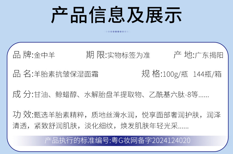 羊胎素紧致抗皱淡化细纹面霜面部护肤霜补水保湿滋润脸部