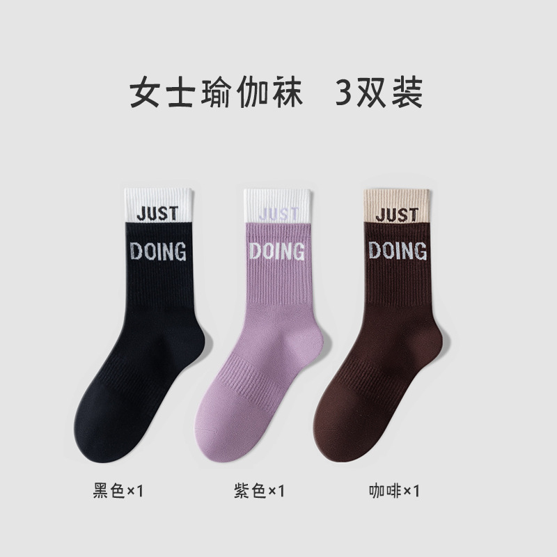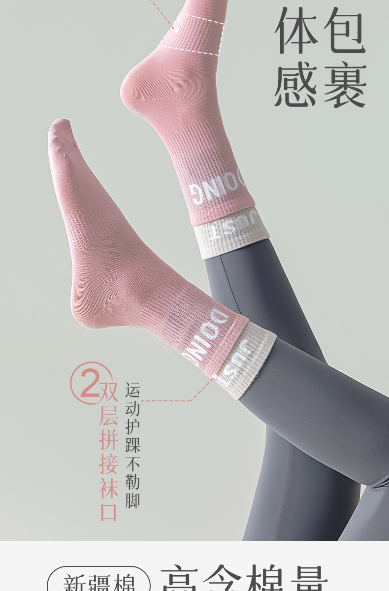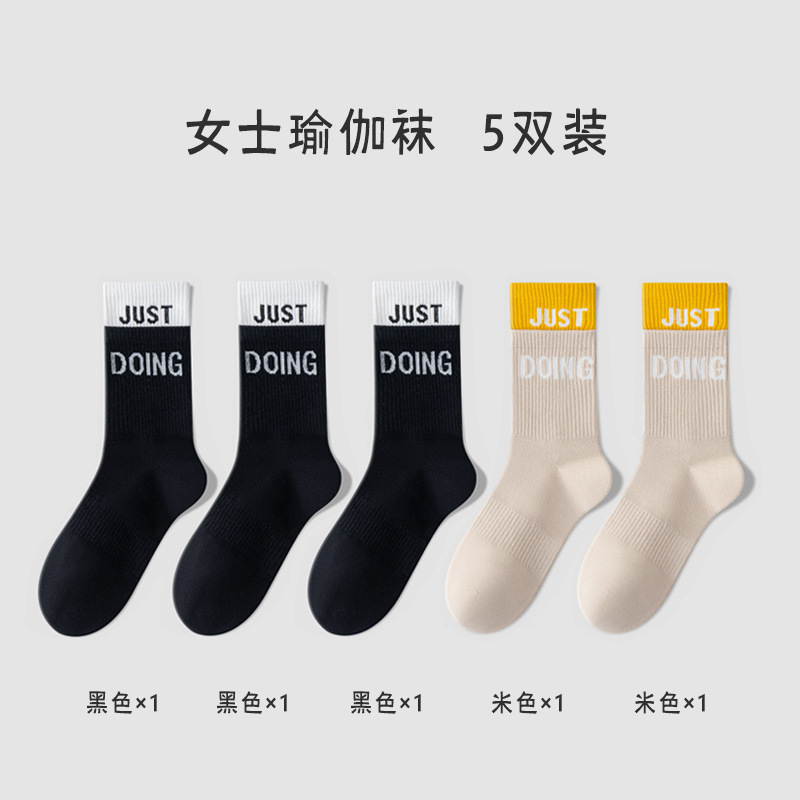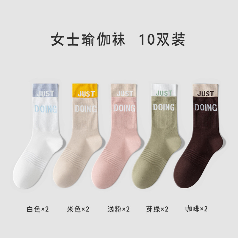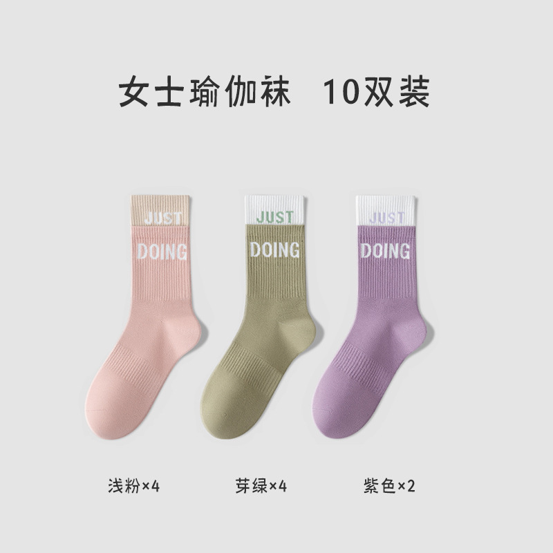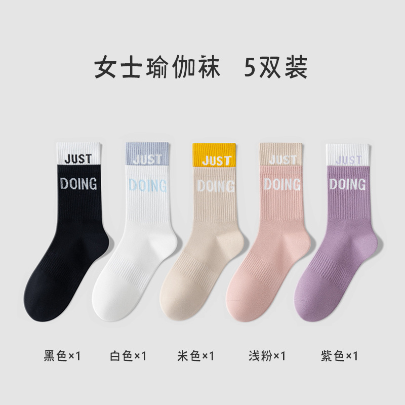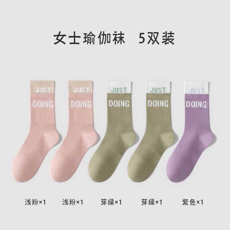 瑜伽袜子女中筒袜纯棉夏季健身舞蹈普拉提专业防滑运动女士地板袜