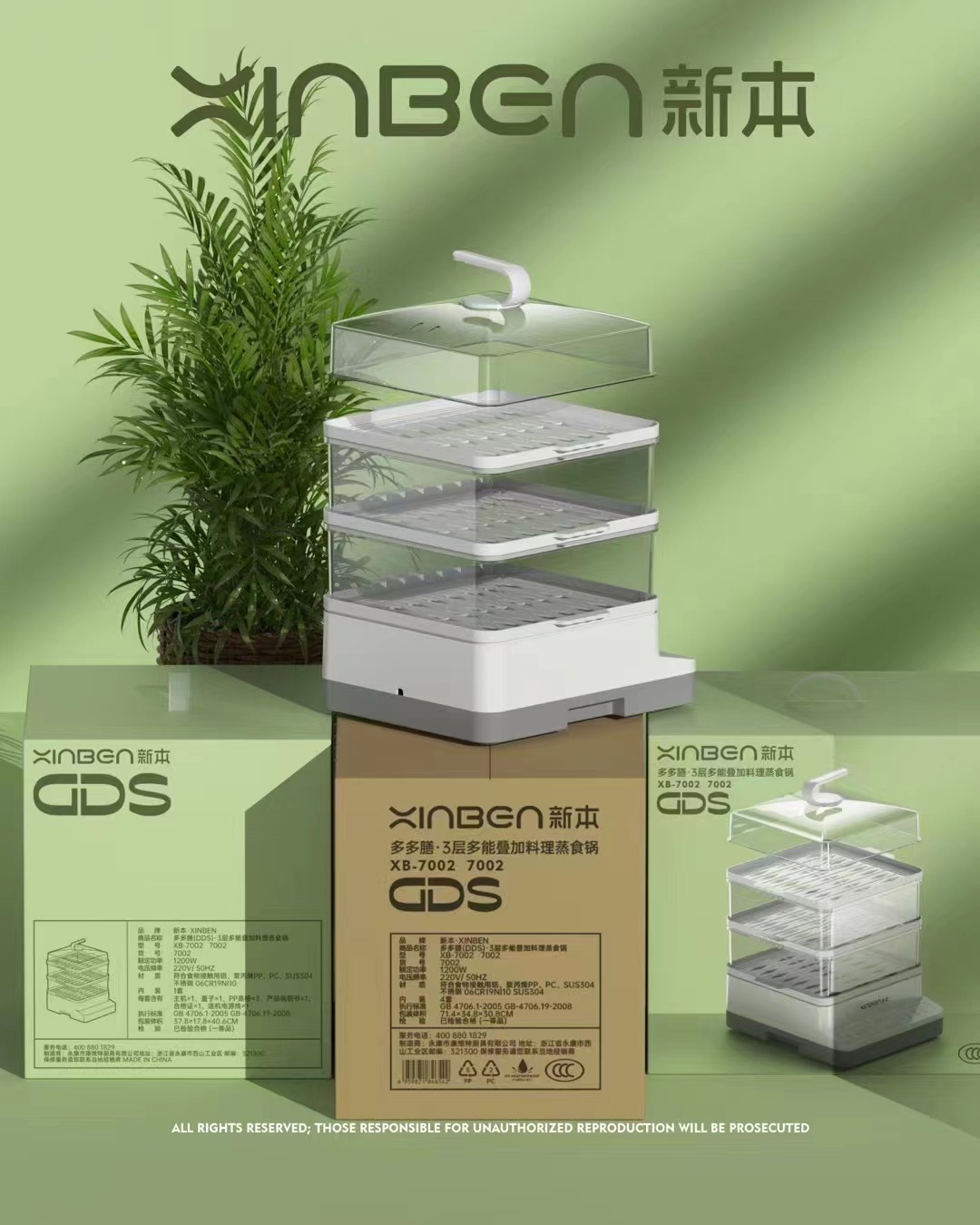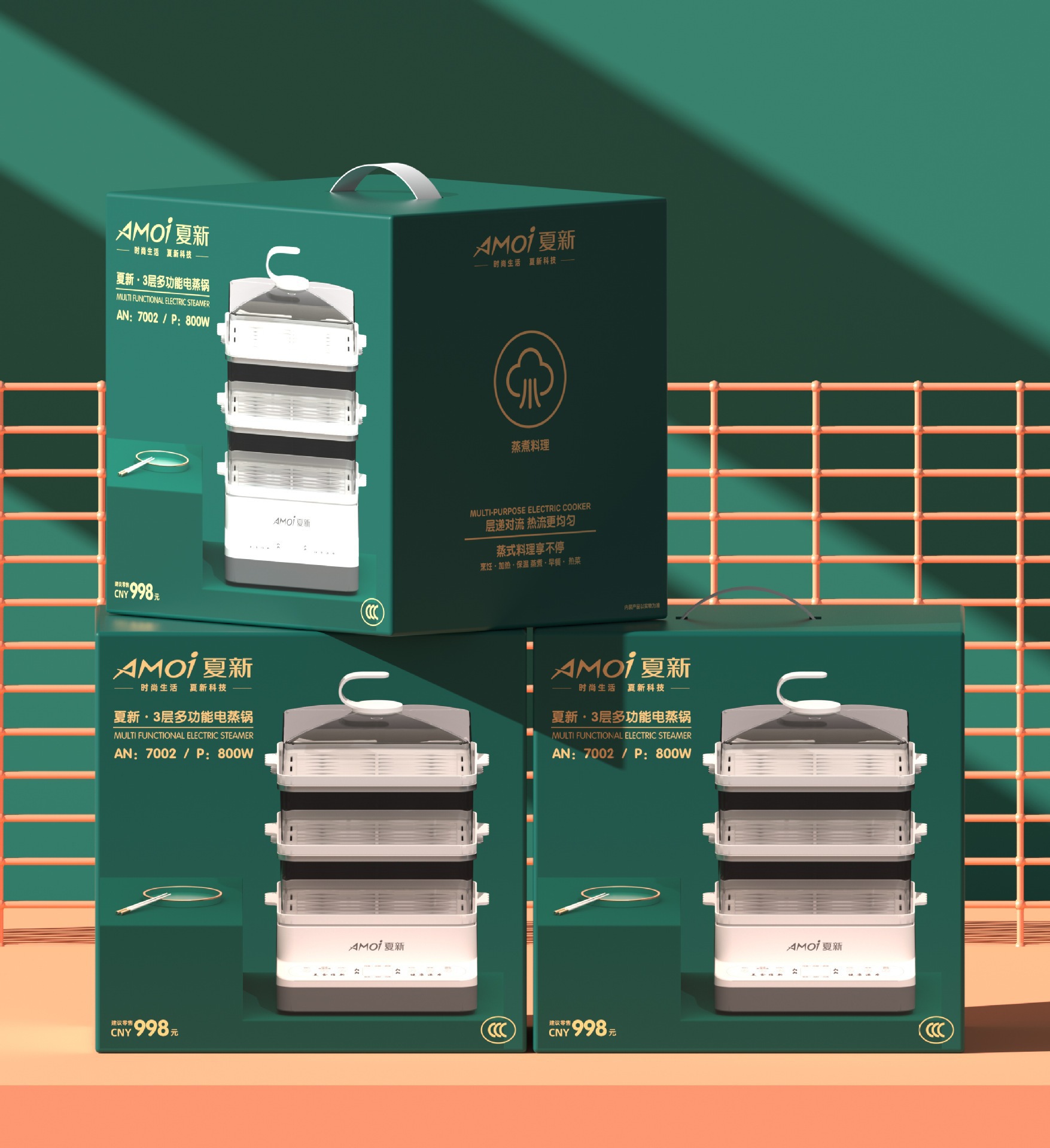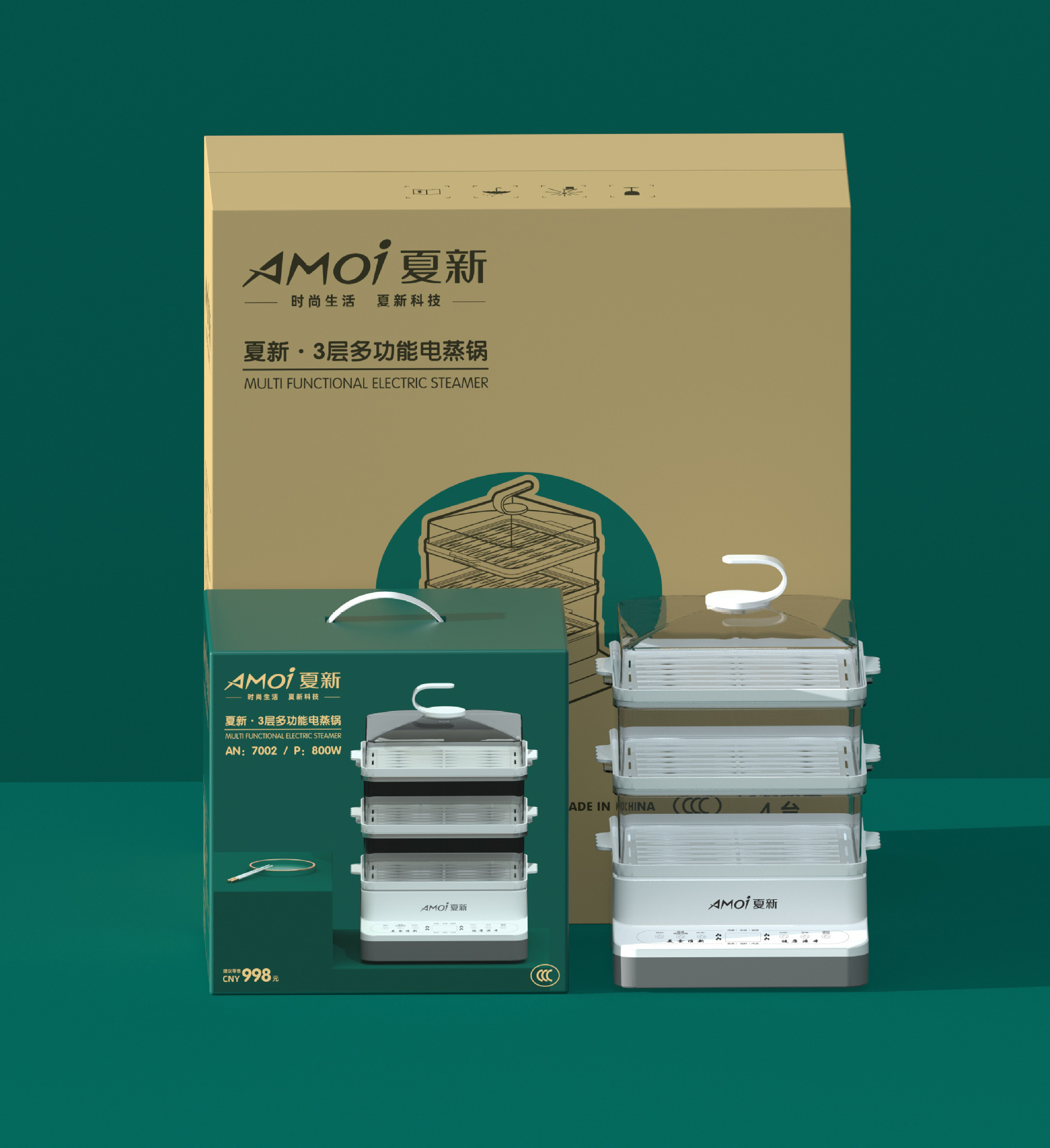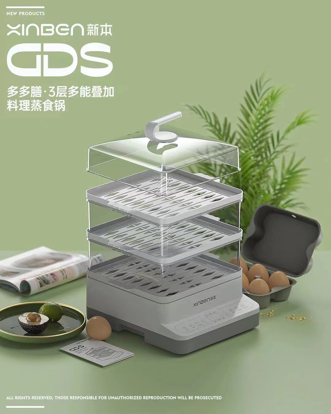 夏新电蒸锅家用多功能电蒸笼三层大容量电热锅蒸煮一体蒸箱批发