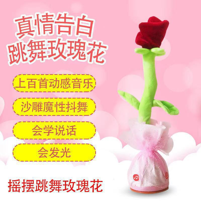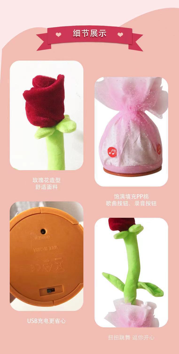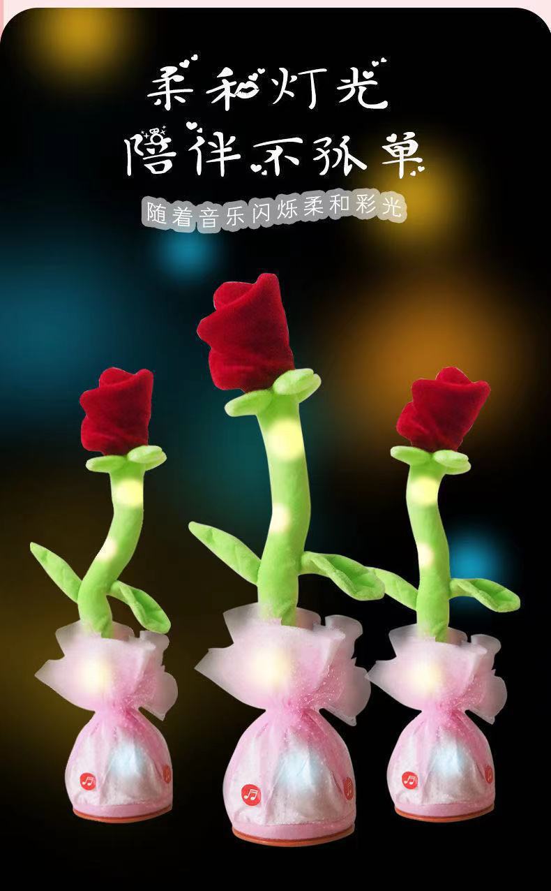 新品ins网红会唱歌跳舞沙雕玫瑰花跨境毛绒玩具情人节女生礼物