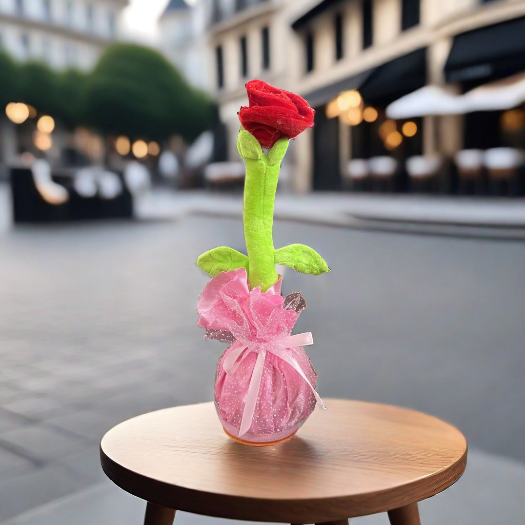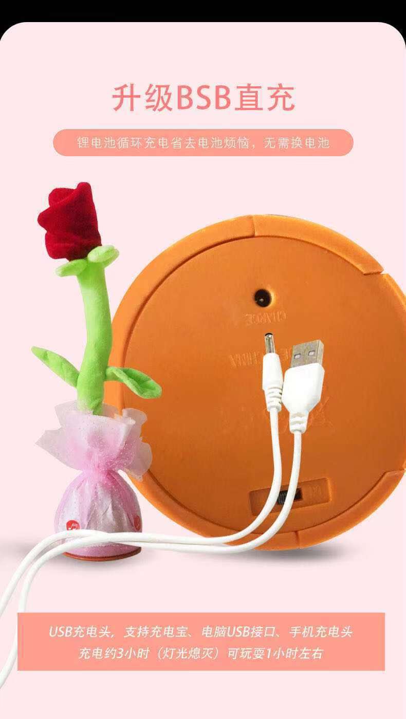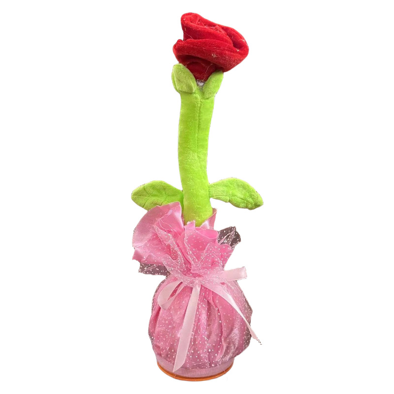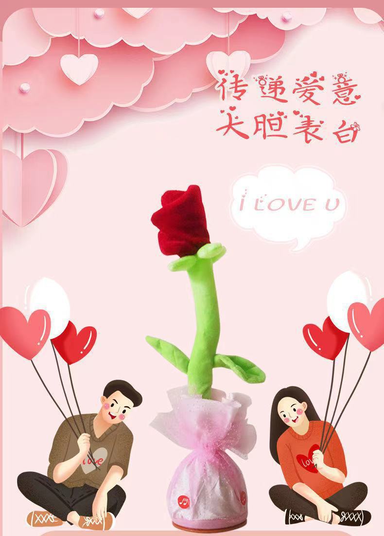 新品ins网红会唱歌跳舞沙雕玫瑰花跨境毛绒玩具情人节女生礼物
