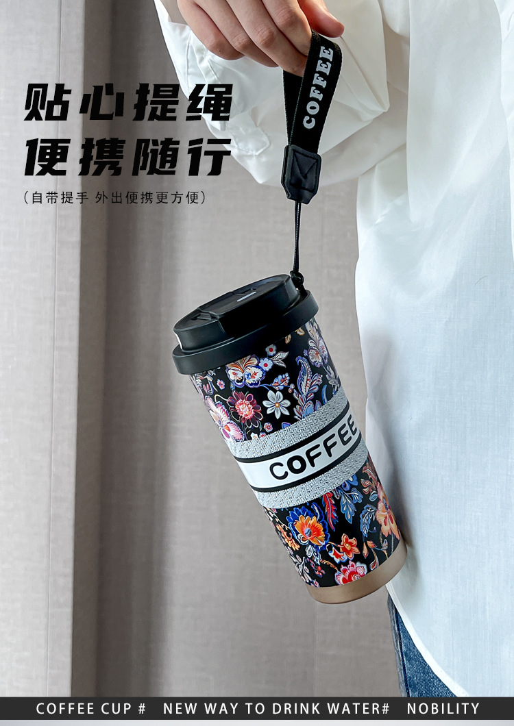 316不锈钢霸王茶姬咖啡杯双层真空手提吸管杯户外便携式保温杯