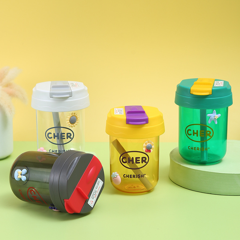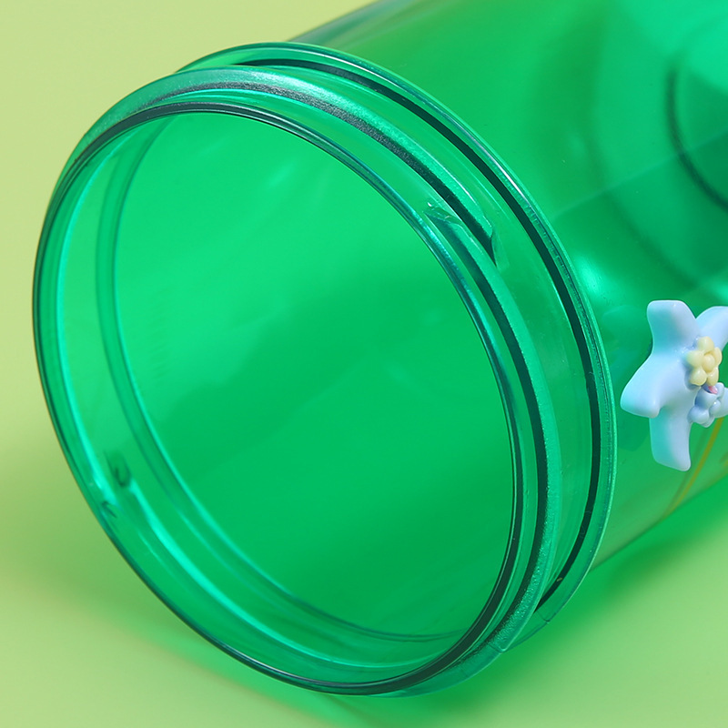 新款迷你墩墩双饮塑料杯透明高颜值吸管杯户外便携式简约型随手杯