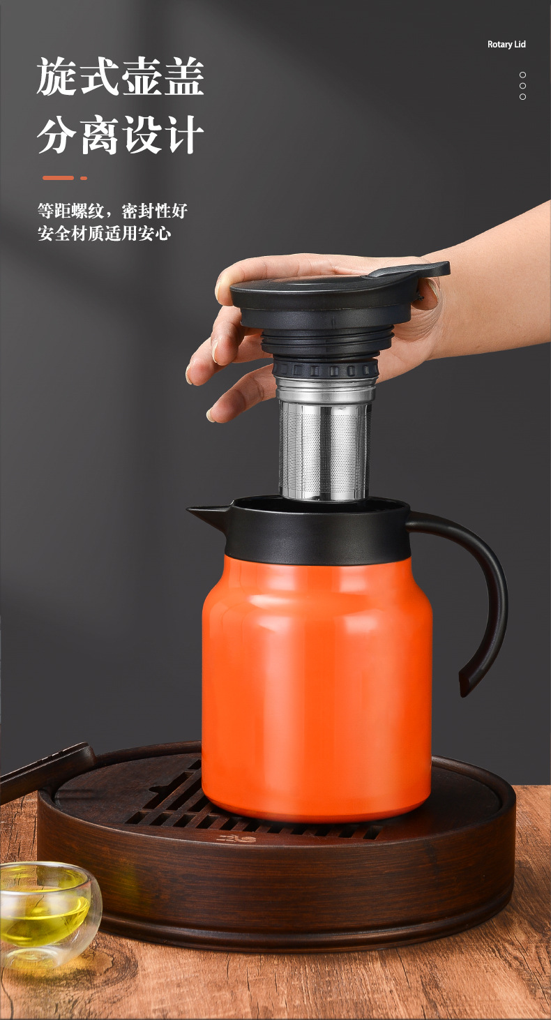 316不锈钢保温杯户外便携式带手柄保温壶真空双层带滤网闷茶壶