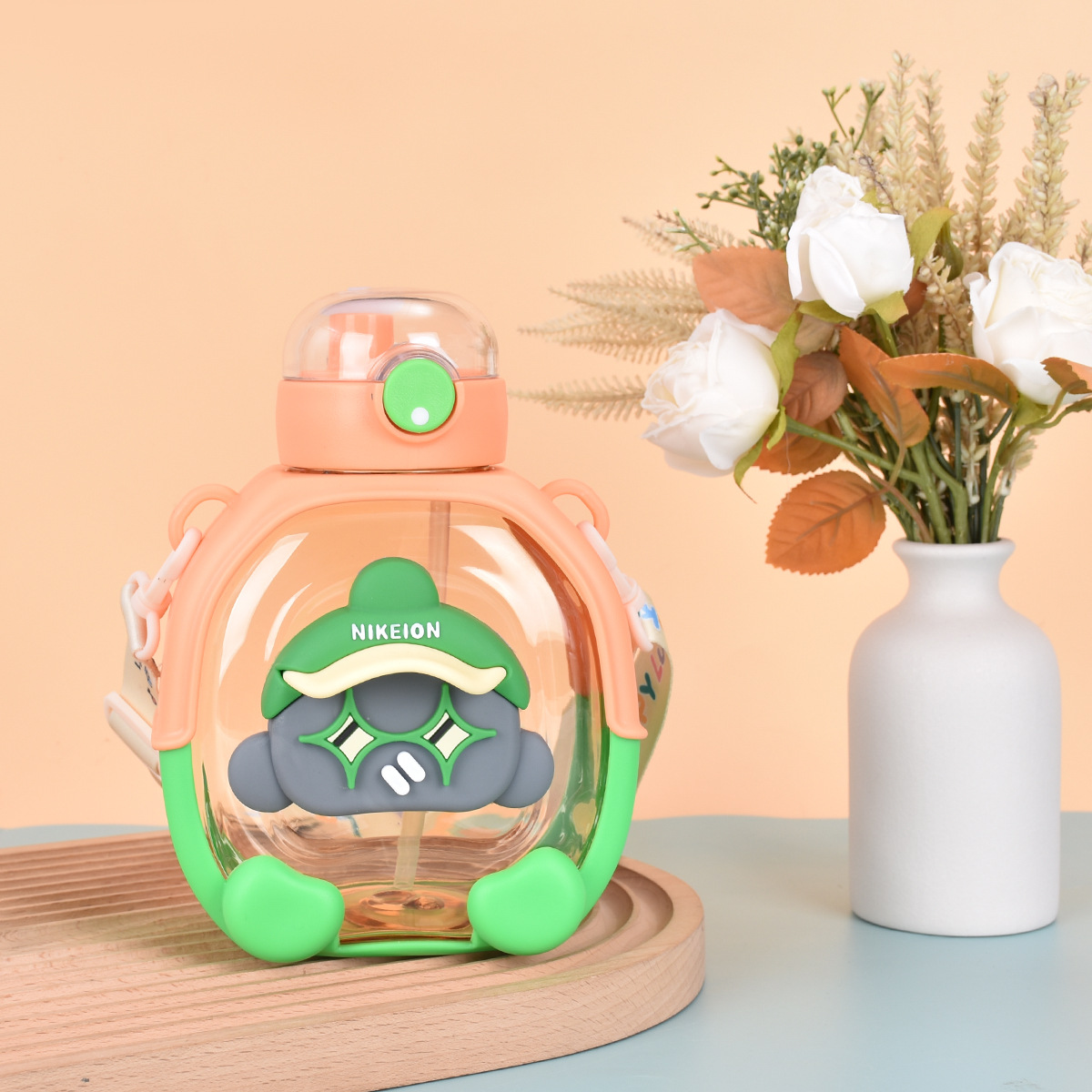 网红新款塑料杯户外便携双饮杯创意卡通儿童水杯防摔大容量吸管杯