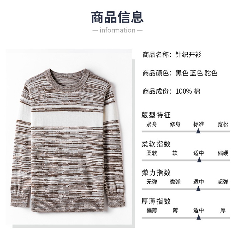 春秋冬男士圆领打底衫简约全棉时尚薄款线衣男套头棉毛衫毛衣男