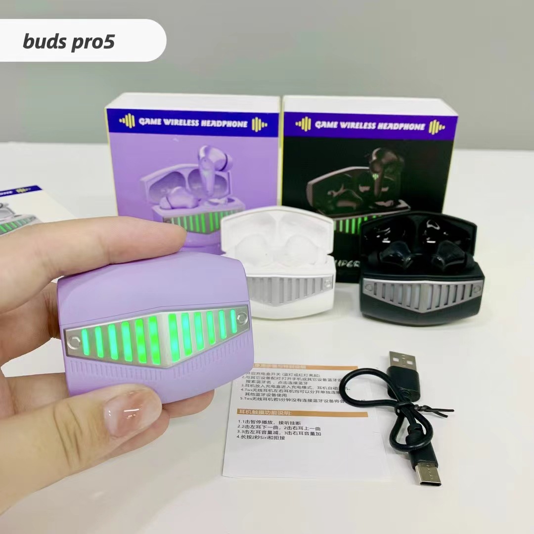 BUDS PRO5 跨境私模无线蓝牙耳机立体声游戏电竞LED tws蓝牙耳机