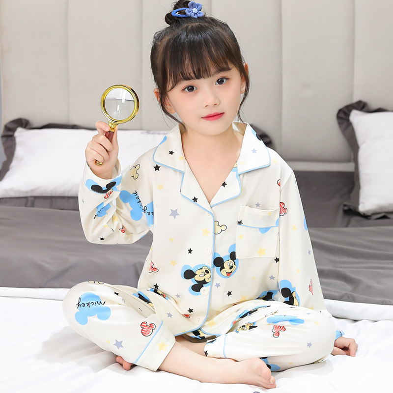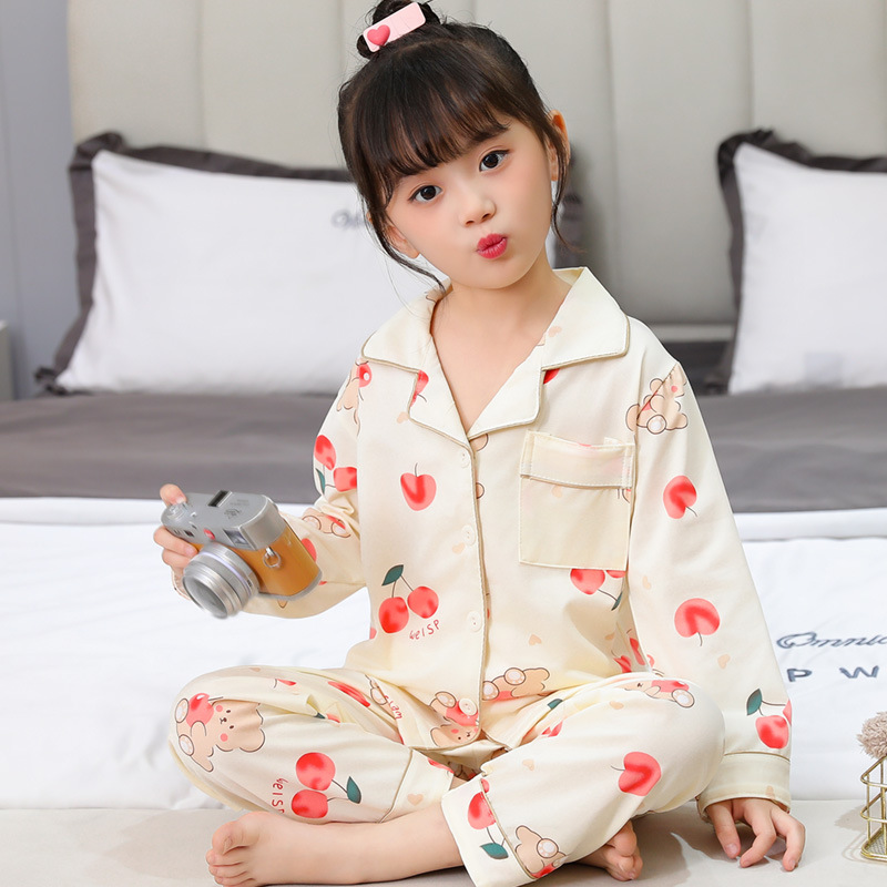 春秋季儿童睡衣女童翻领开衫可爱卡通甜美宽松薄款中小大童家居服