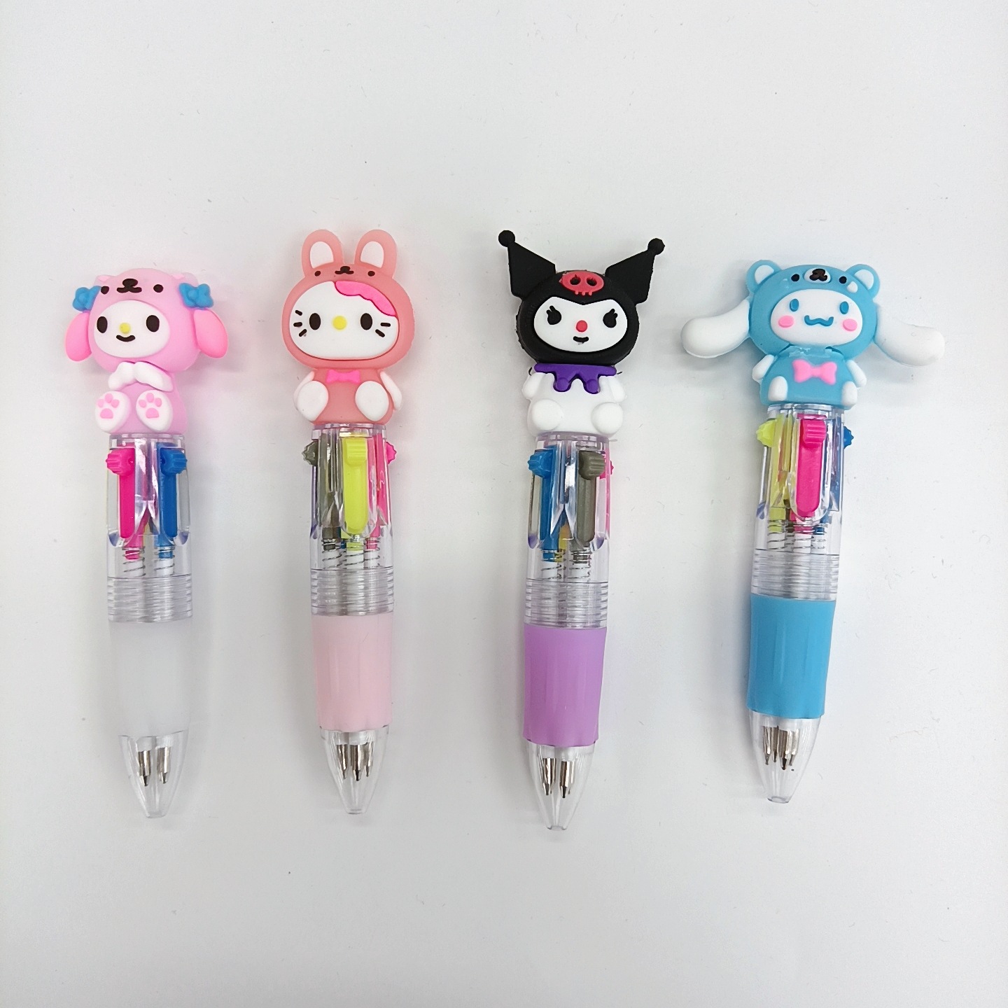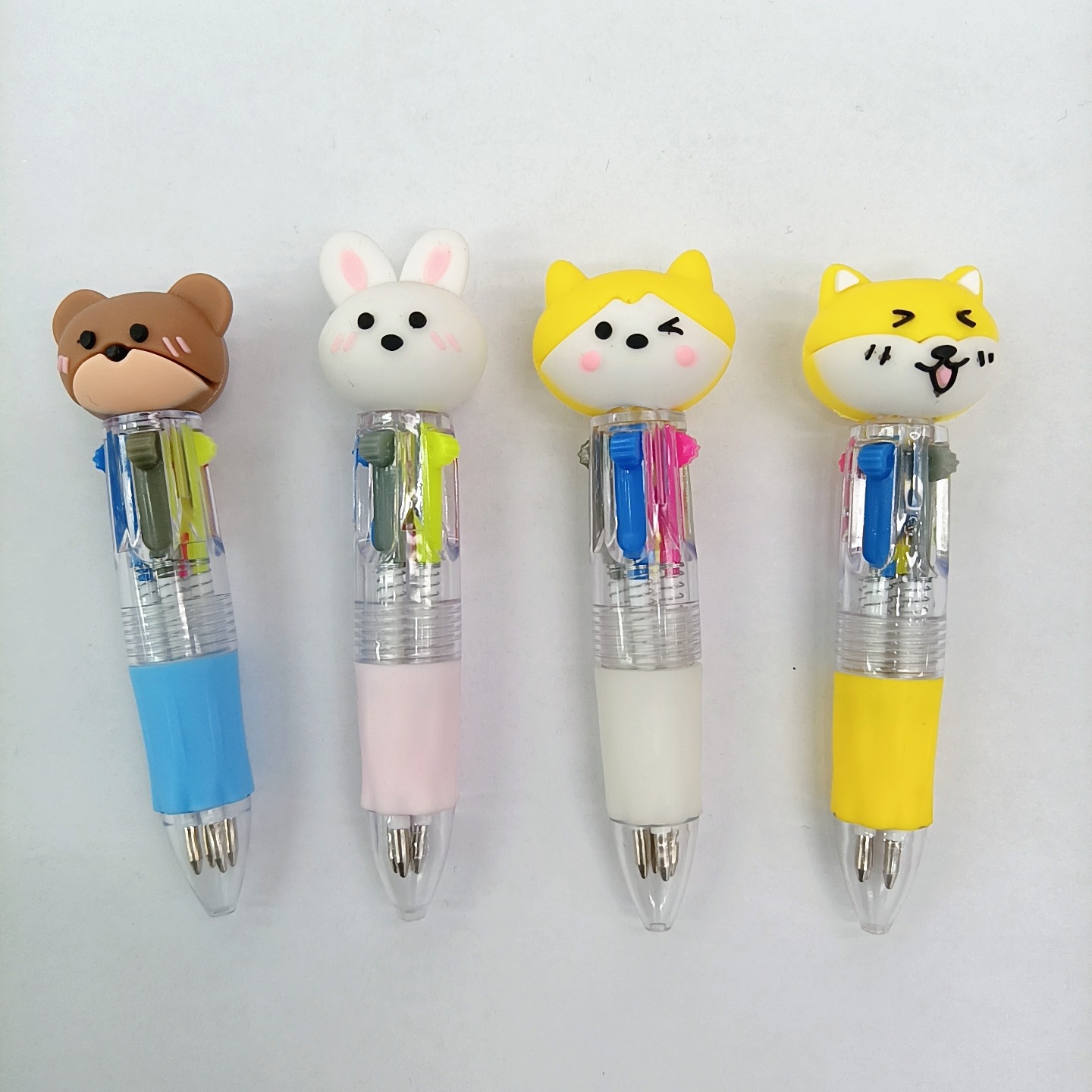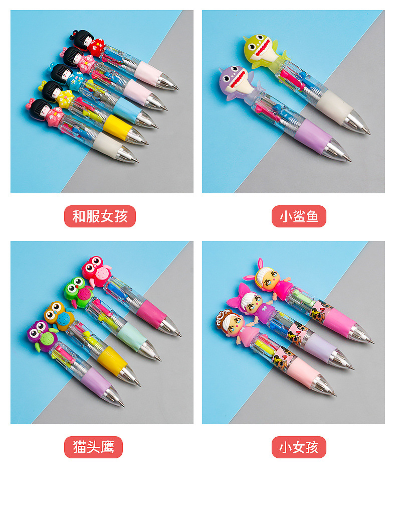 厂家外贸可爱卡通公仔造型4色按动圆珠笔便携多色卡通手账圆珠笔