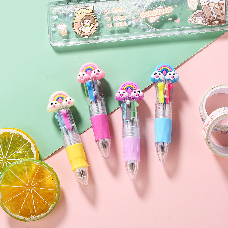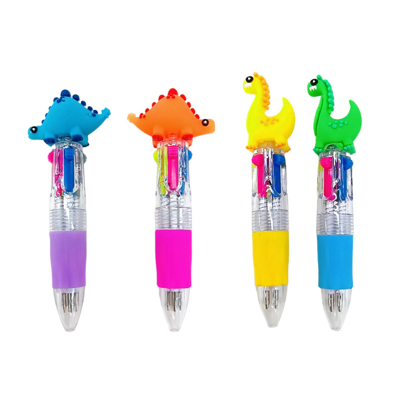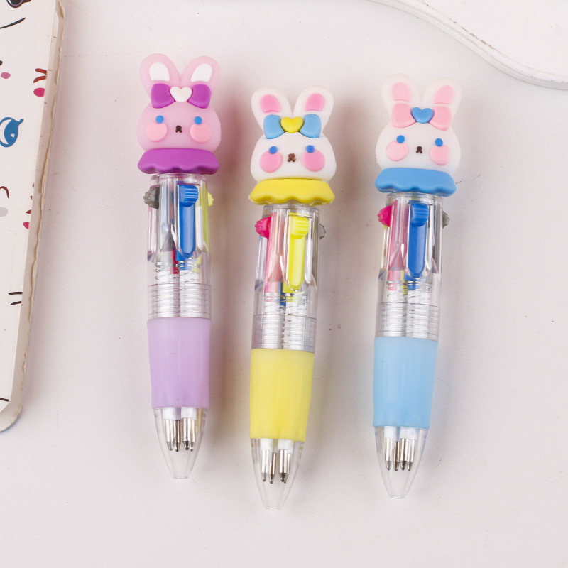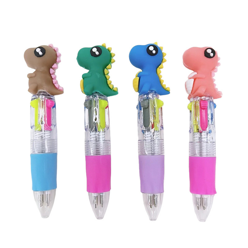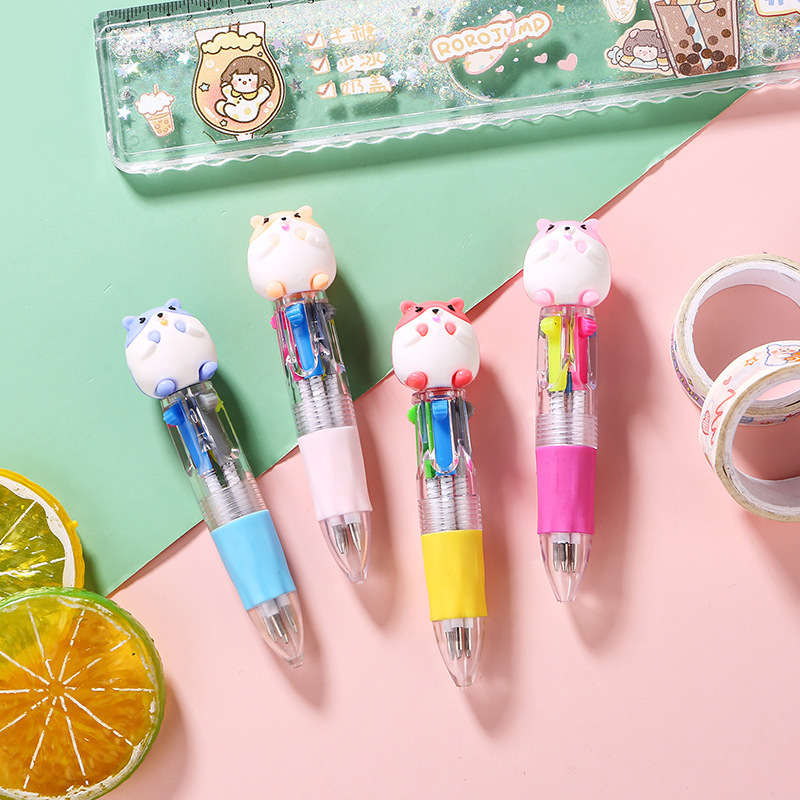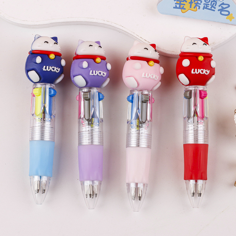 厂家外贸可爱卡通公仔造型4色按动圆珠笔便携多色卡通手账圆珠笔