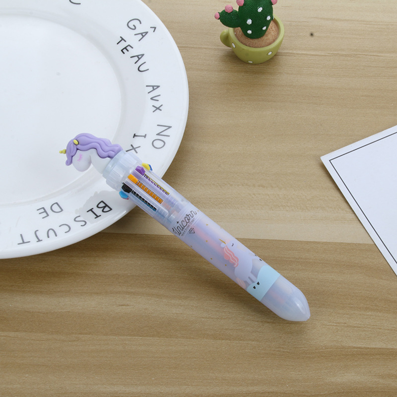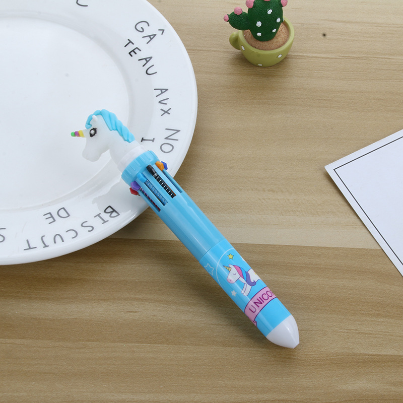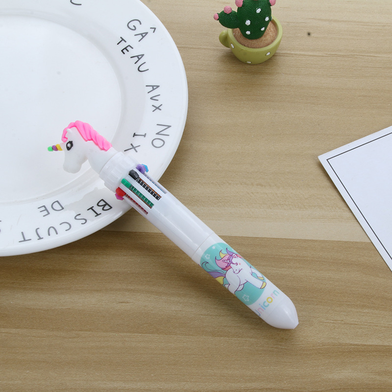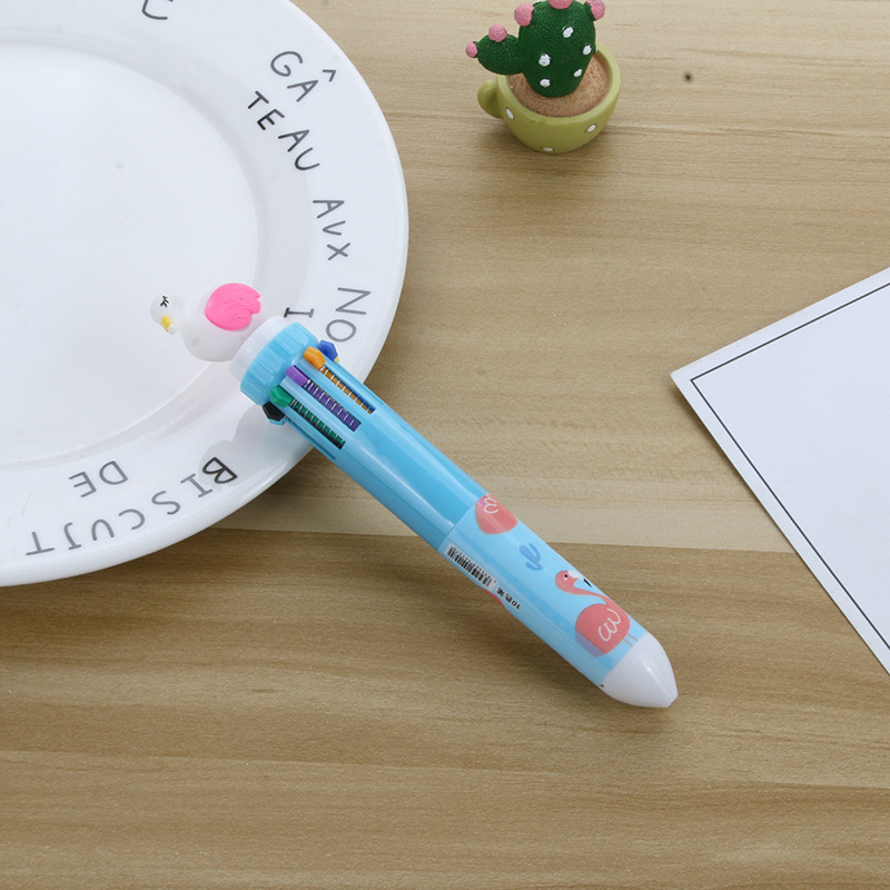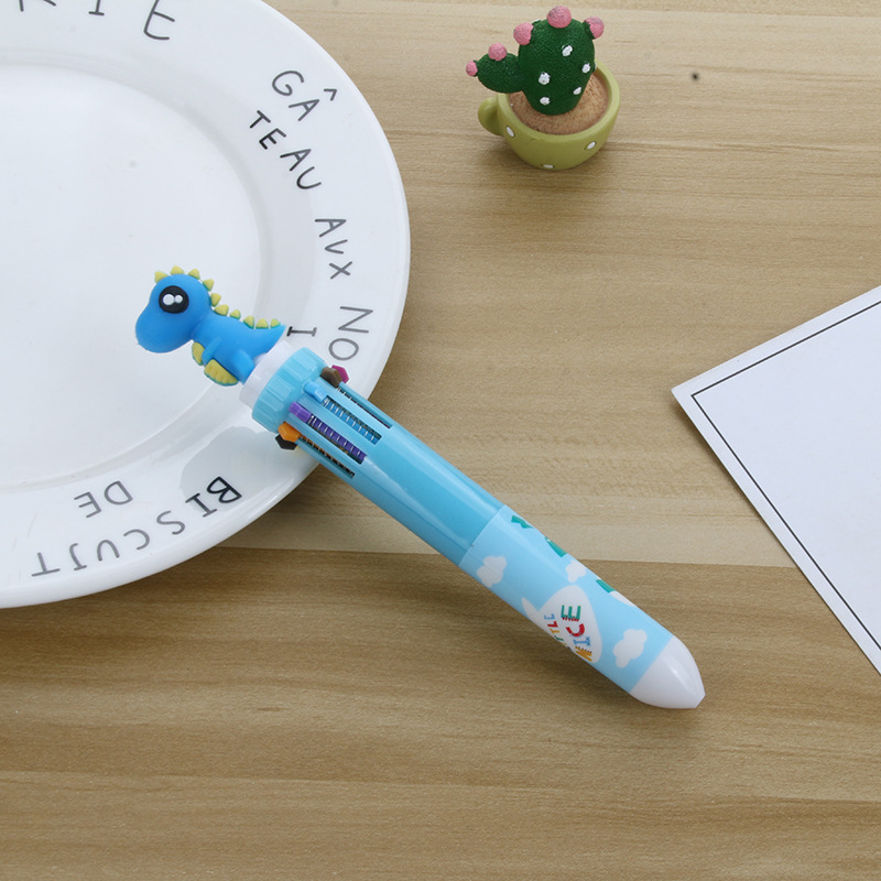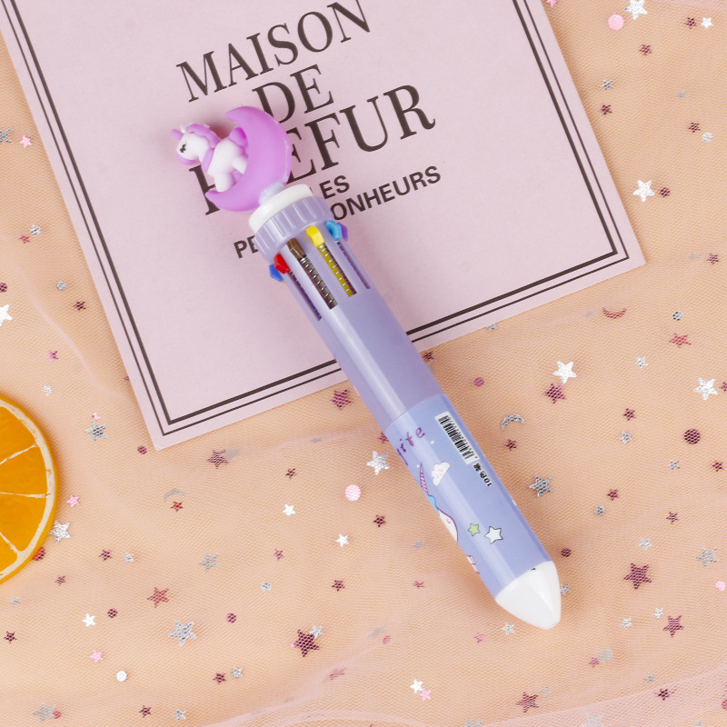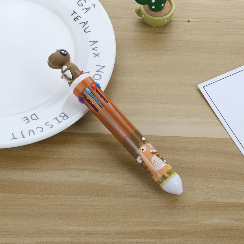 卡通硅胶10色圆珠笔可爱按动十色圆珠笔学生多色笔多色合一中油笔