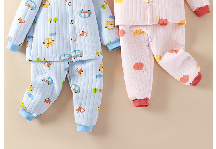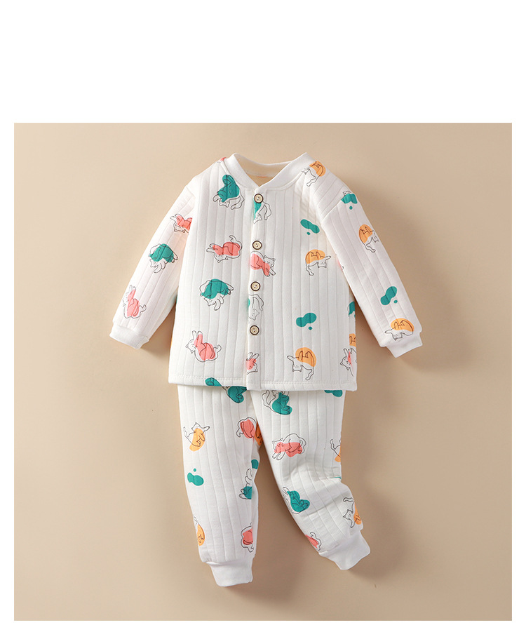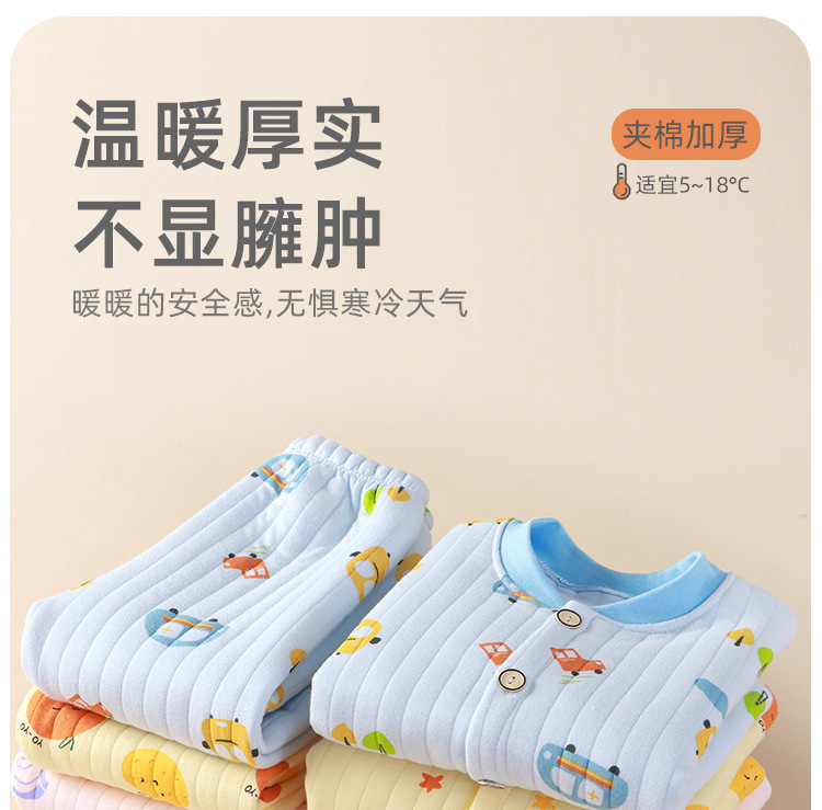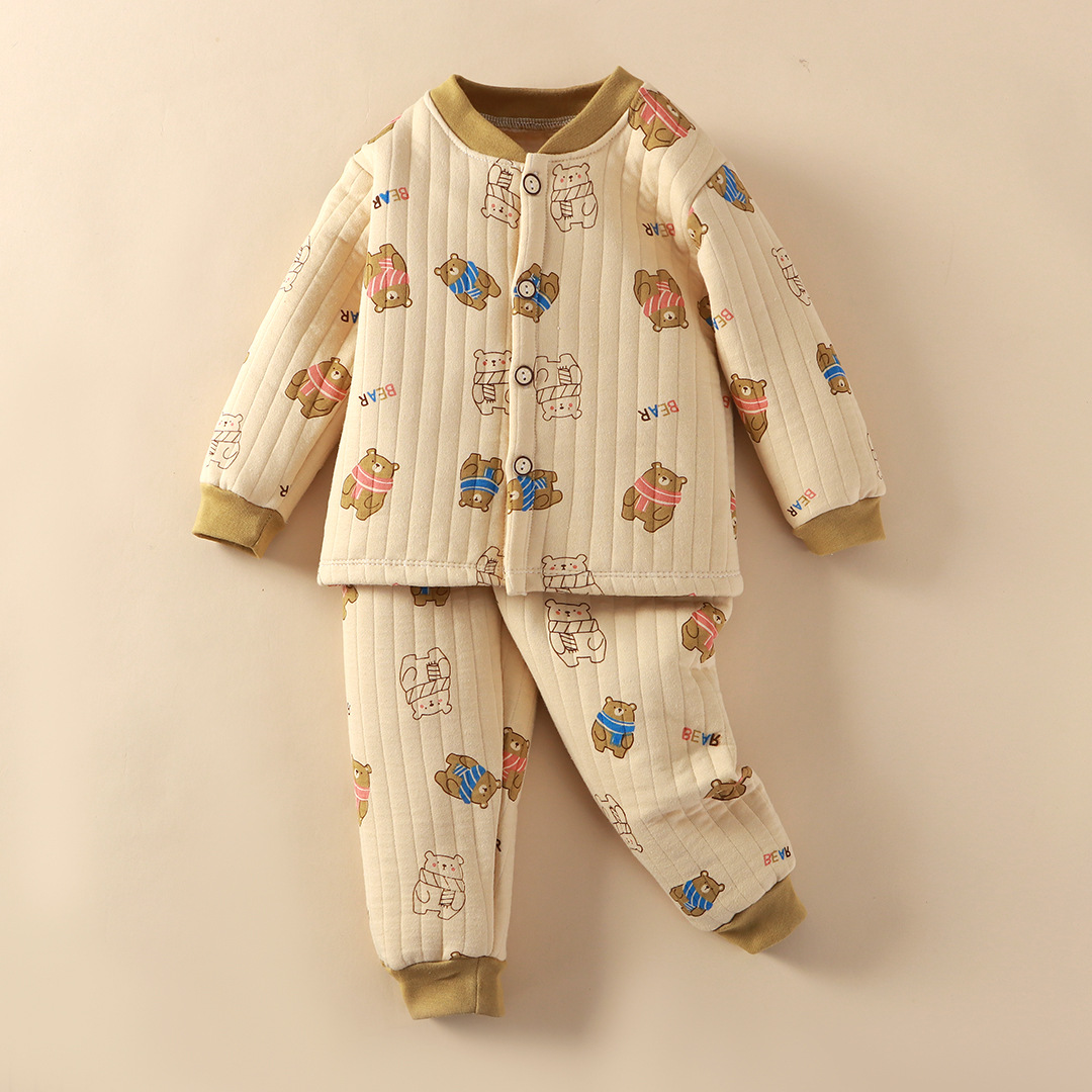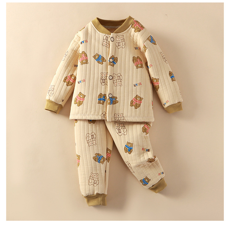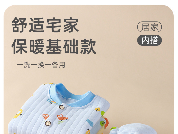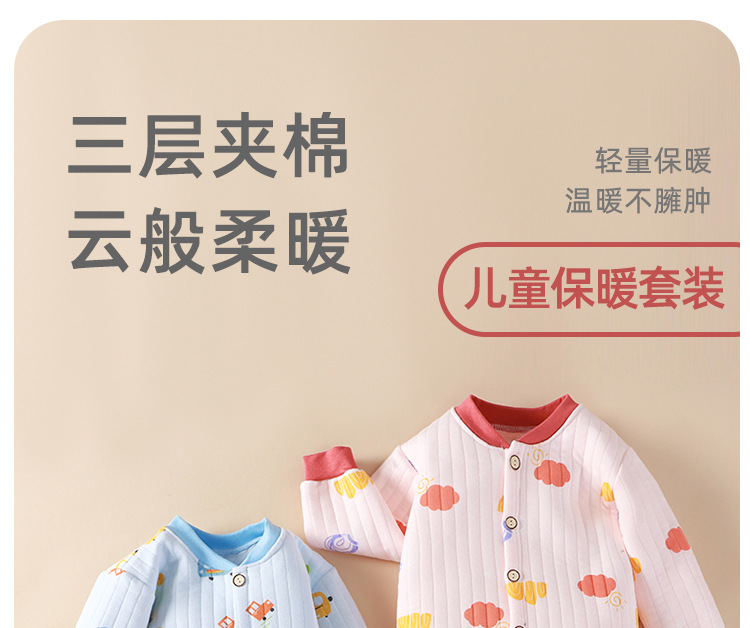 儿童内衣套装三层保暖对开加厚宝宝棉质睡衣婴儿服a类新生儿童装