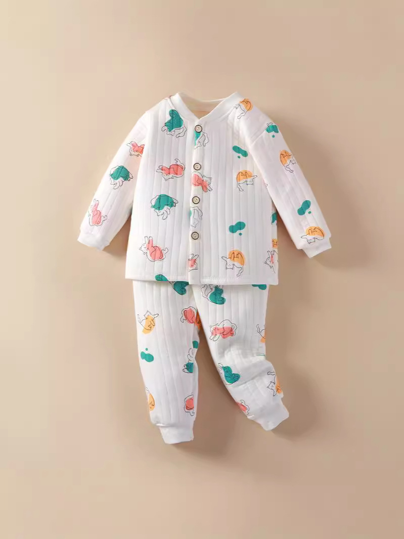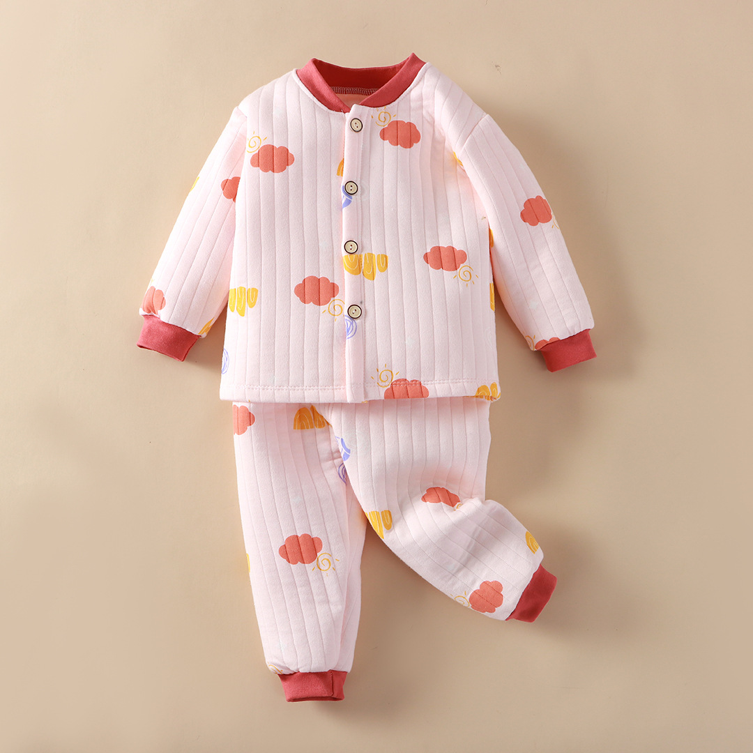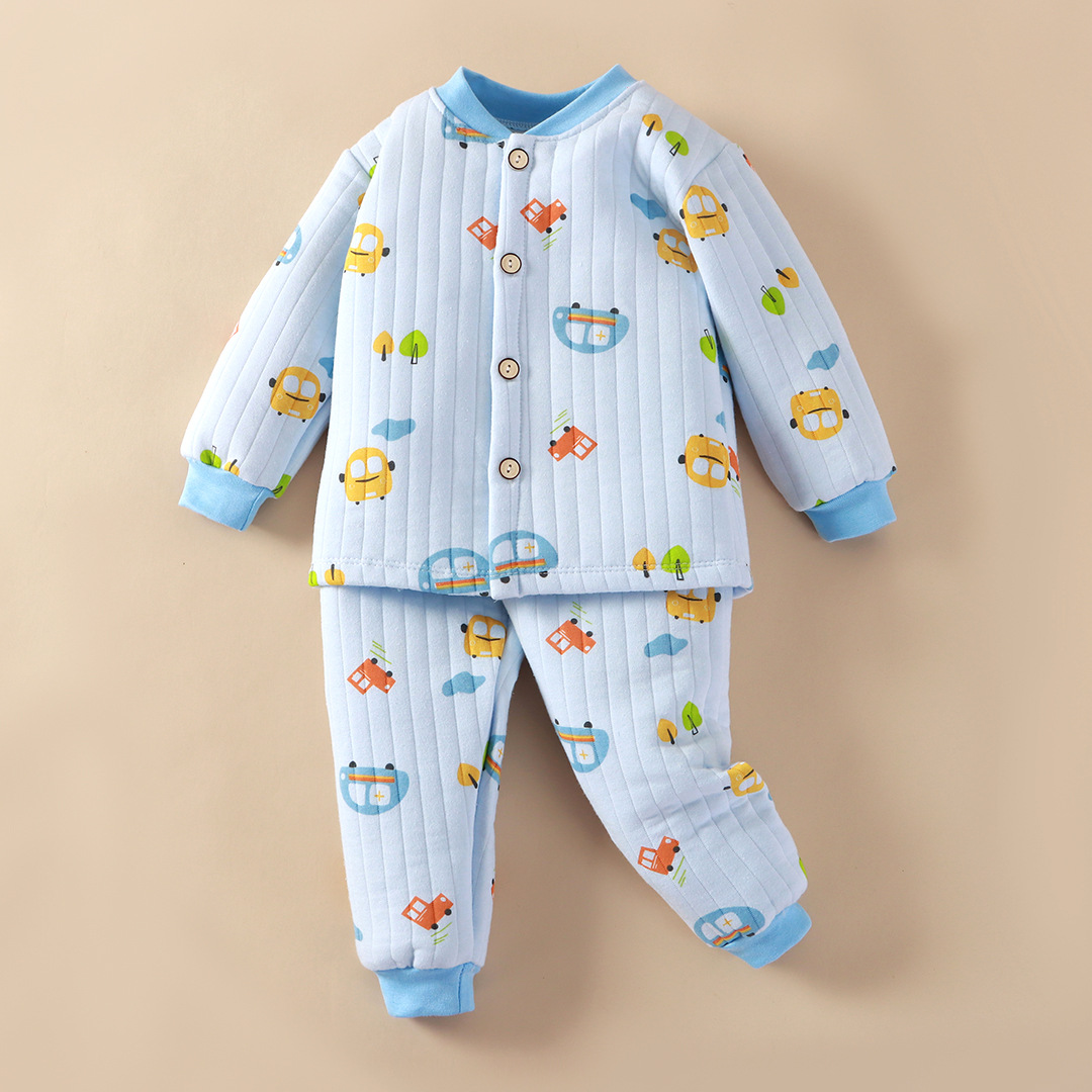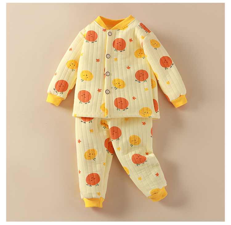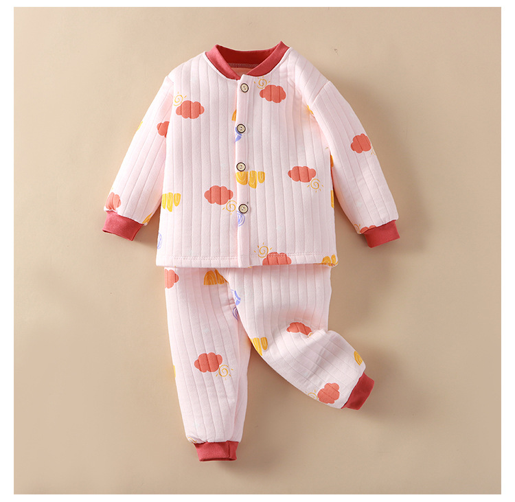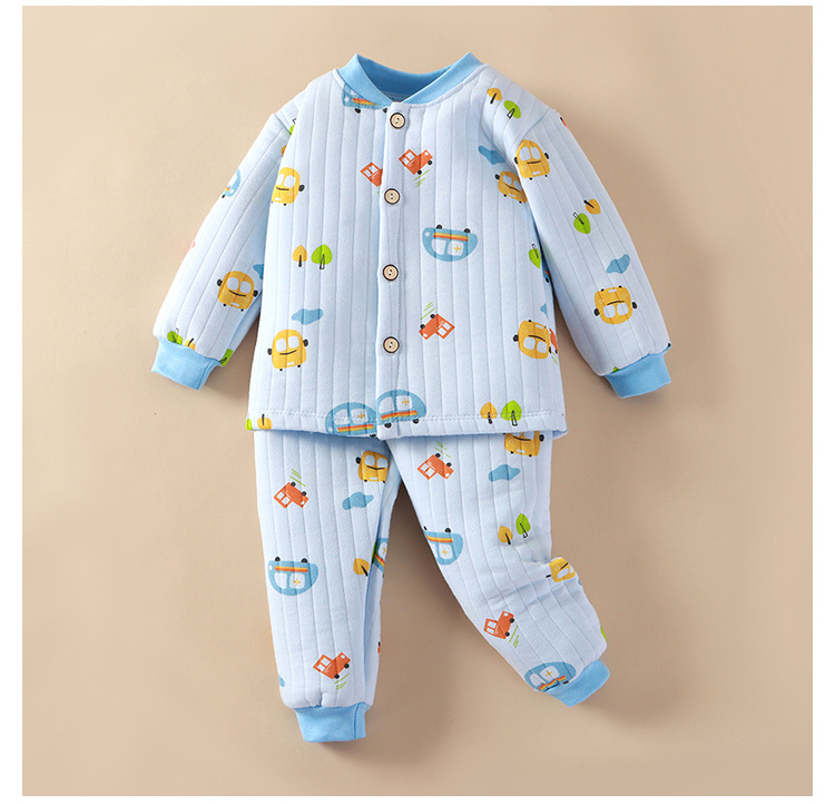 儿童内衣套装三层保暖对开加厚宝宝棉质睡衣婴儿服a类新生儿童装