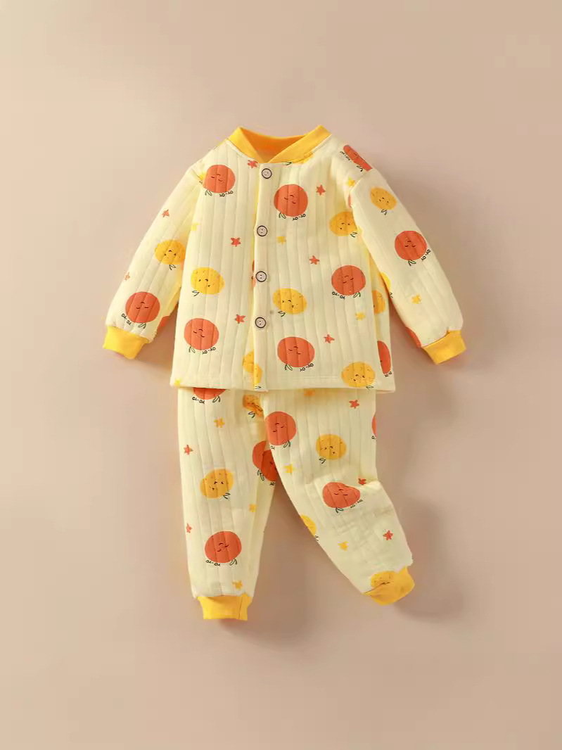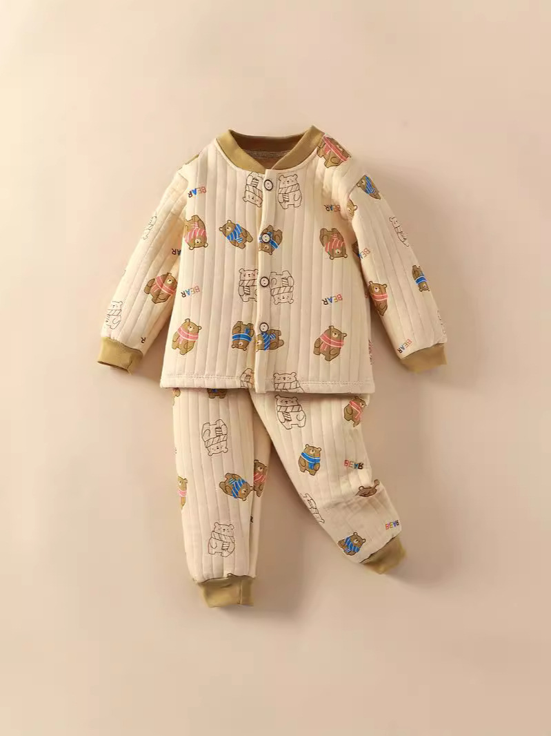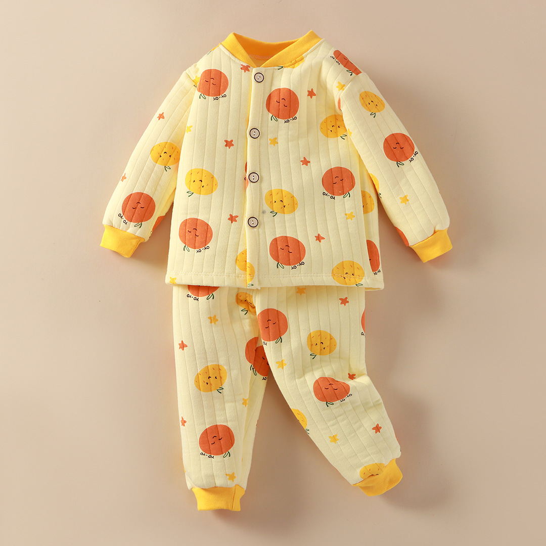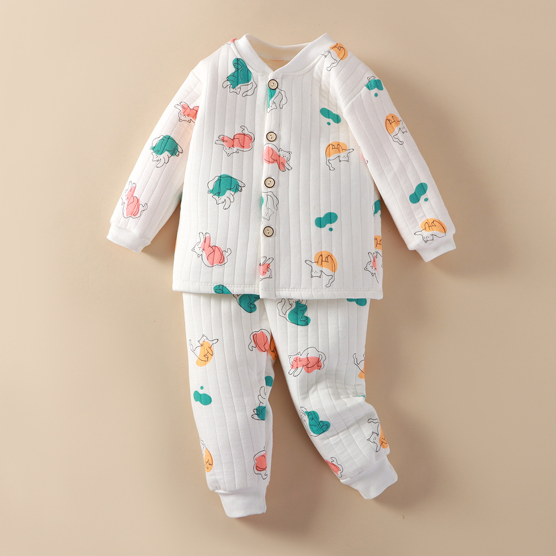 儿童内衣套装三层保暖对开加厚宝宝棉质睡衣婴儿服a类新生儿童装