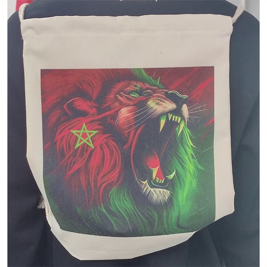 涤棉8盎司帆布包厨房束口袋购物袋咆哮狮手提帆布背包