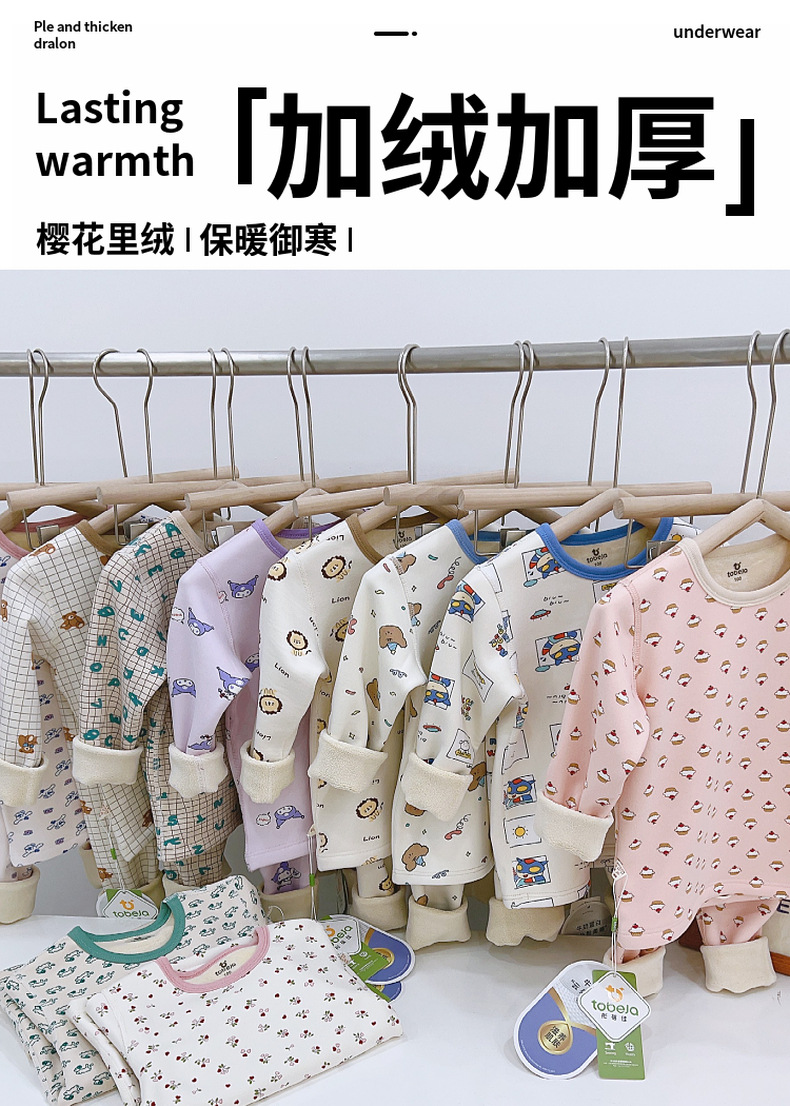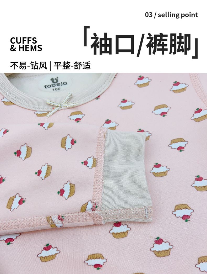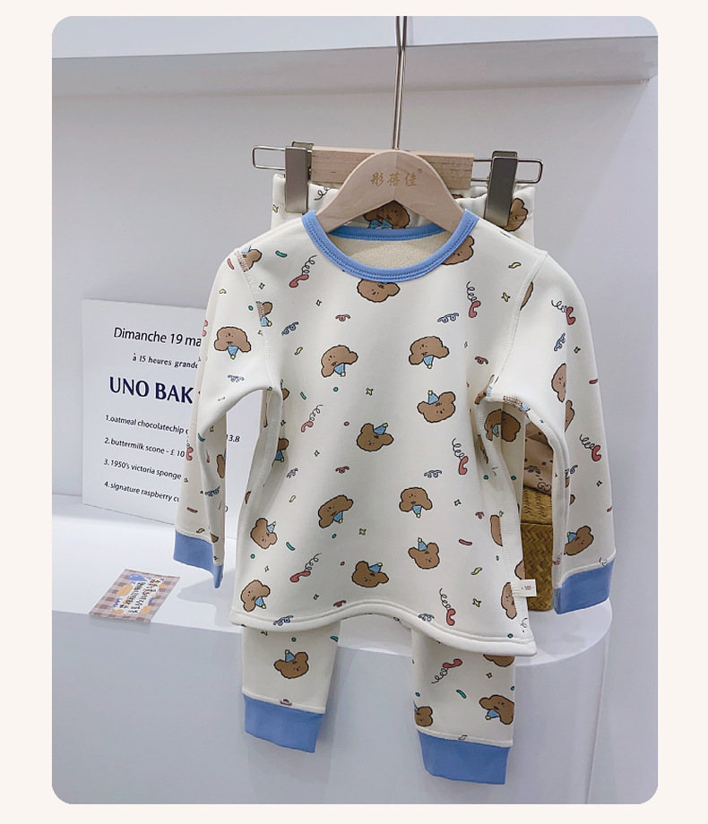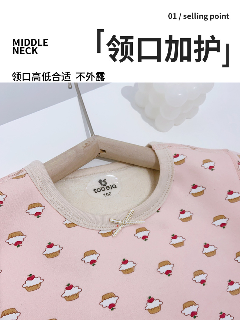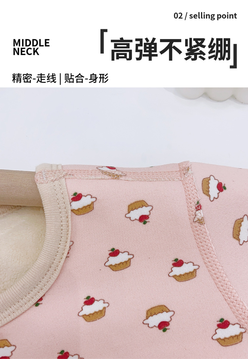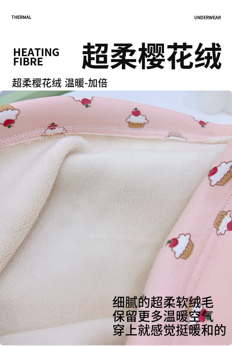 儿童樱花绒保暖套装无骨工艺中大童加绒加厚家居服睡衣