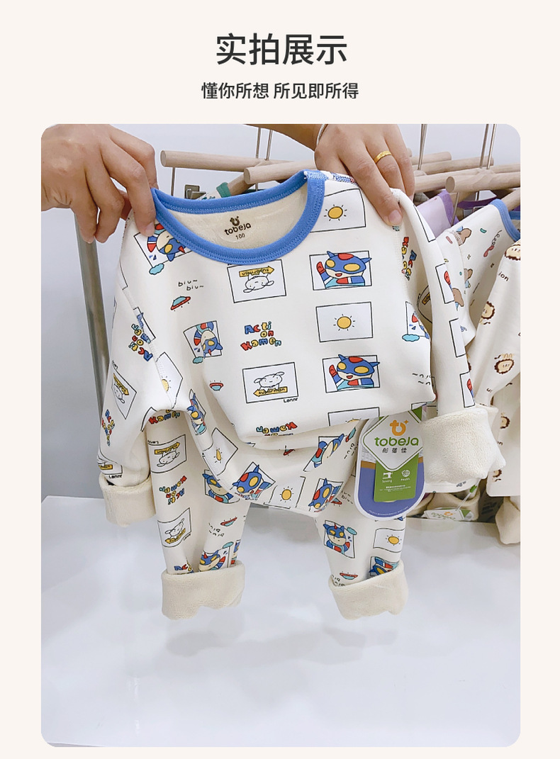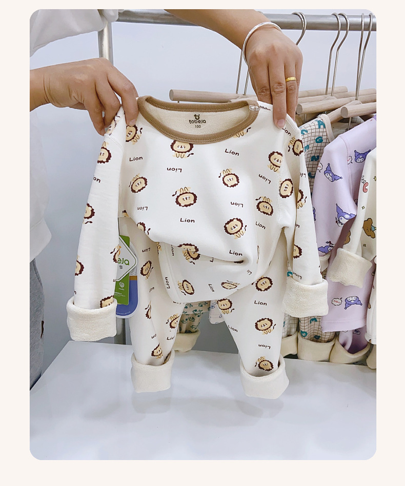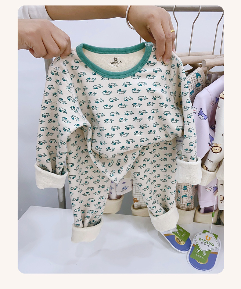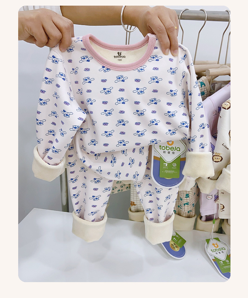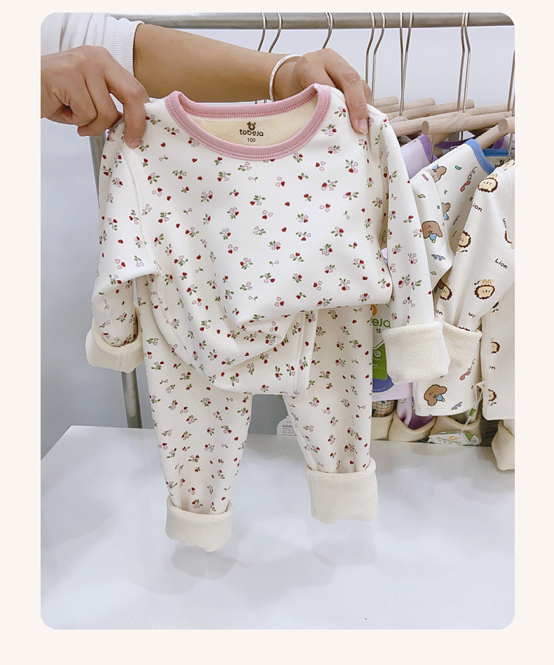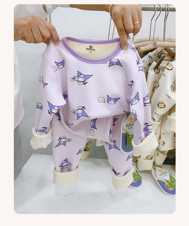 儿童樱花绒保暖套装无骨工艺中大童加绒加厚家居服睡衣