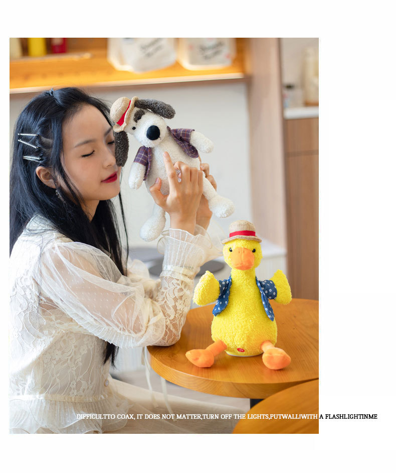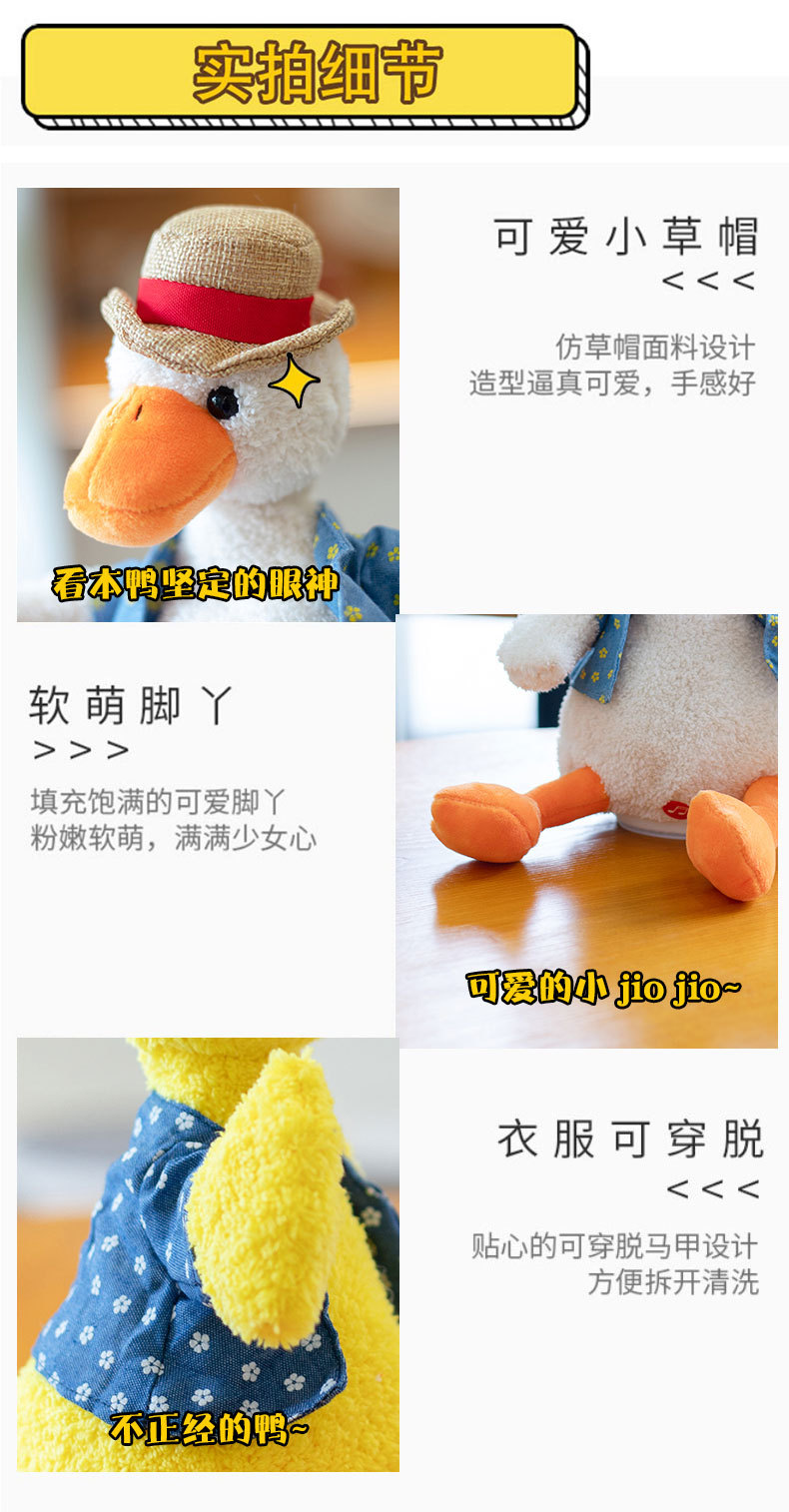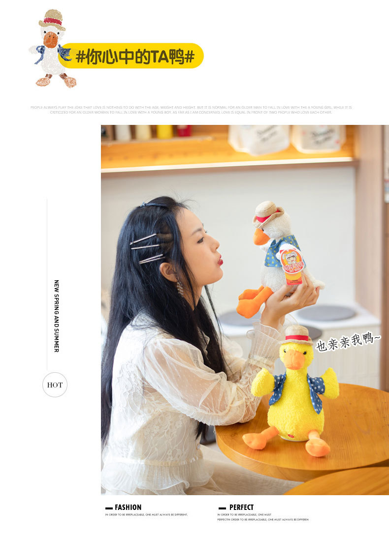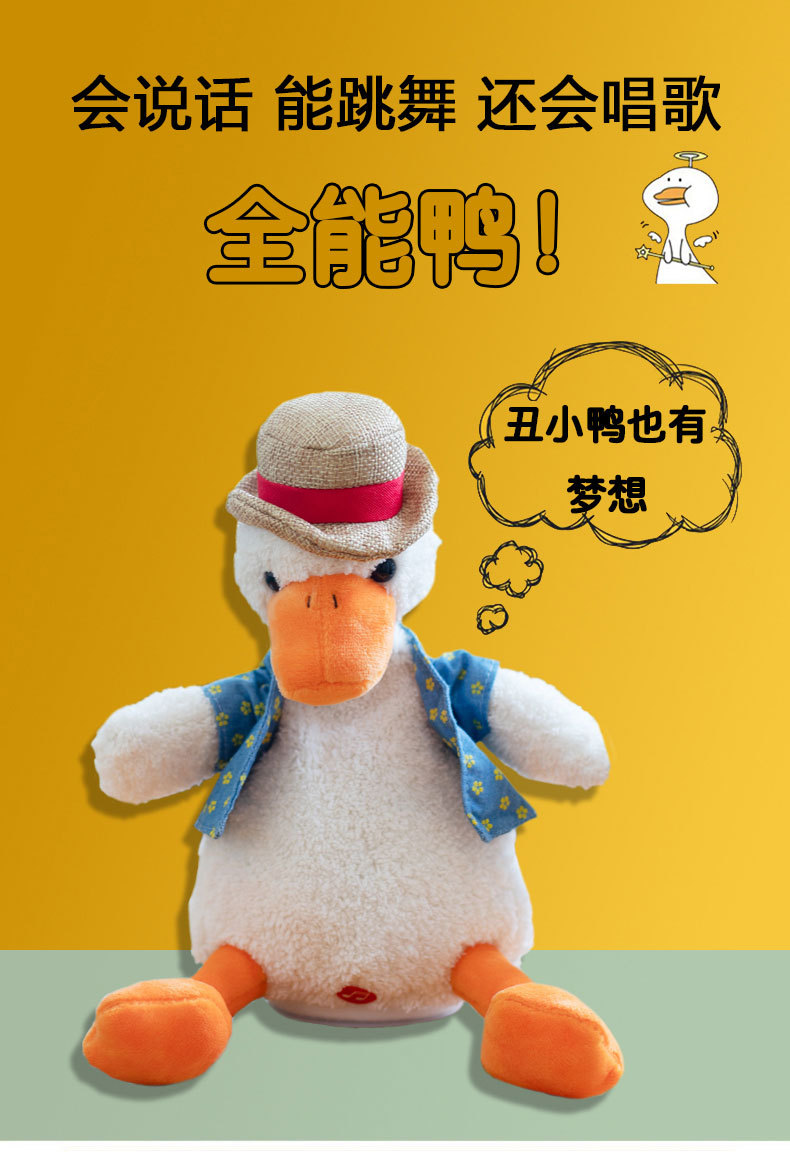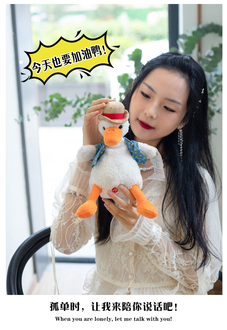 抖音怼人沙雕复读鸭会说话的鸭子电动加油鸭毛绒玩具学话公仔玩偶