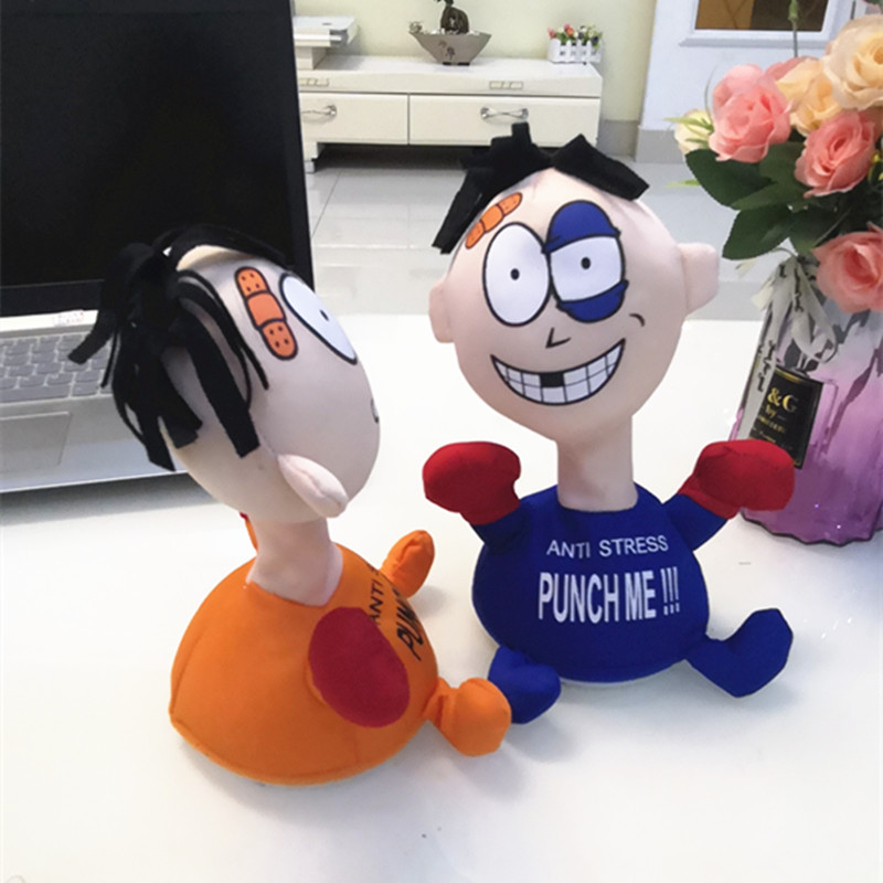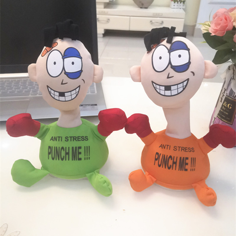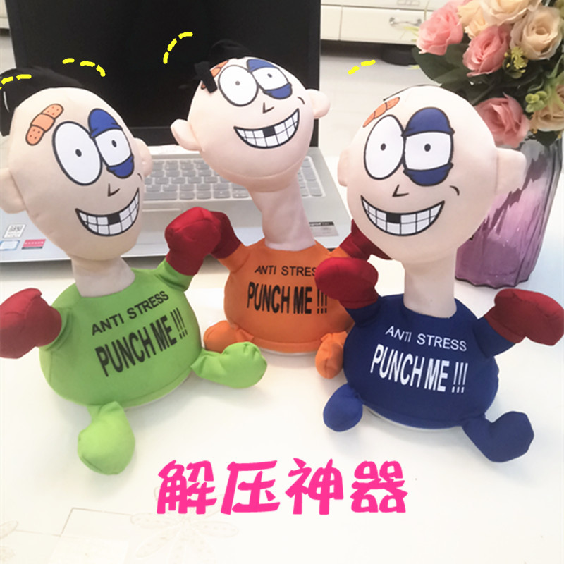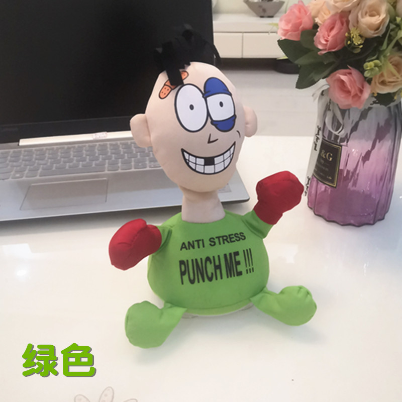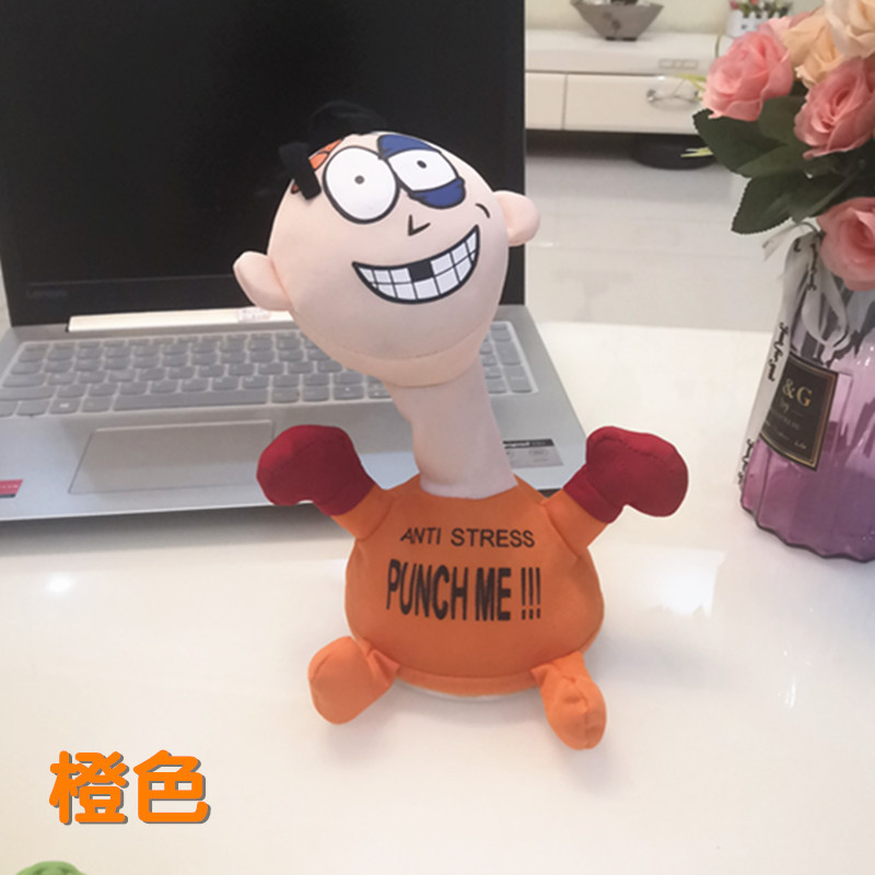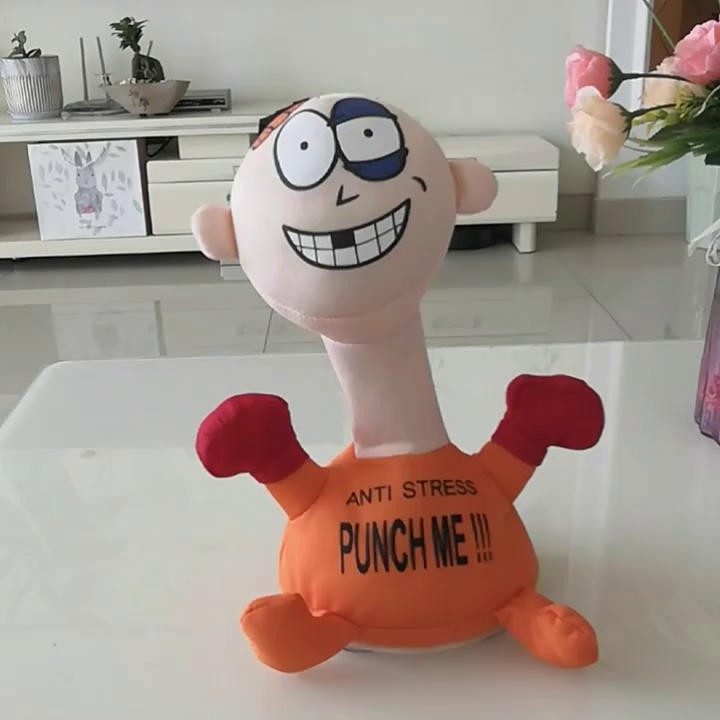 跨境热销击打欠揍punch me小人电动毛绒玩具解压发泄惨叫创意公仔