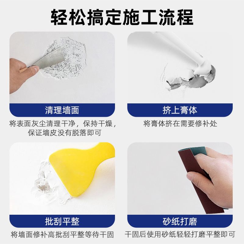 英文外贸补墙膏白色墙壁裂缝钉眼修复家用墙壁翻新腻子墙面修补膏