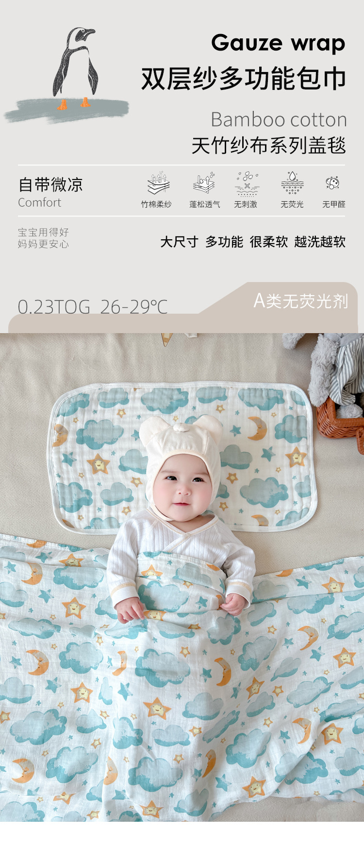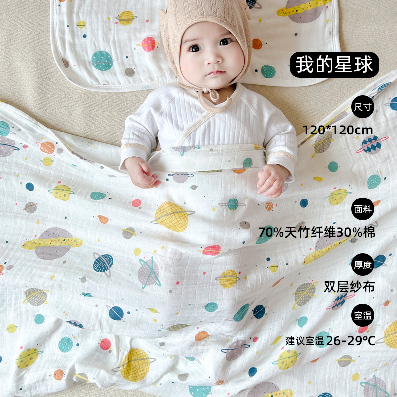 a类纱布盖毯抱被包巾竹棉浴巾新生儿用品 宝宝包单包被婴儿初生儿
