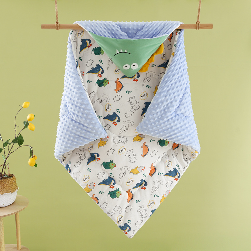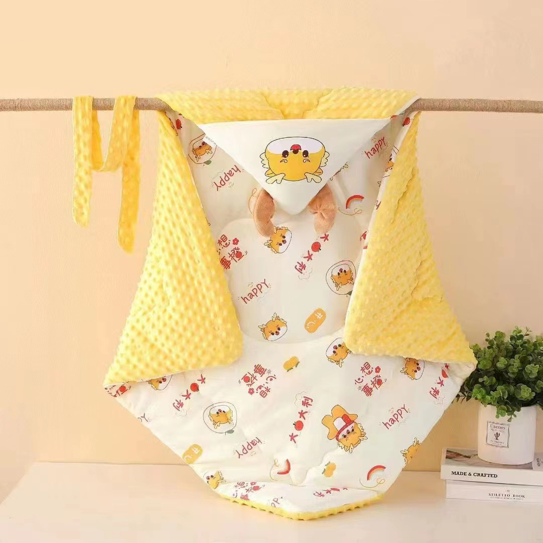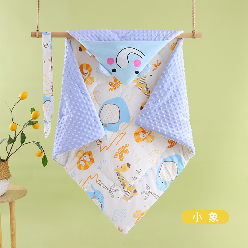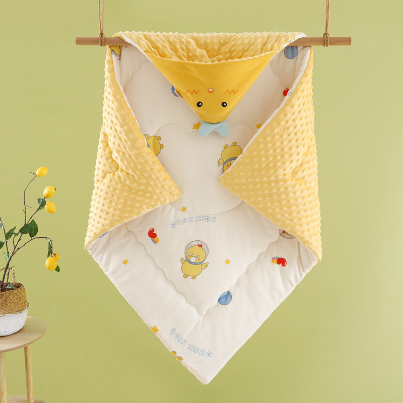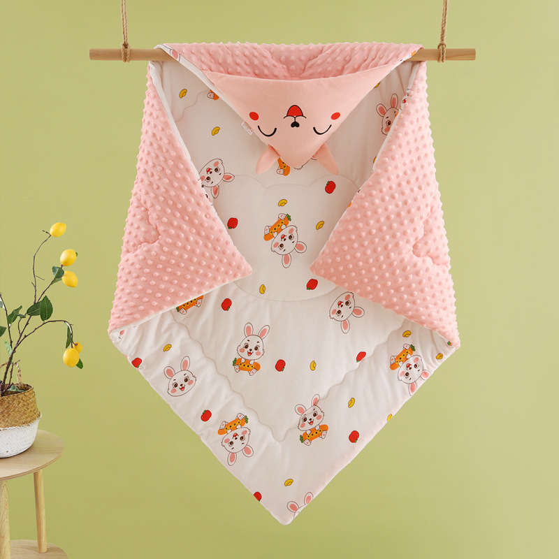 婴儿秋冬加厚安抚豆豆绒抱被宝宝春秋薄棉包被四季新生儿夹棉盖毯