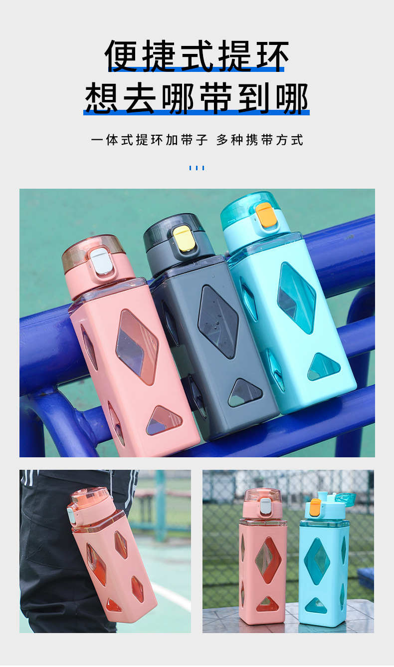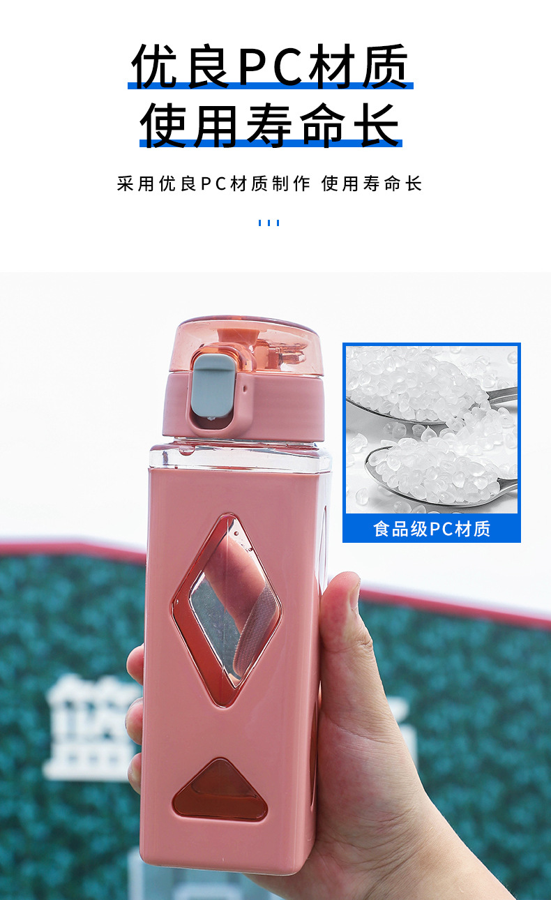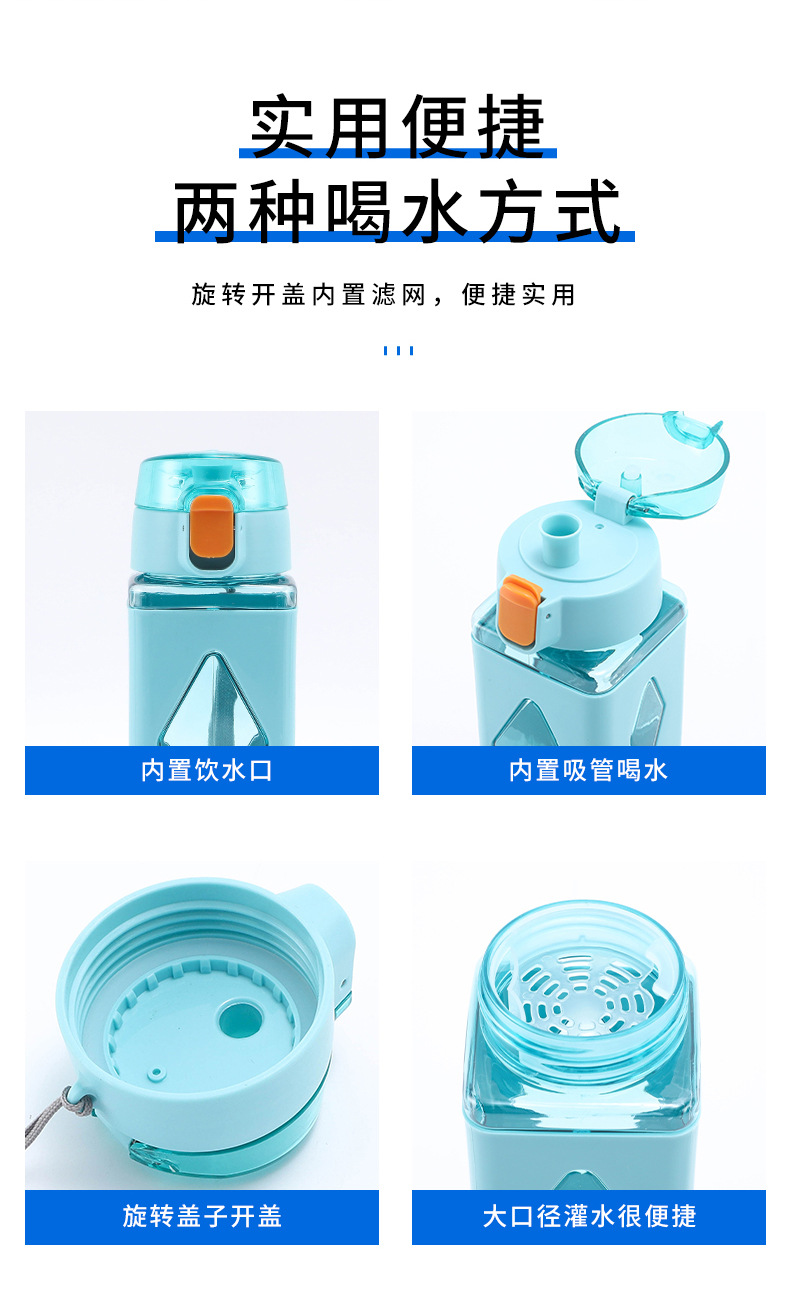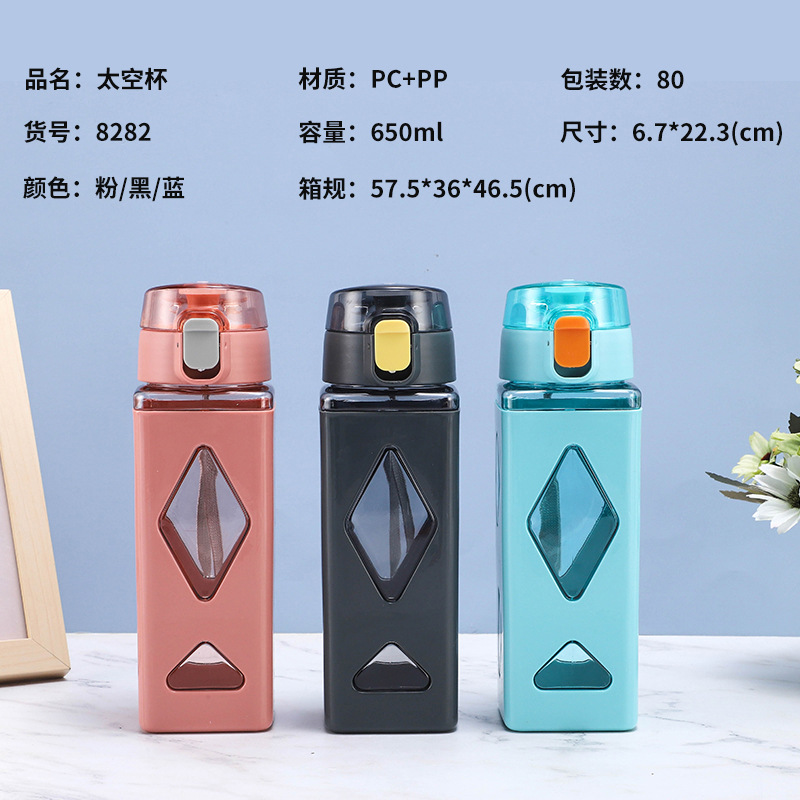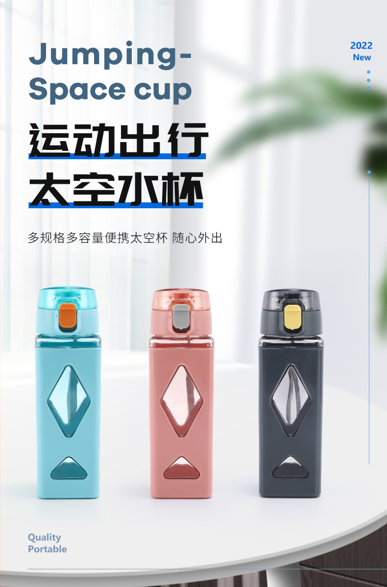 办公喝水太空杯运动水壶批发实用时尚双层隔热镂空弹盖吸管塑料杯