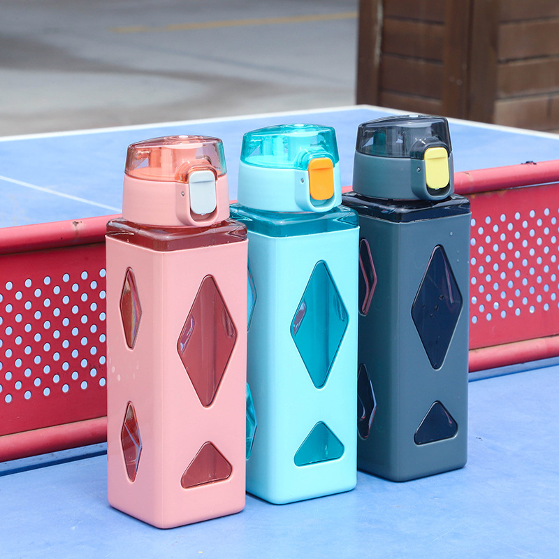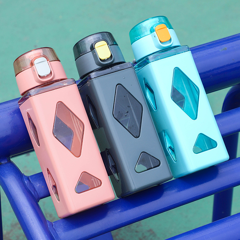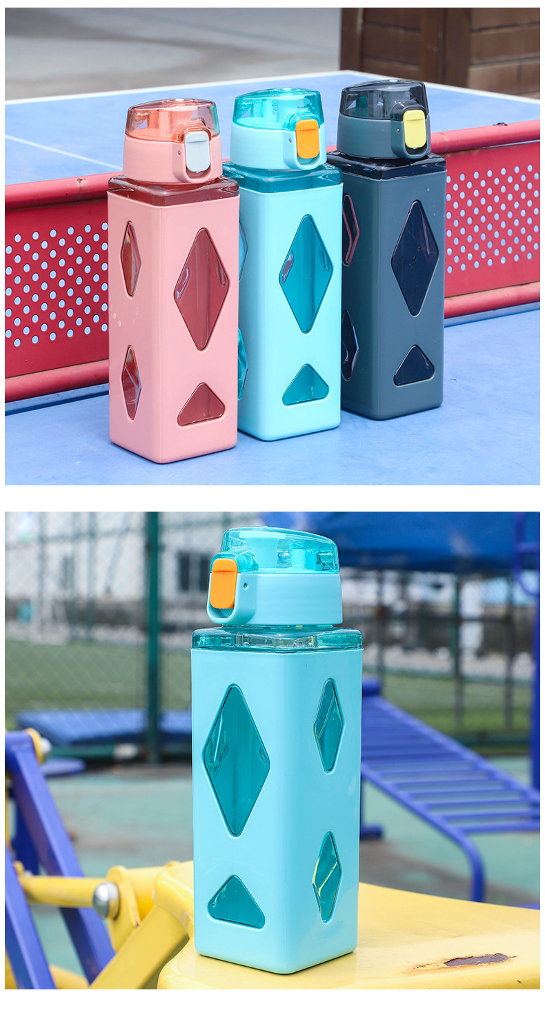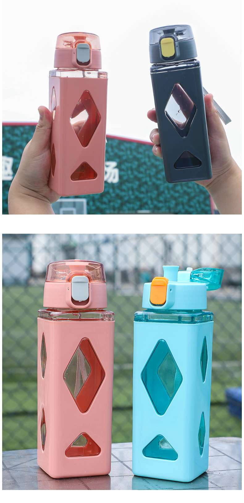办公喝水太空杯运动水壶批发实用时尚双层隔热镂空弹盖吸管塑料杯