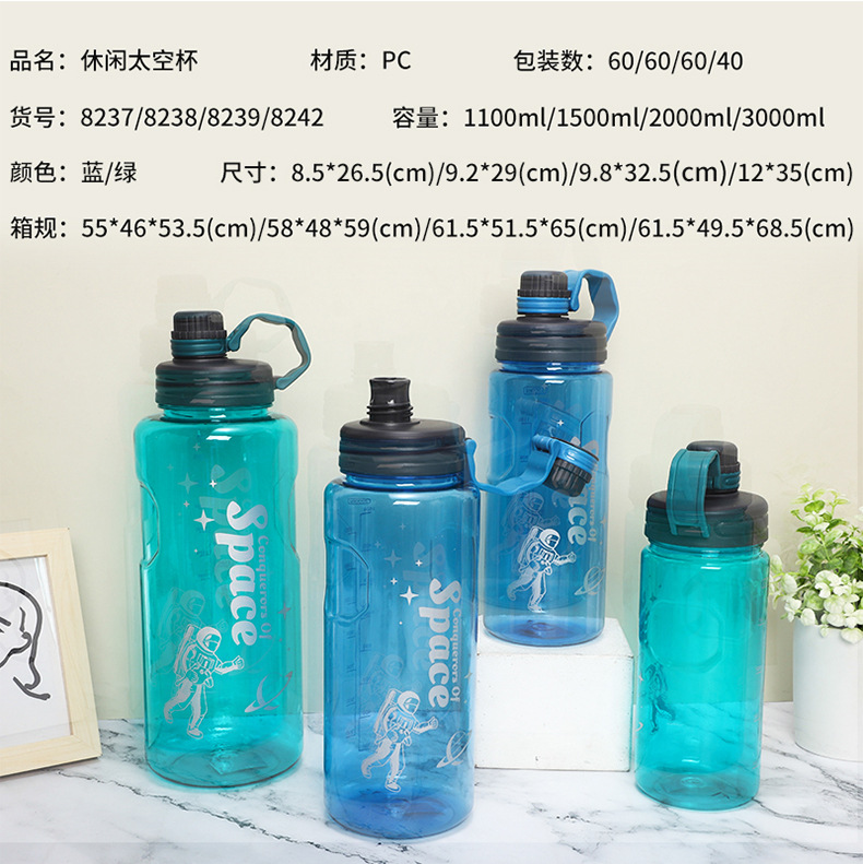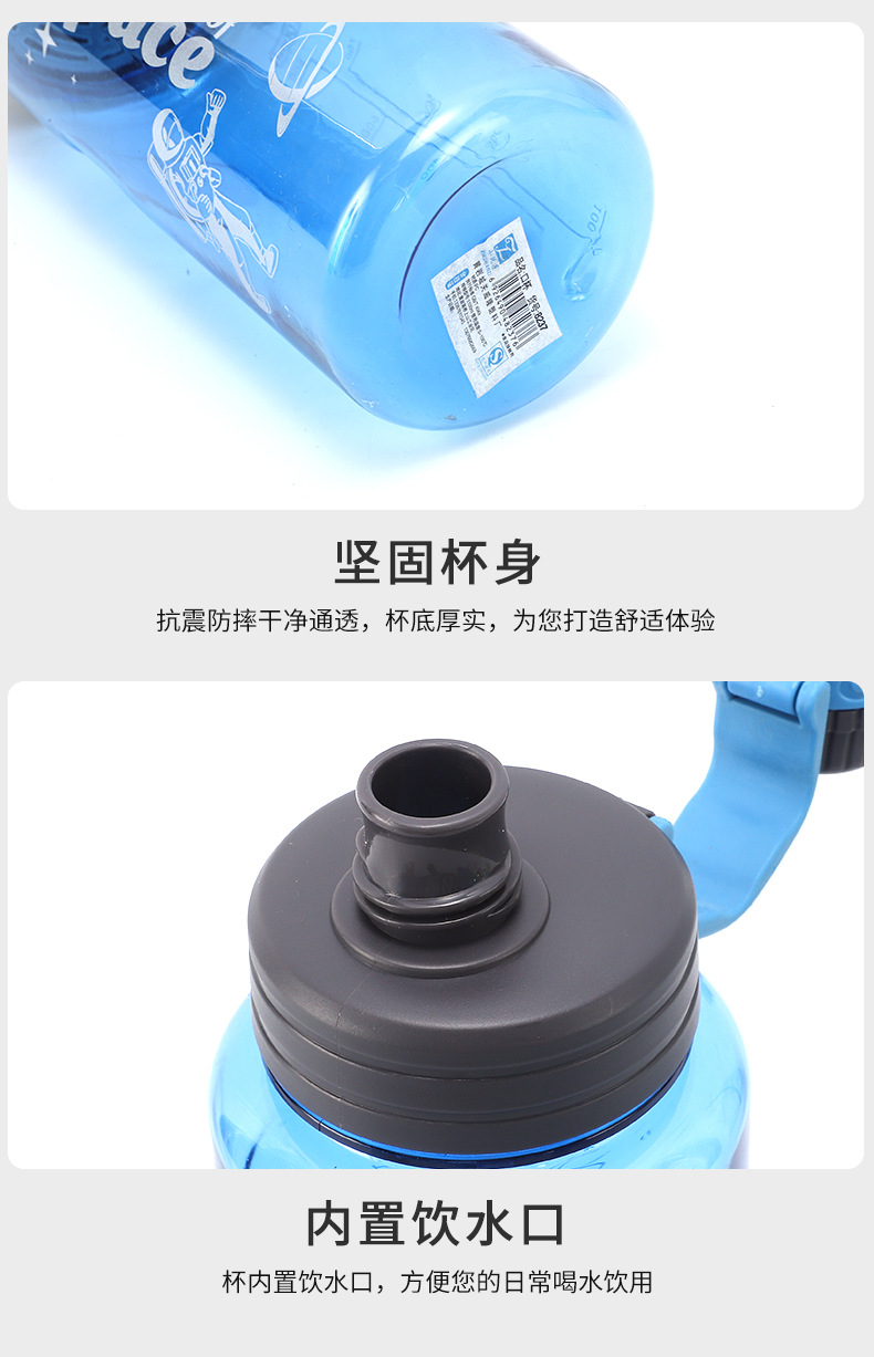 创意单色户外提手运动水杯2000ml简约时尚大容量塑料休闲太空杯