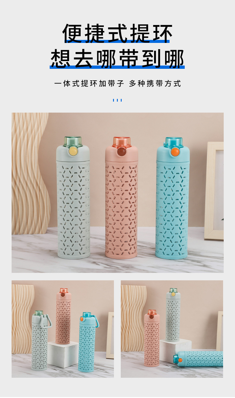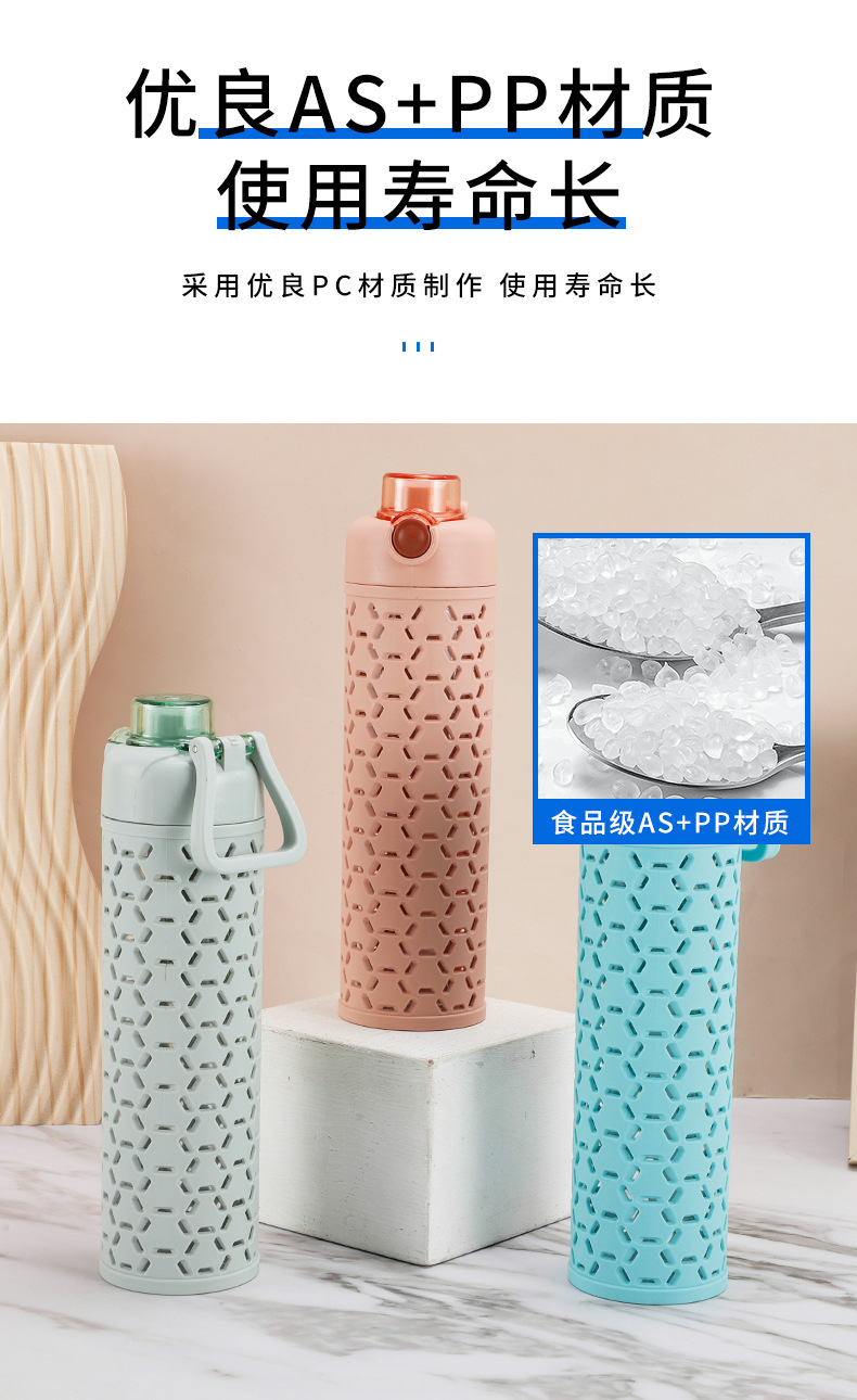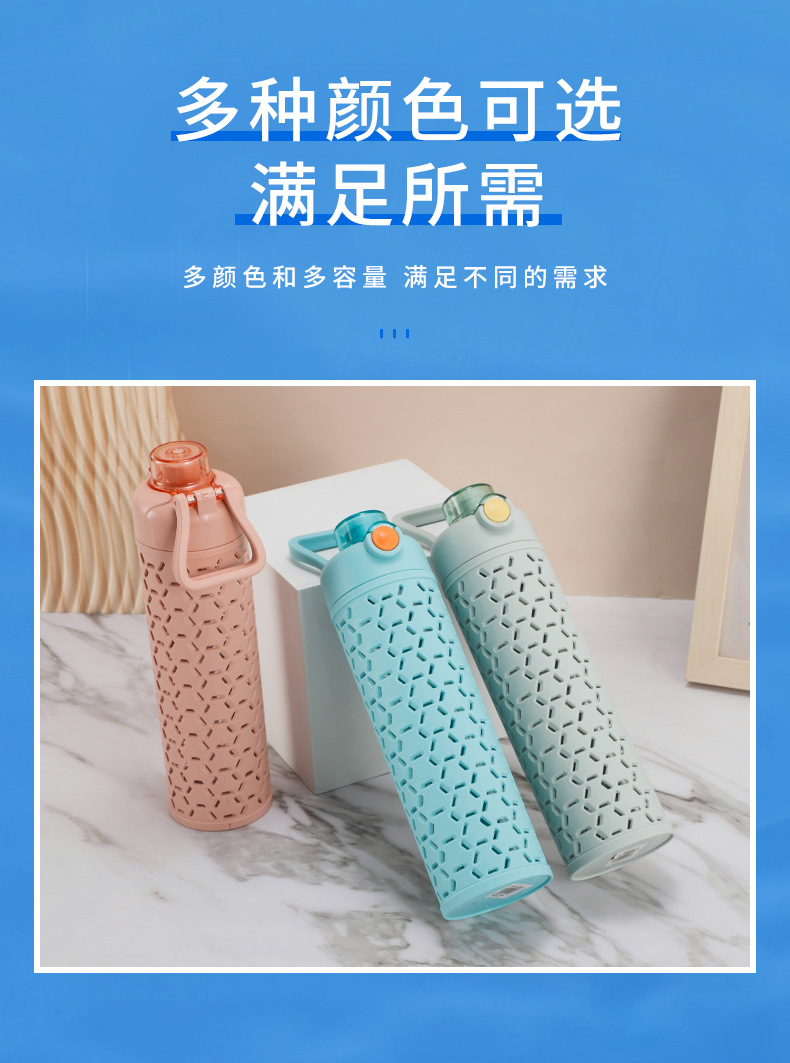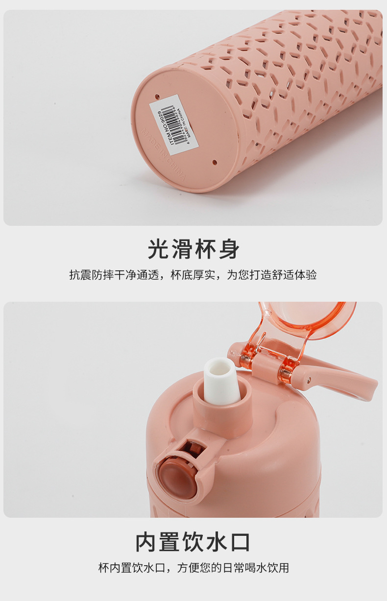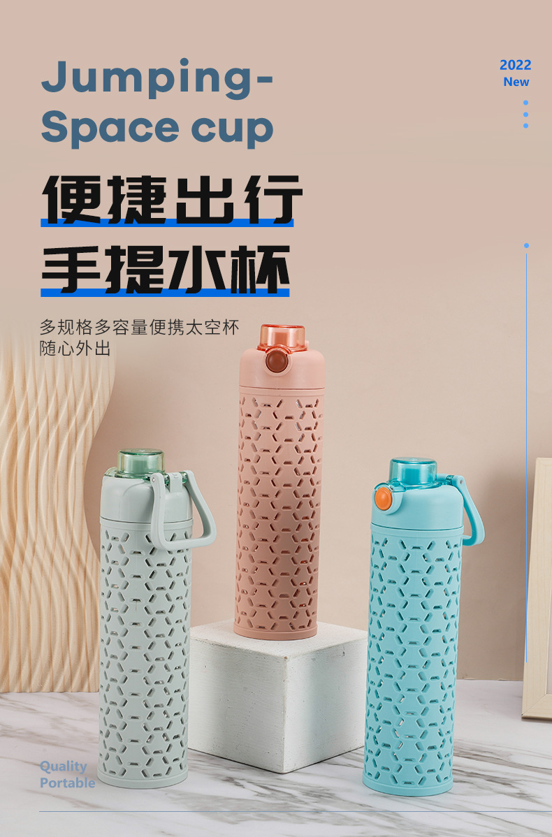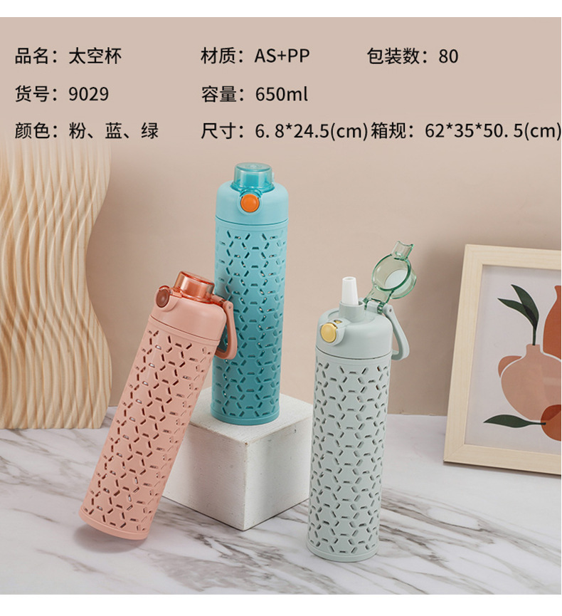 多色弹盖式塑料水杯直身杯时尚镂空创意太空杯双层保护