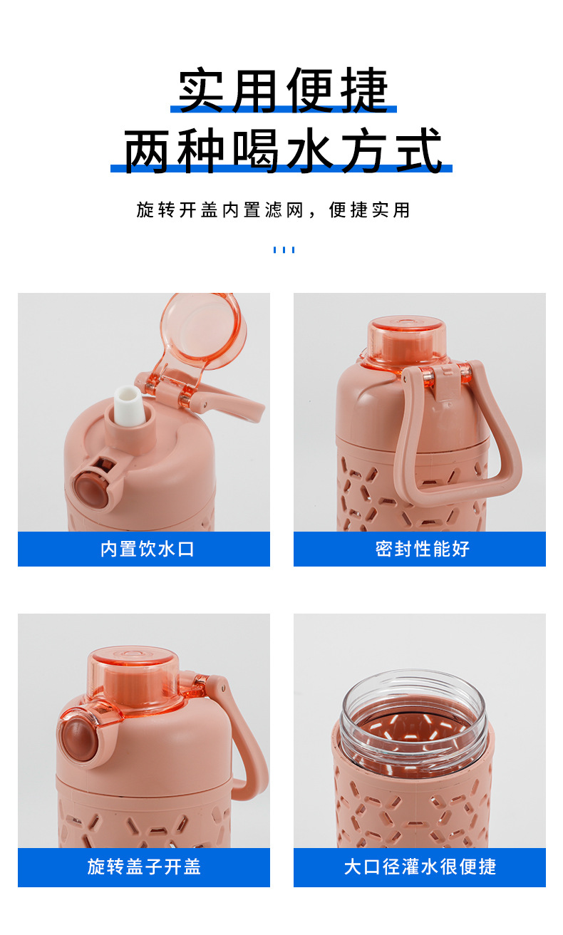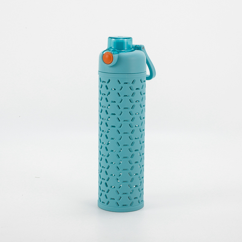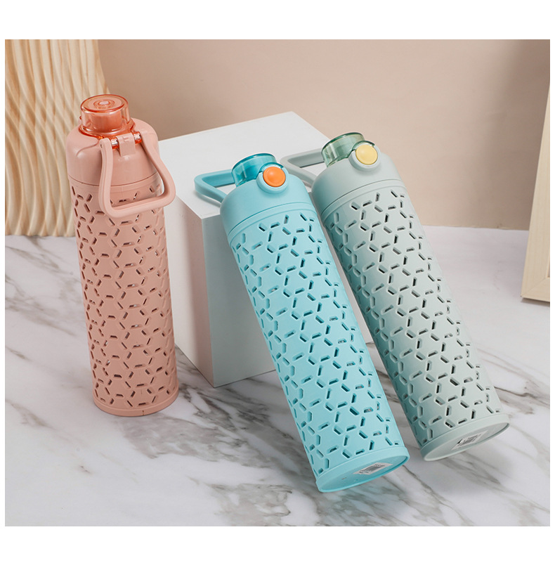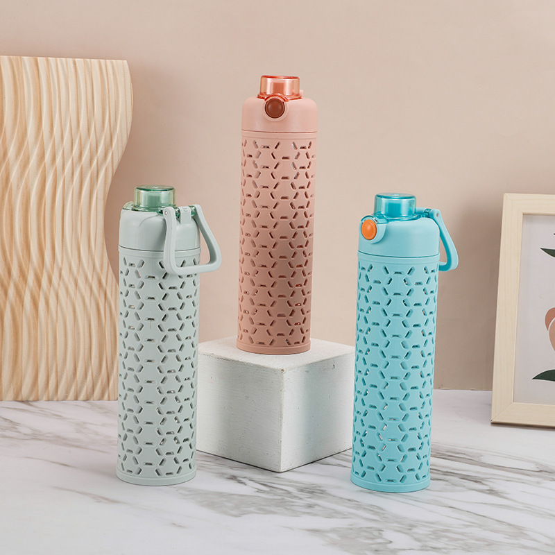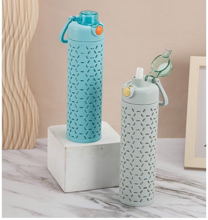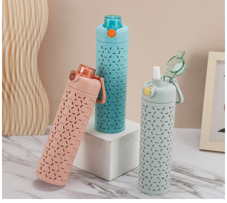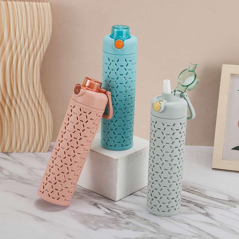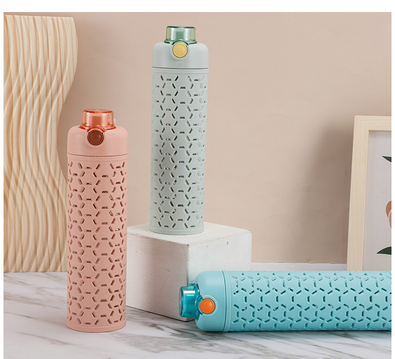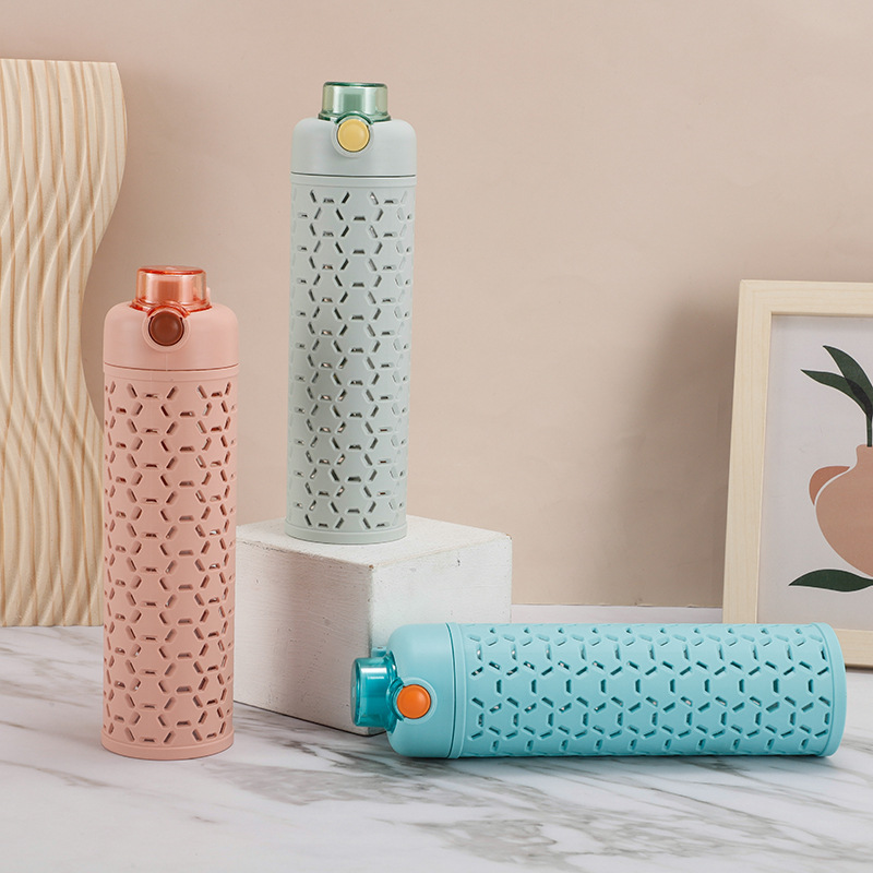 多色弹盖式塑料水杯直身杯时尚镂空创意太空杯双层保护
