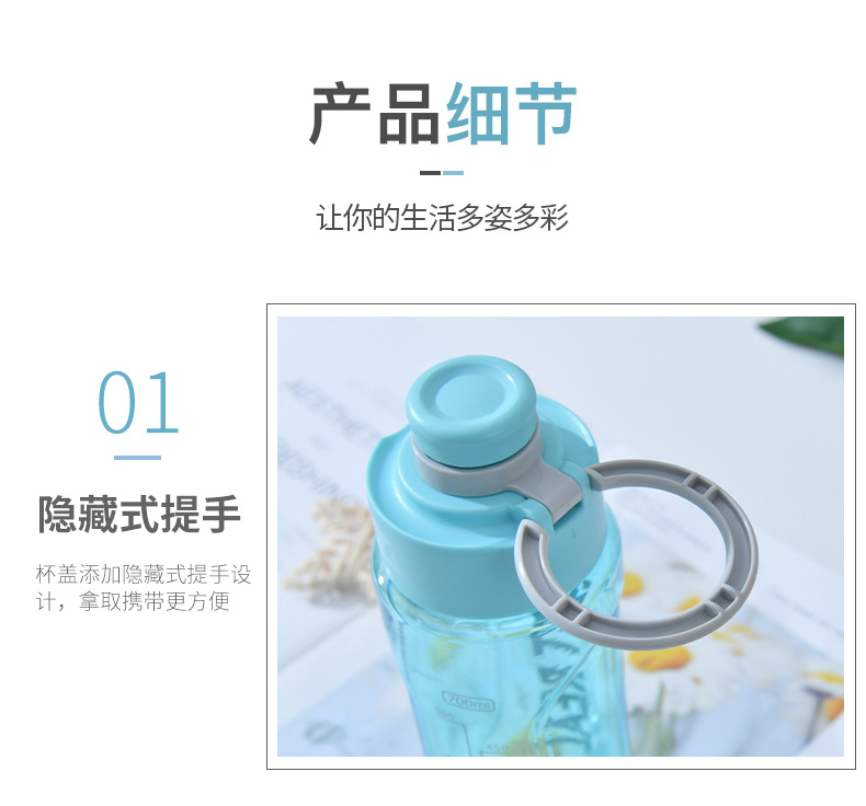 健身水壶简约便携塑料杯子大容量运动水杯男女学生随手杯茶杯防摔