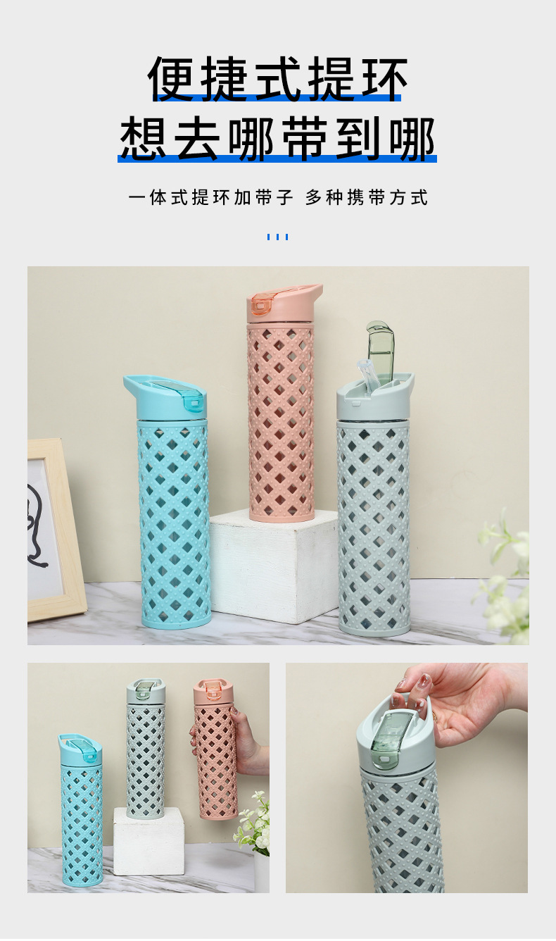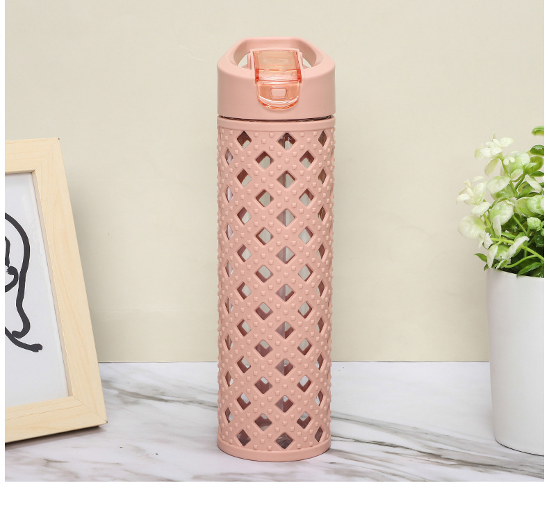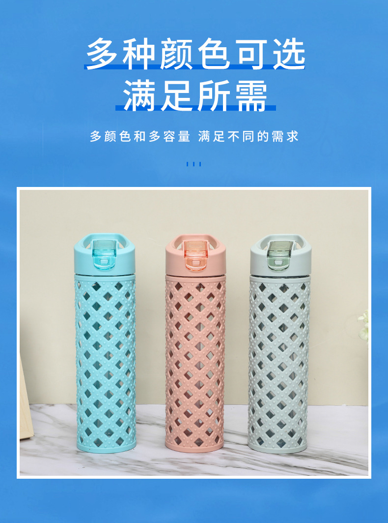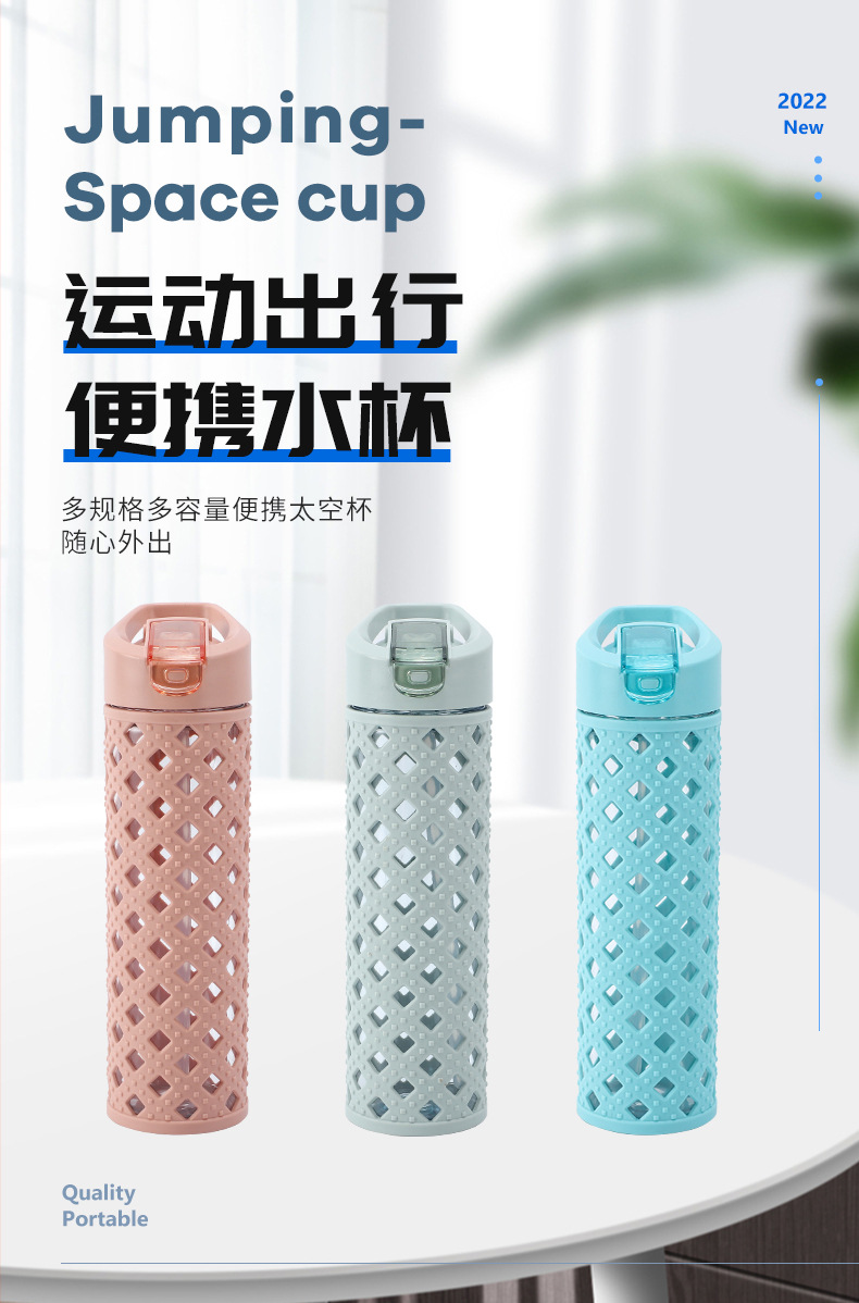 双层保护多色弹盖式塑料水杯批发新款时尚镂空创意太空杯