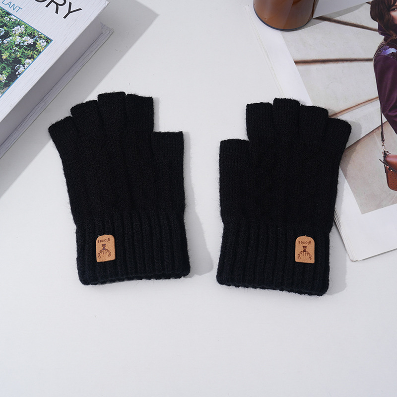 秋冬季羊驼绒保暖防风透气便携简约手套保暖御寒半指手套户外骑行