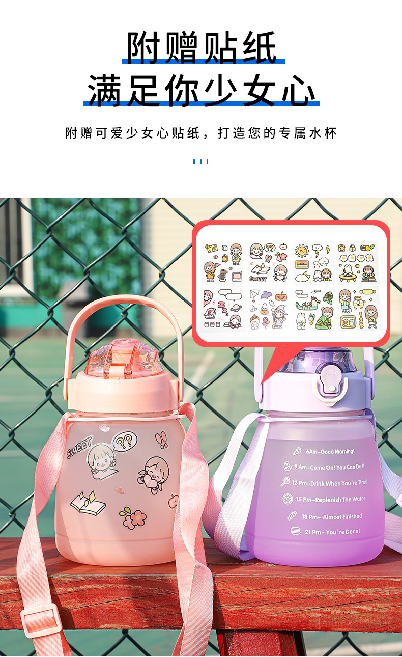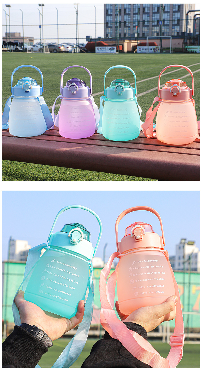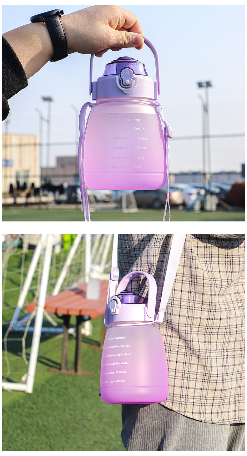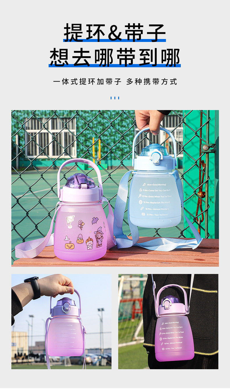 防摔防漏杯子批发大容量大肚杯渐变色双层水壶户外运动