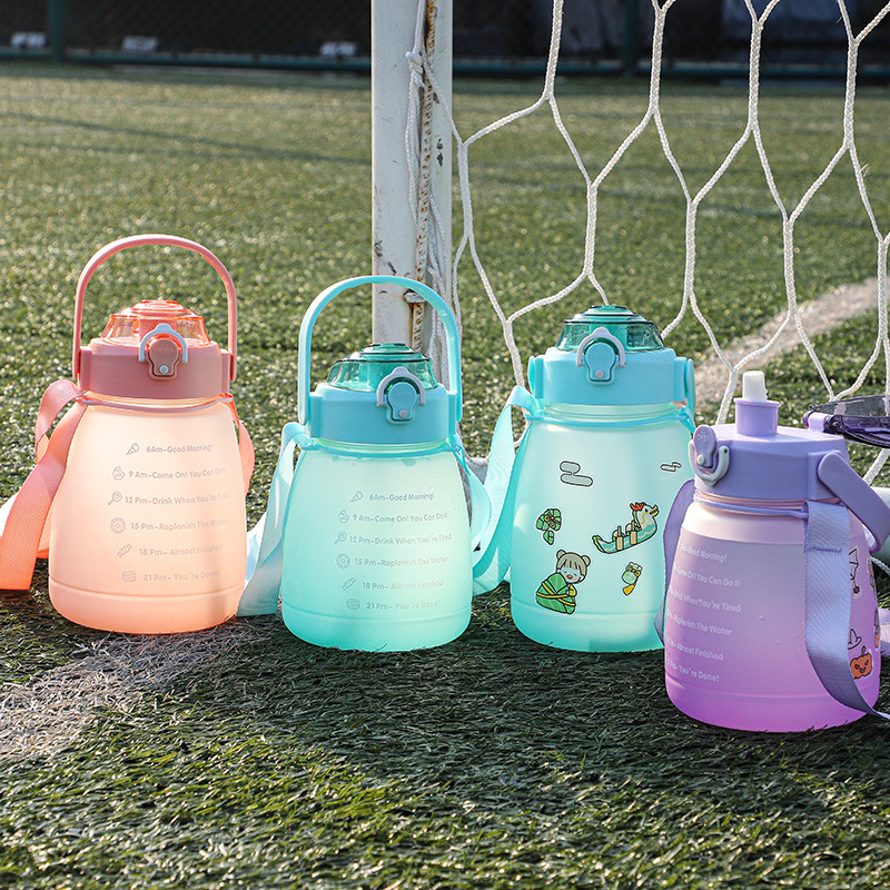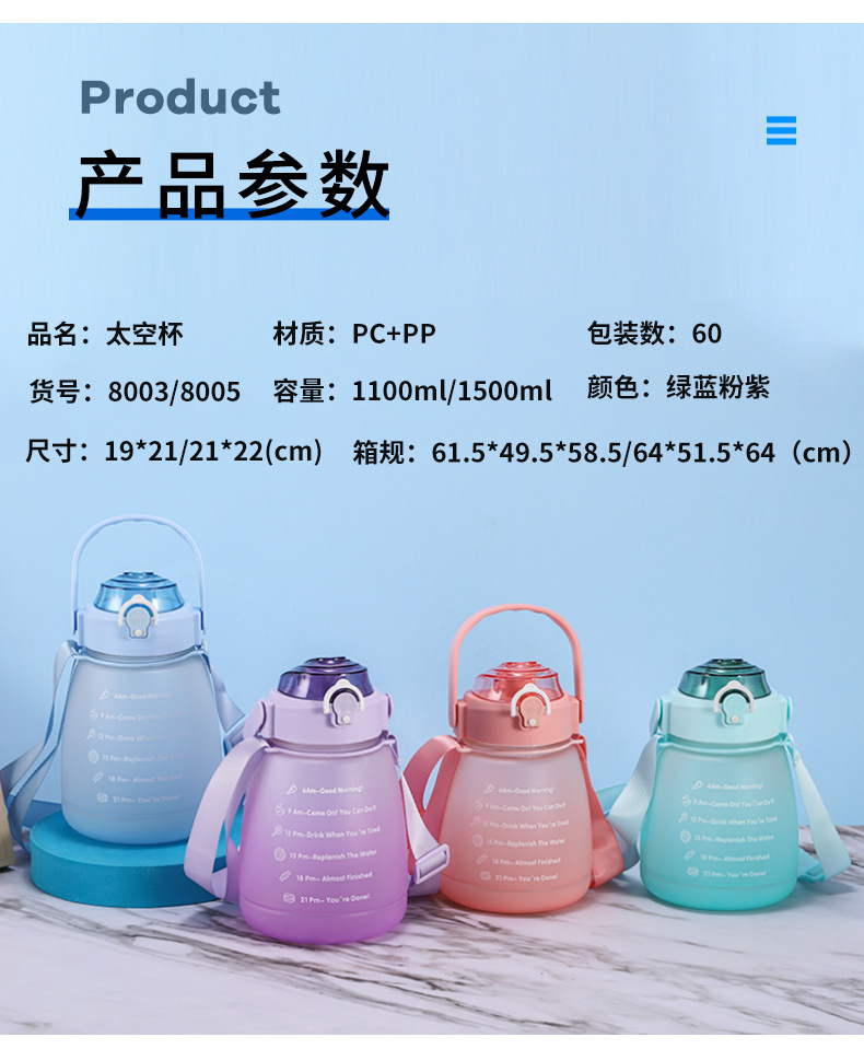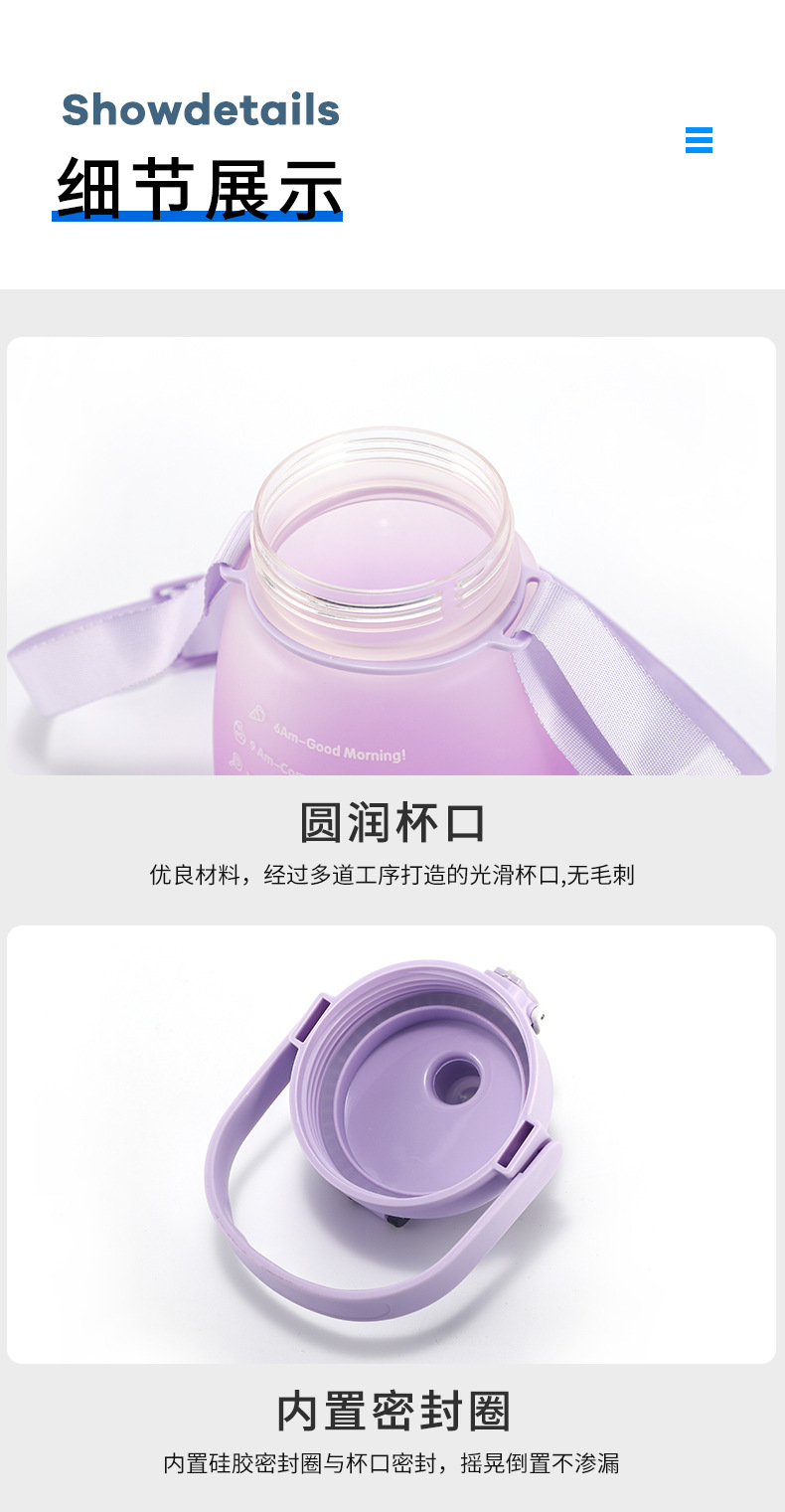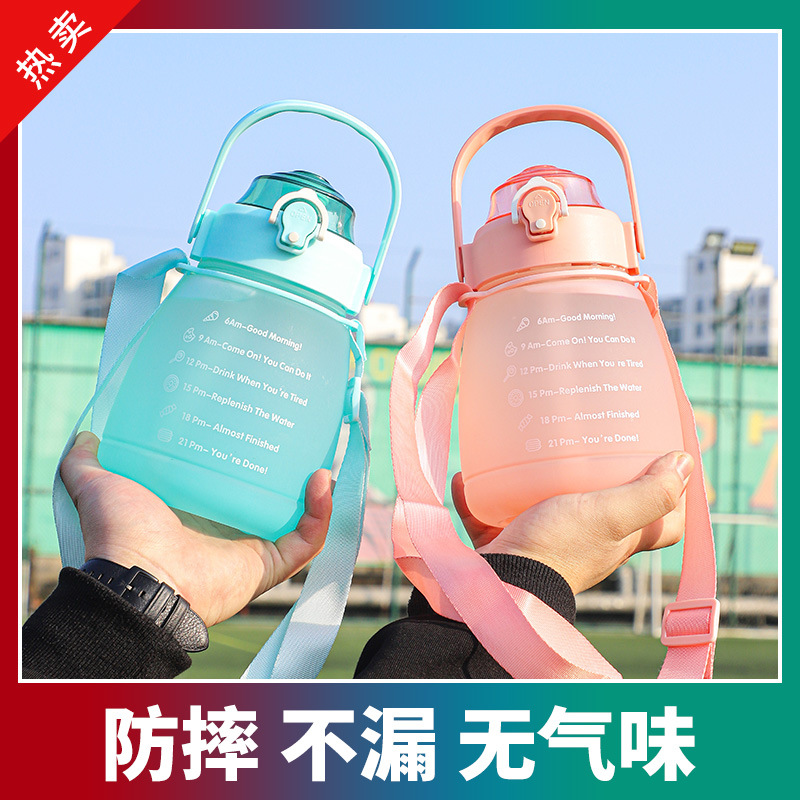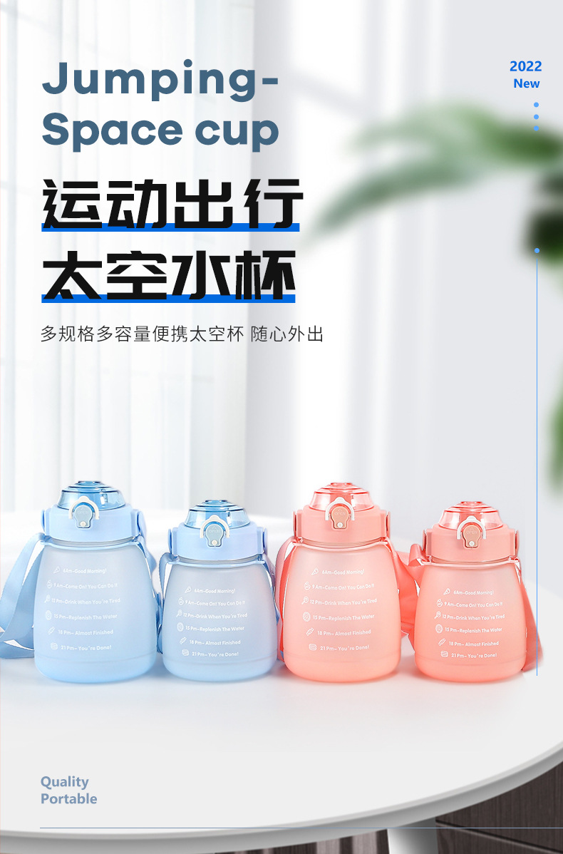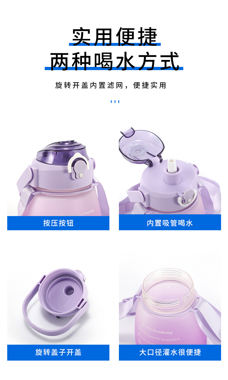 防摔防漏杯子批发大容量大肚杯渐变色双层水壶户外运动