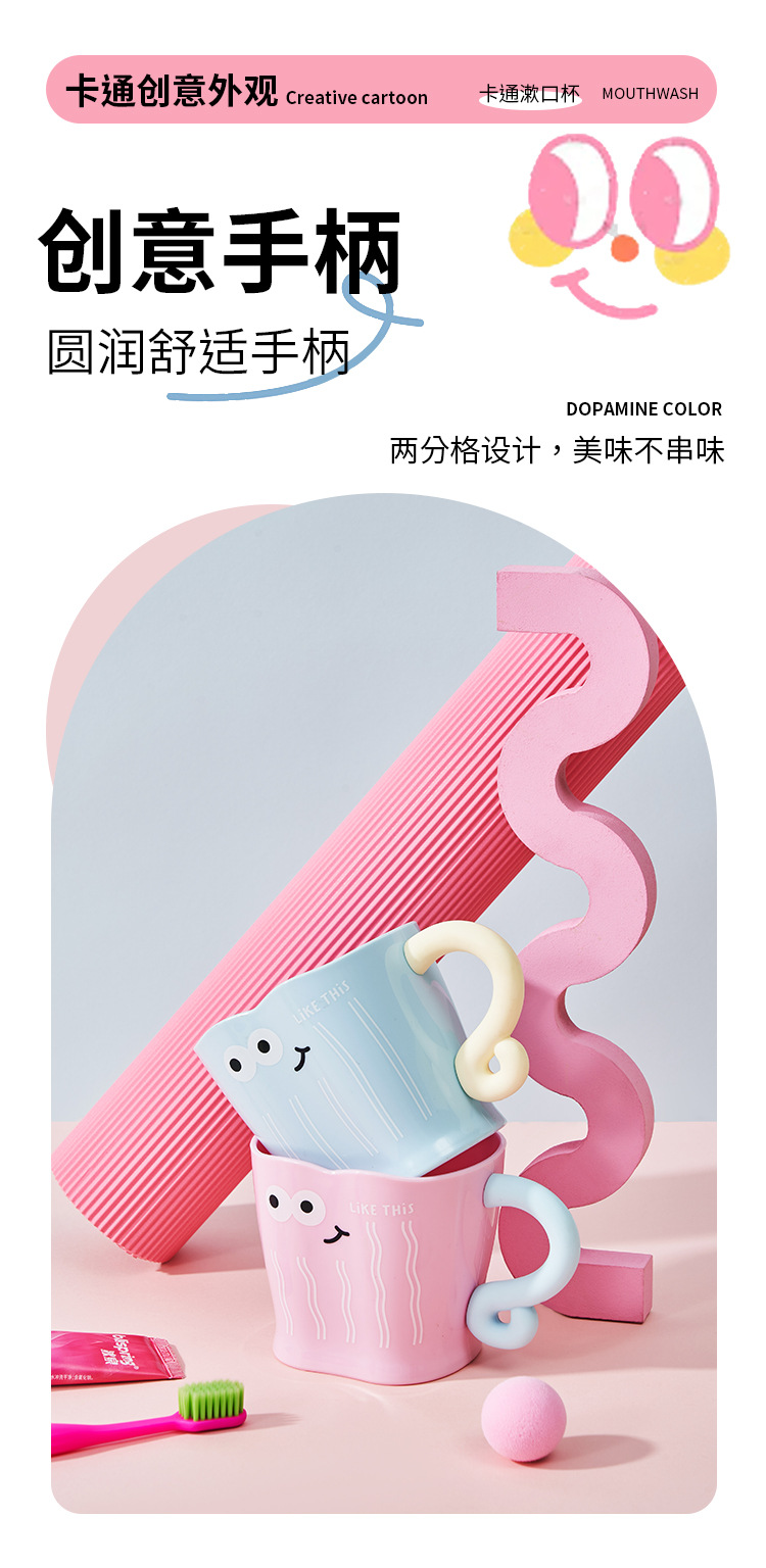 卡通刷牙杯 童趣逗眼洗漱杯 便携带柄时尚新款情侣漱口杯子