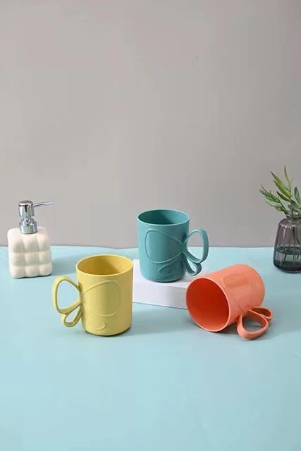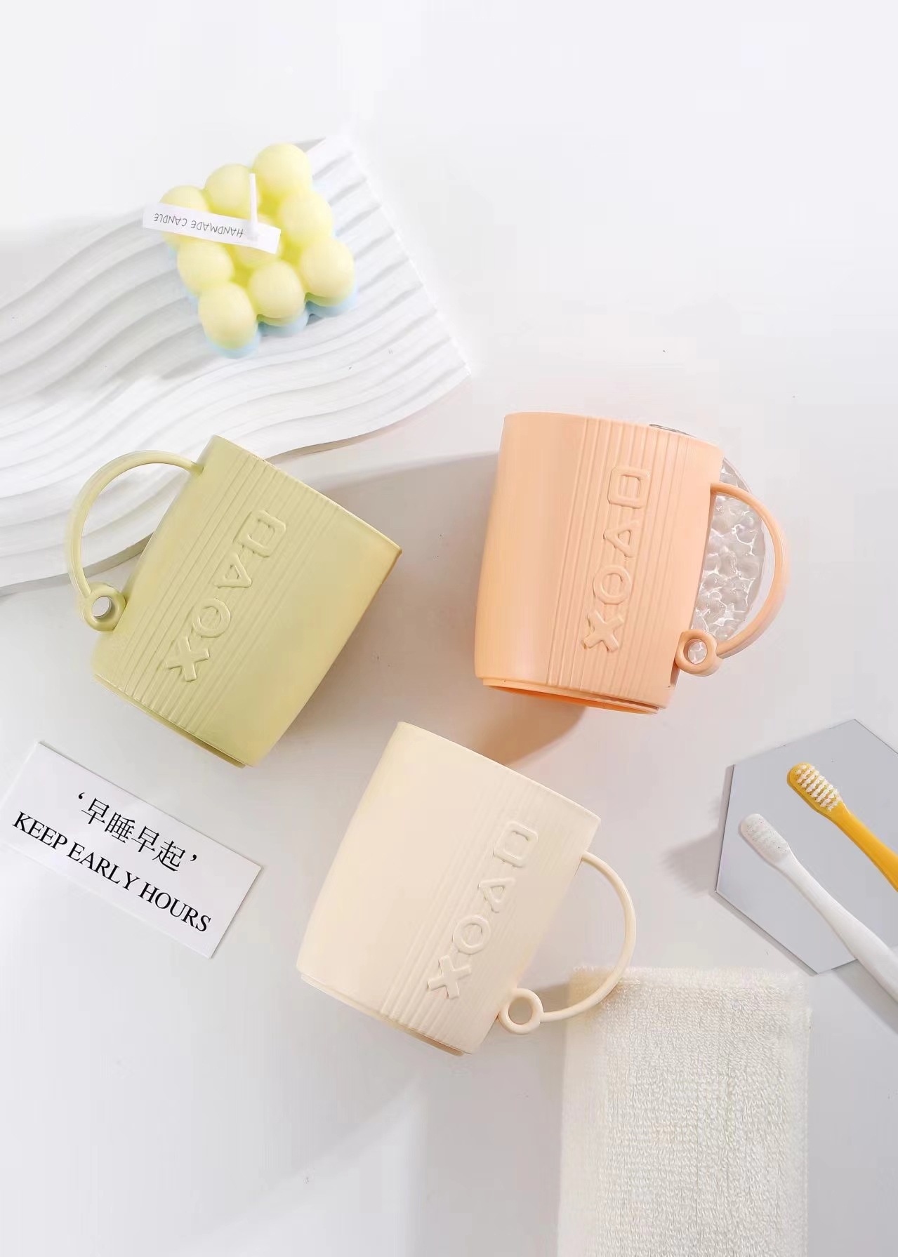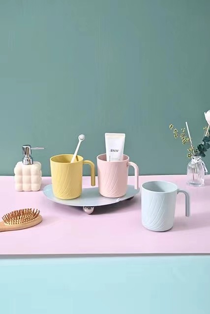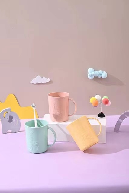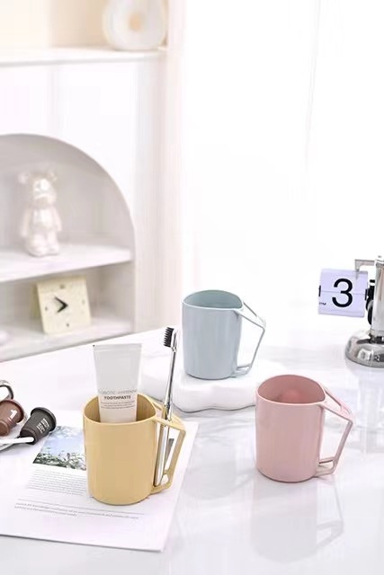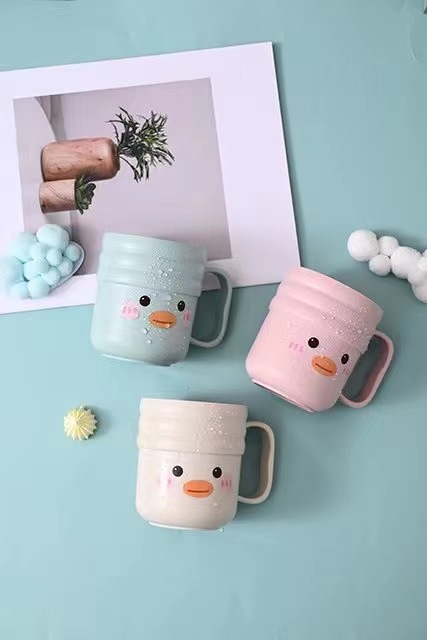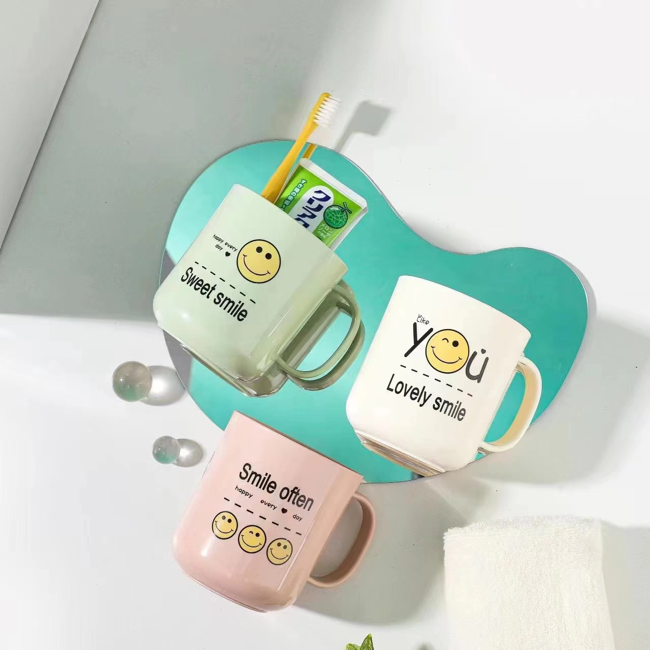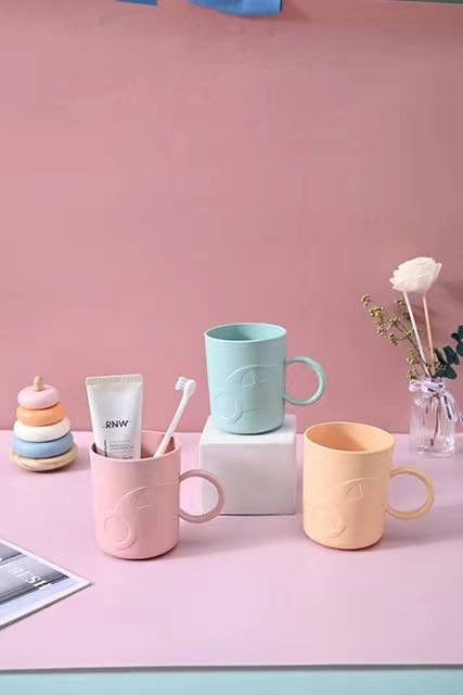 新款家用实用漱口杯塑料手柄加厚儿童情侣刷牙杯卡通图案水杯