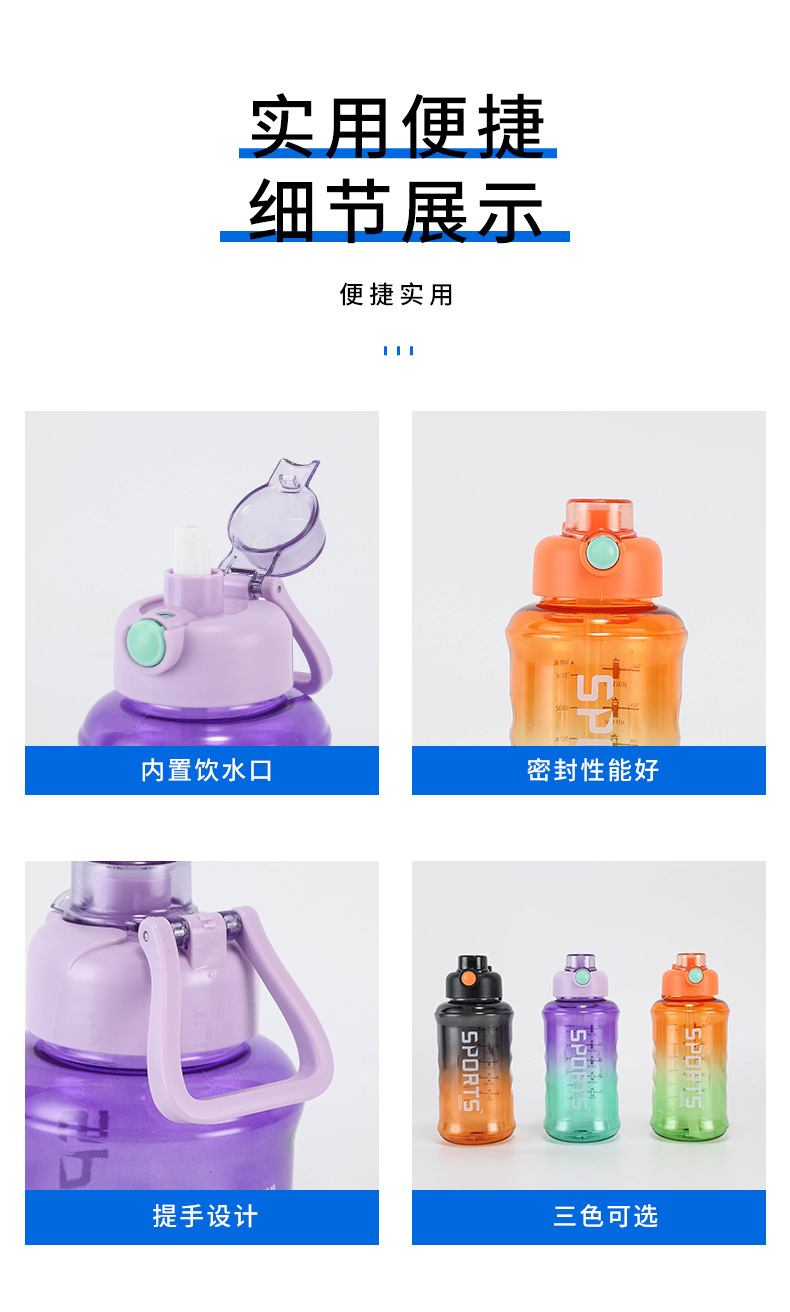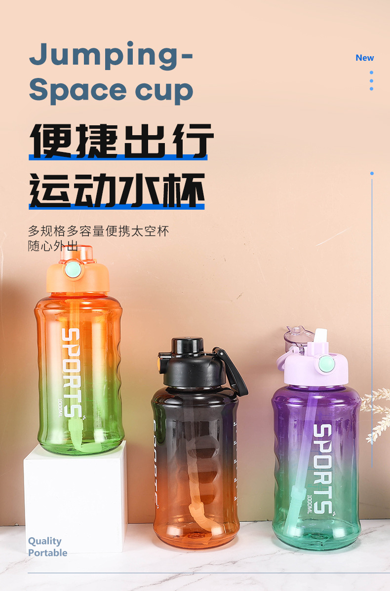 创意大容量简约弹盖式水瓶男女新款水杯夏季水杯双饮口吸管杯