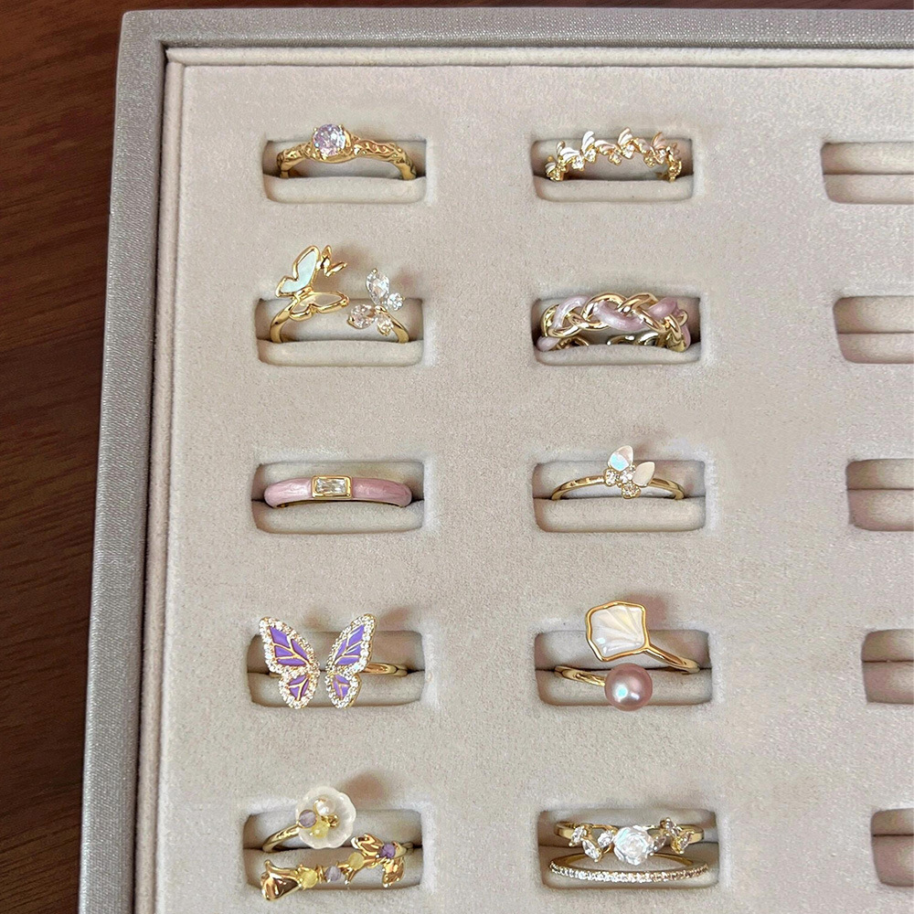 珐琅滴釉蝴蝶戒指女洋气小众设计高级感独特贝母碎钻开口指环新品
